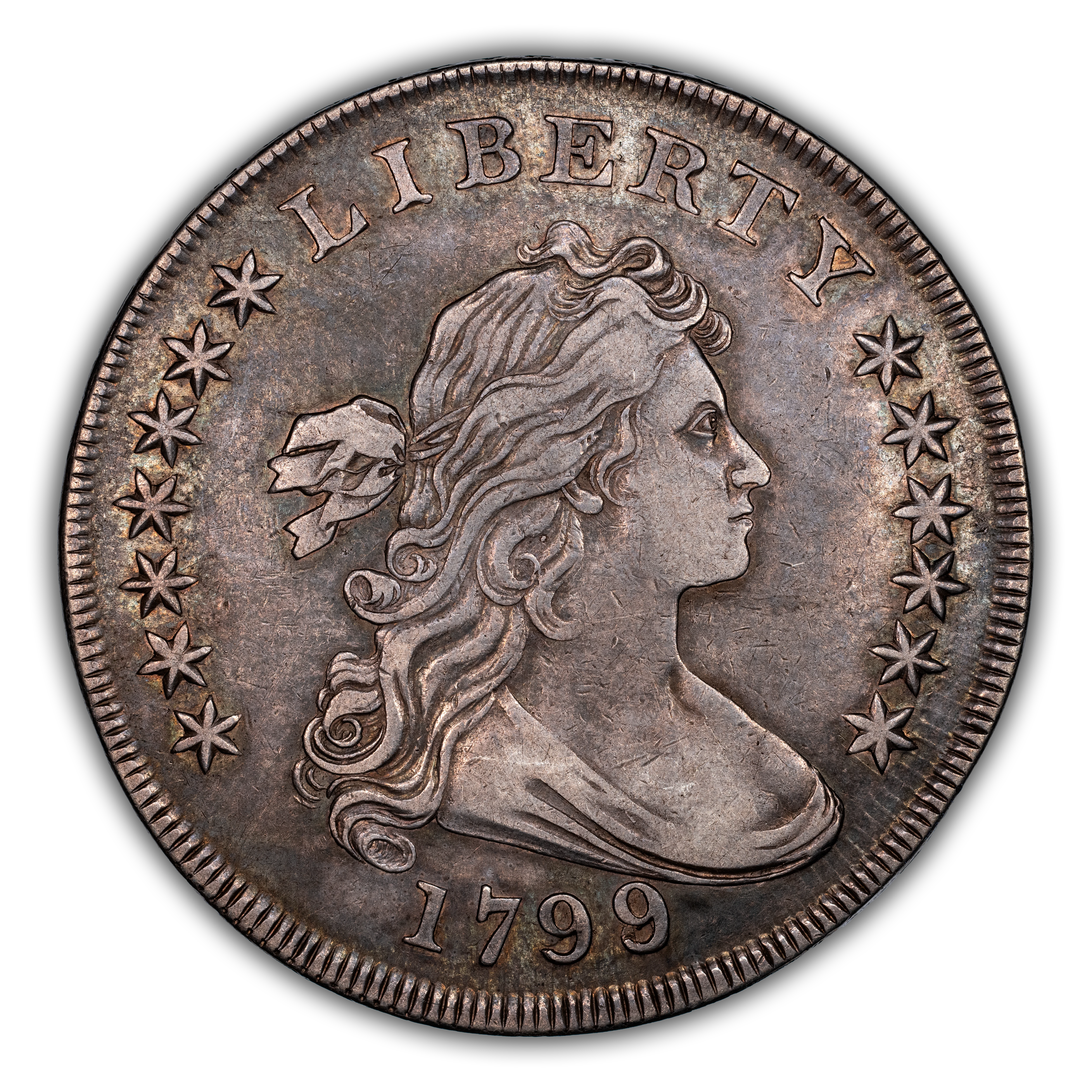 1799/8 $1 15 Stars Reverse, B-3, BB-141, R.3, Fine 15 PCGS. Incorrectly designated by PCGS as a Normal Date variety. Mintag...