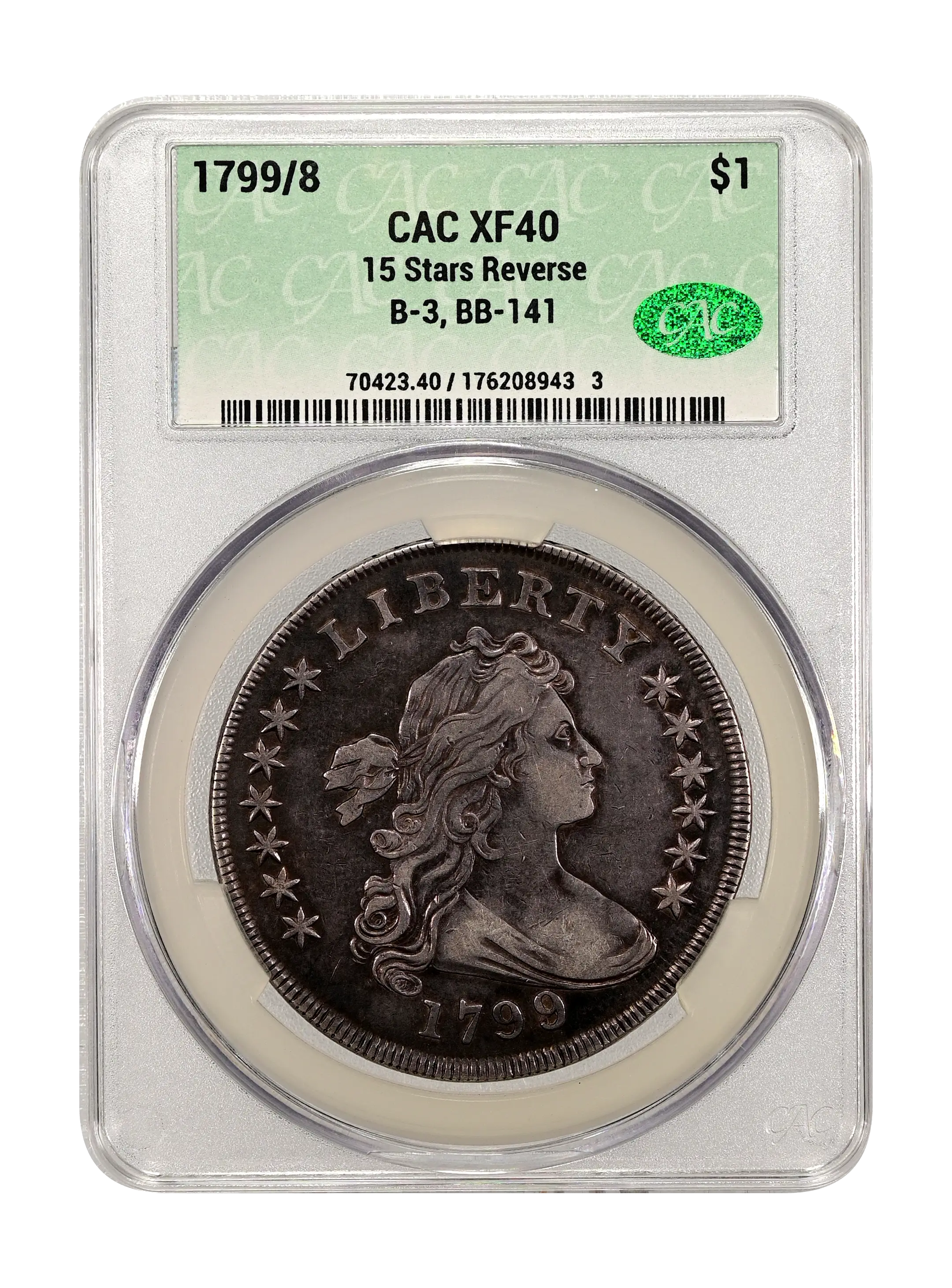 1799/8 15 Stars Reverse $1 B-3, BB-141 CAC XF40