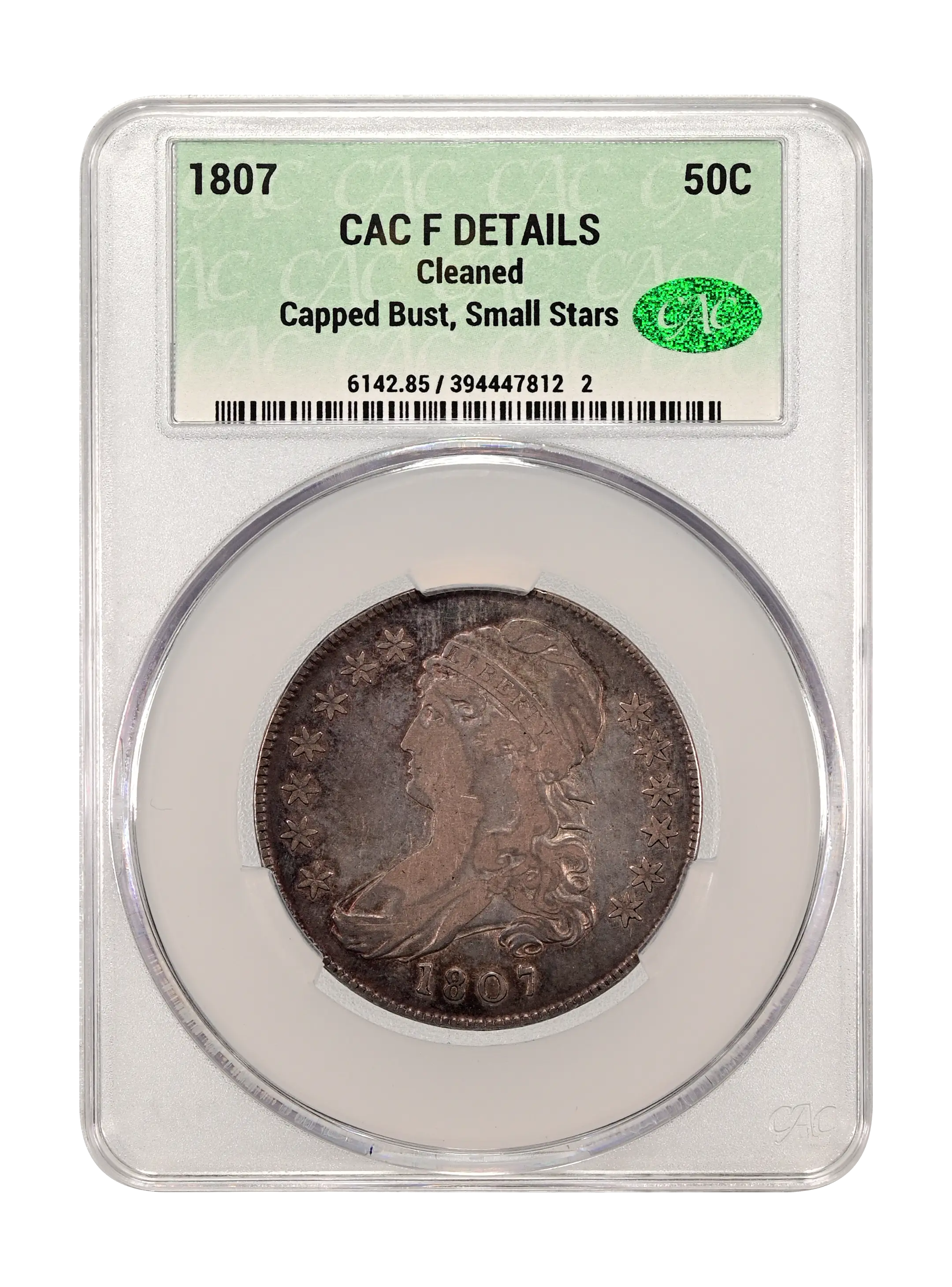 1807 Capped Bust, Small Stars 50c CAC F DETAILS