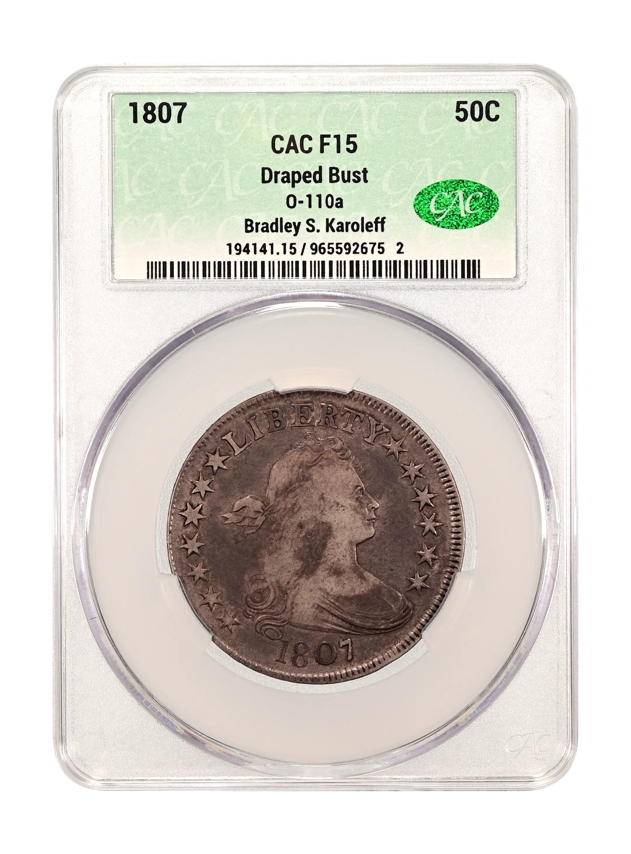 1807 Draped Bust 50c O-110a CAC F15