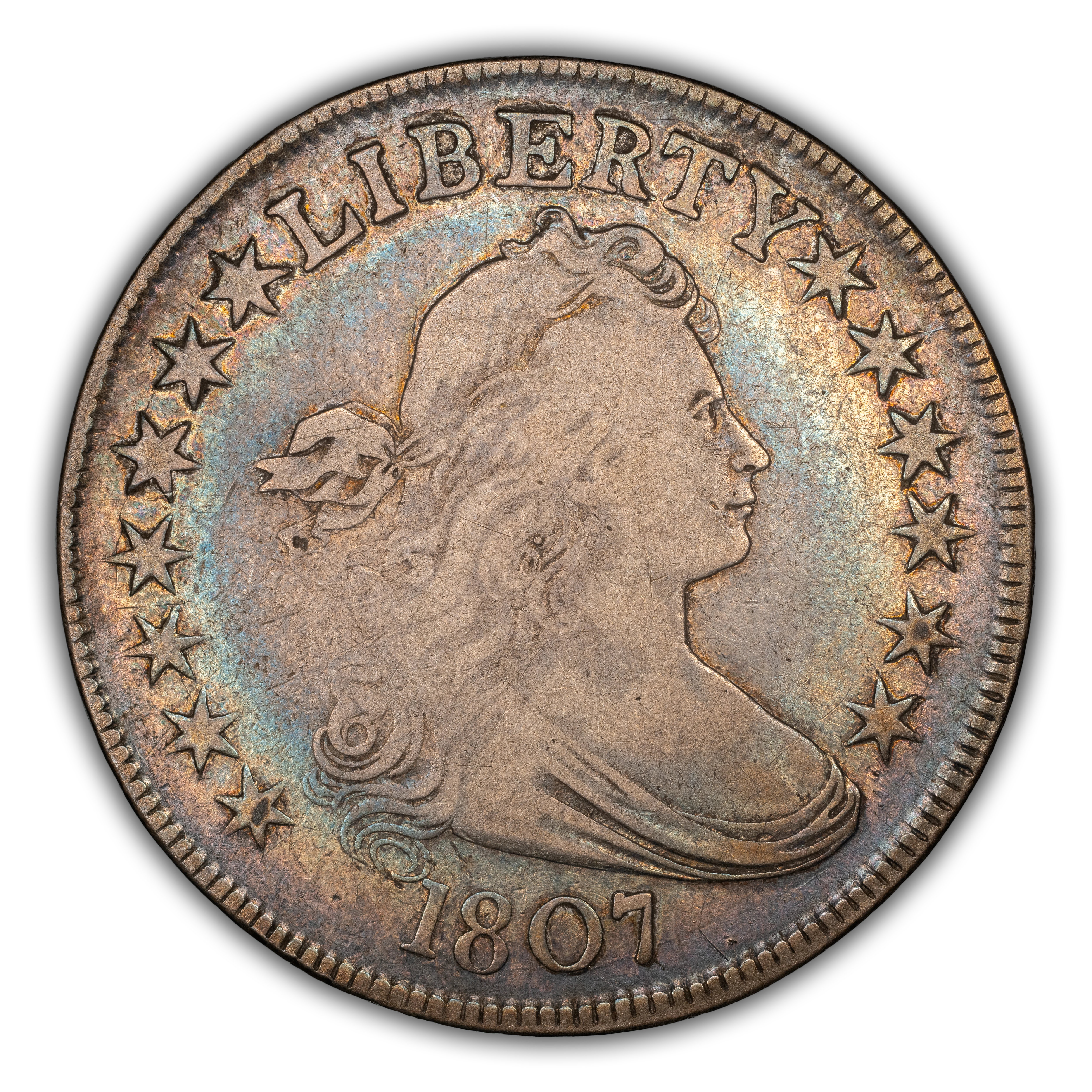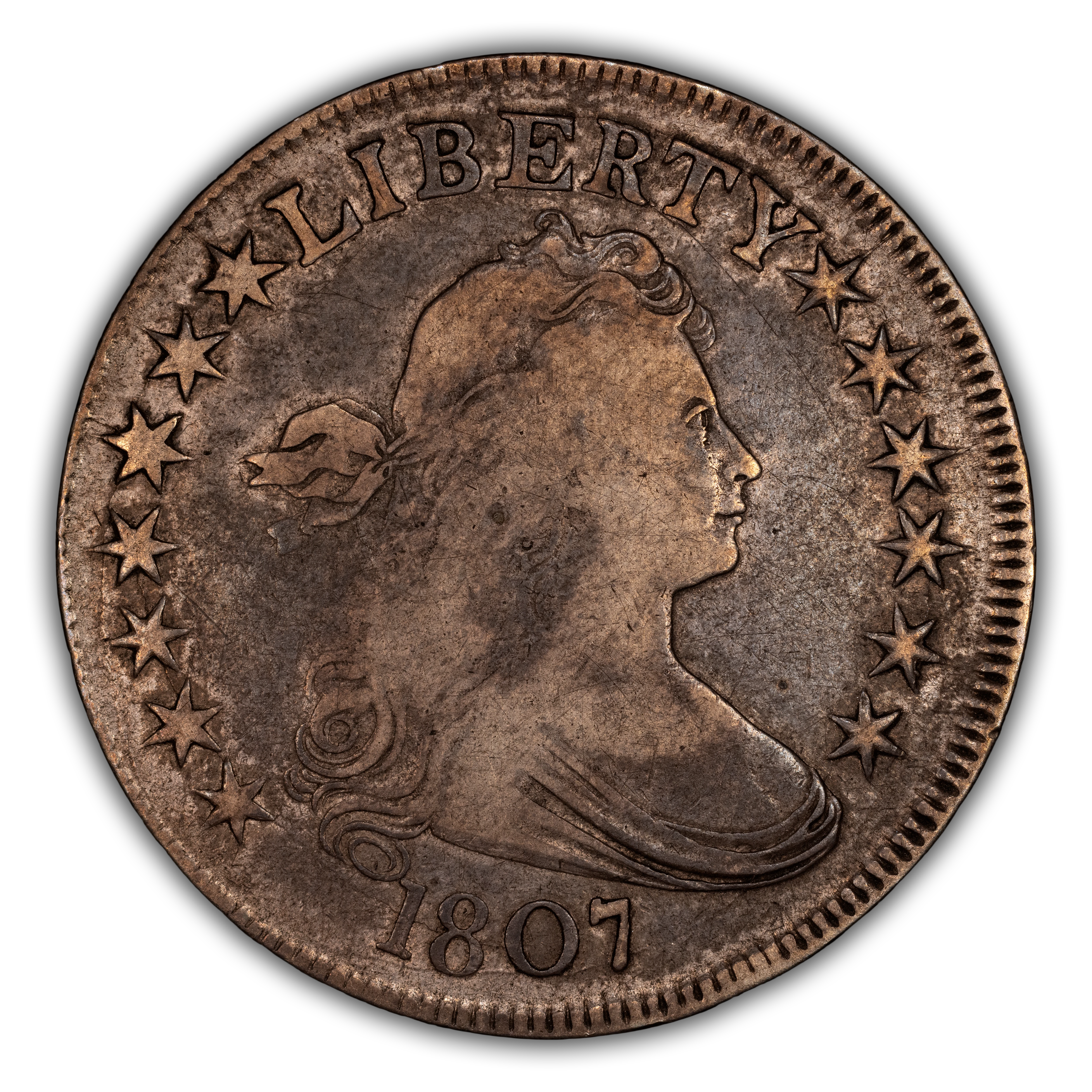1807 50C Draped Bust, O-110a, R.2, VF25 PCGS. CDN: $690 Whsle. Bid for NGC/PCGS VF25. Mintage 301,076....