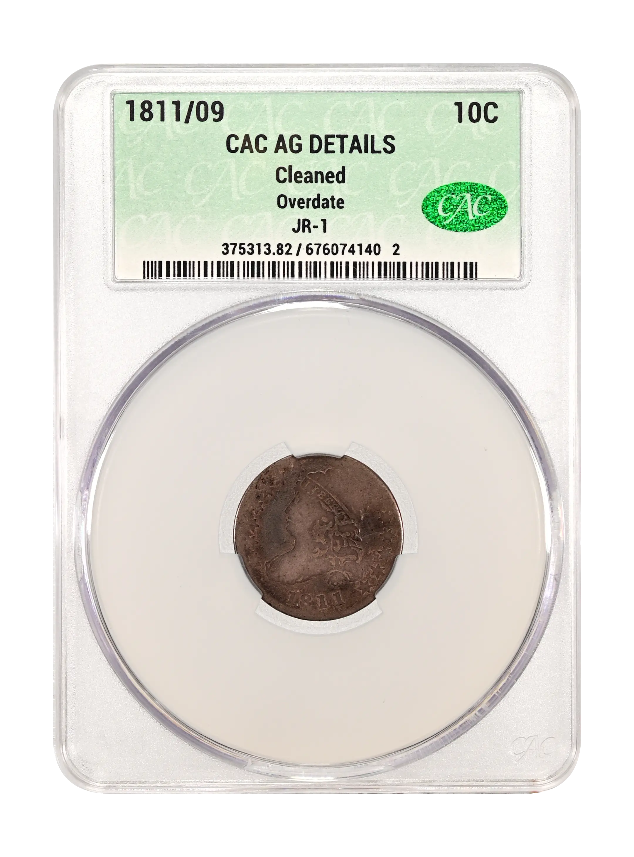 1811/09 Overdate 10c JR-1 CAC AG DETAILS