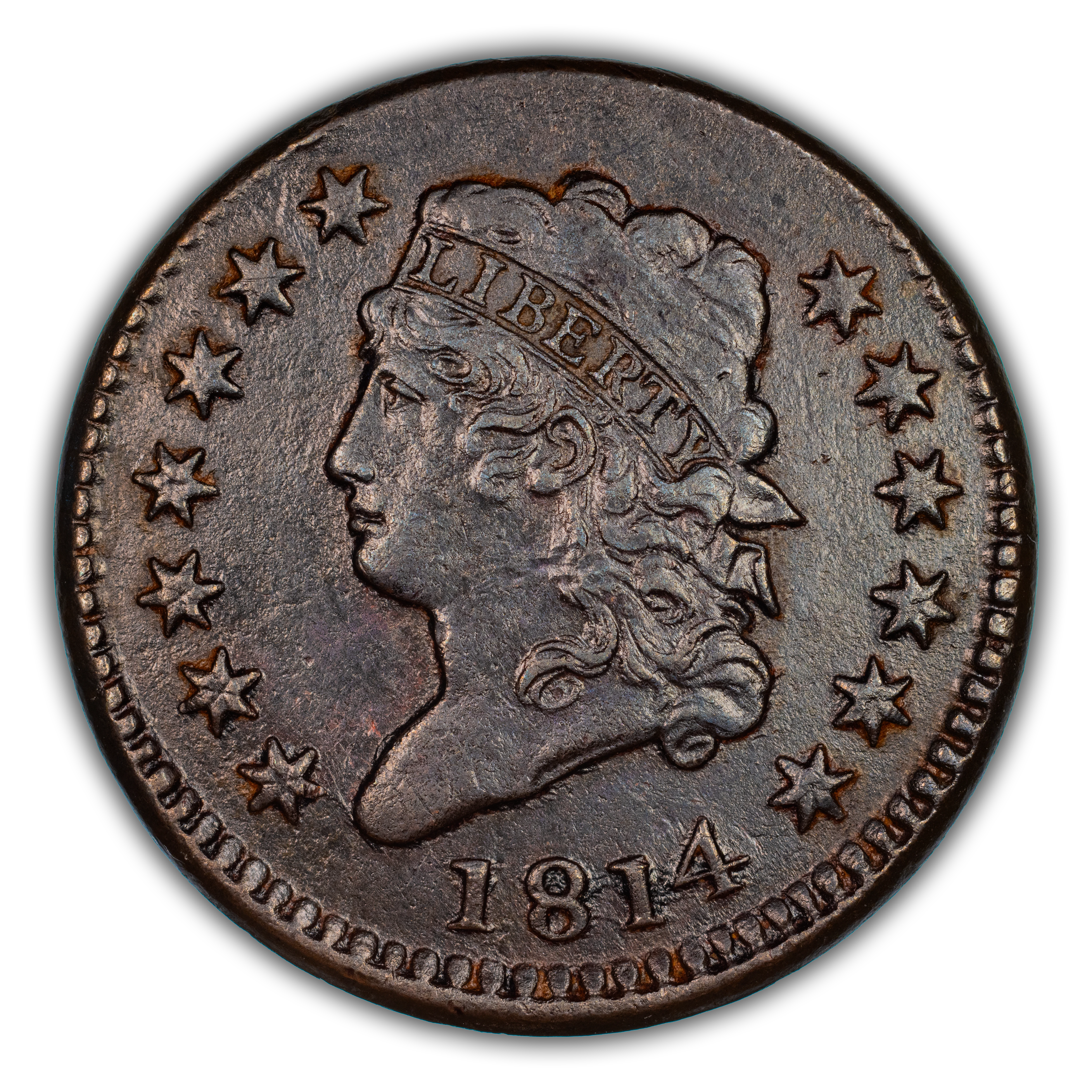 1814 1c PCGS/CAC AU50 (Plain 4)