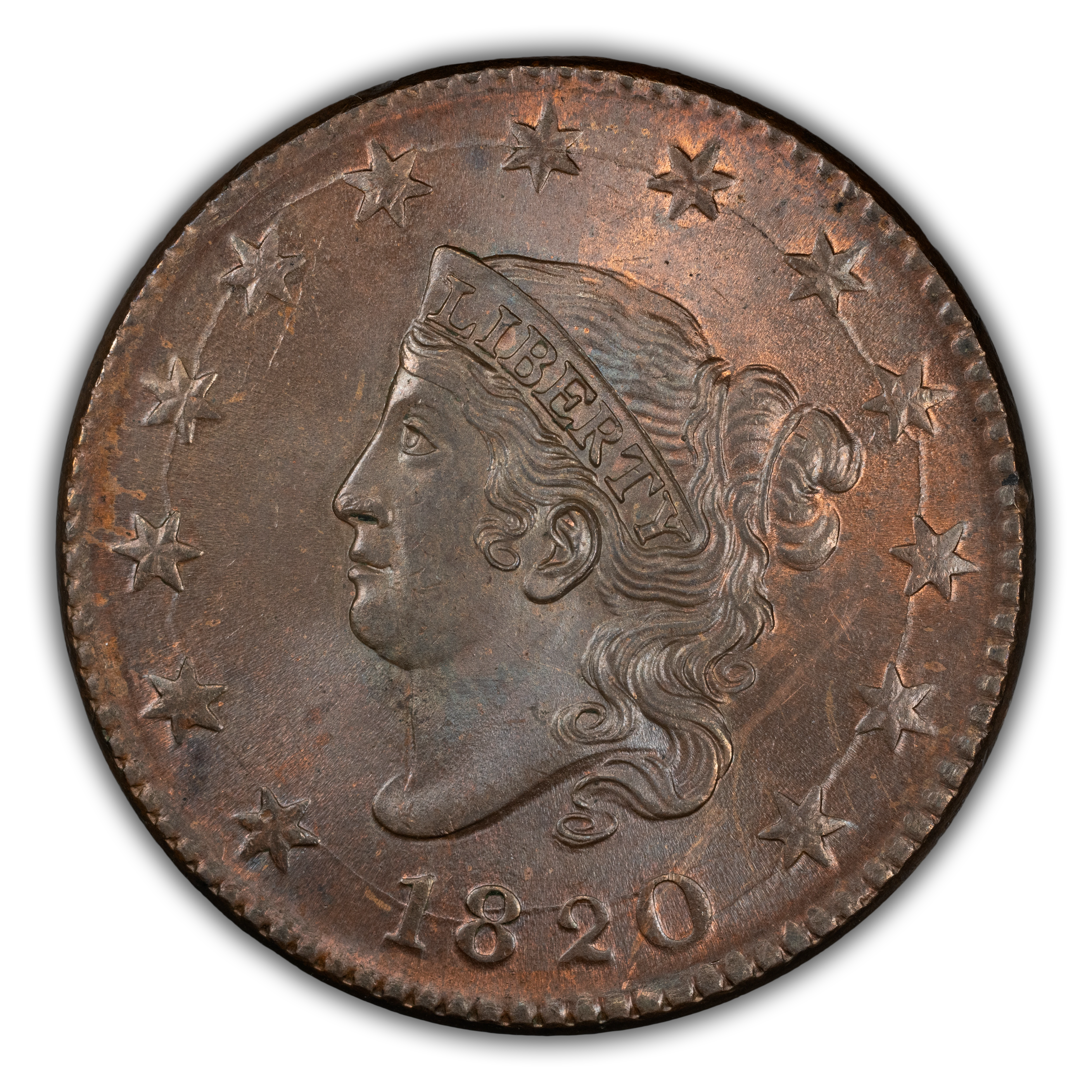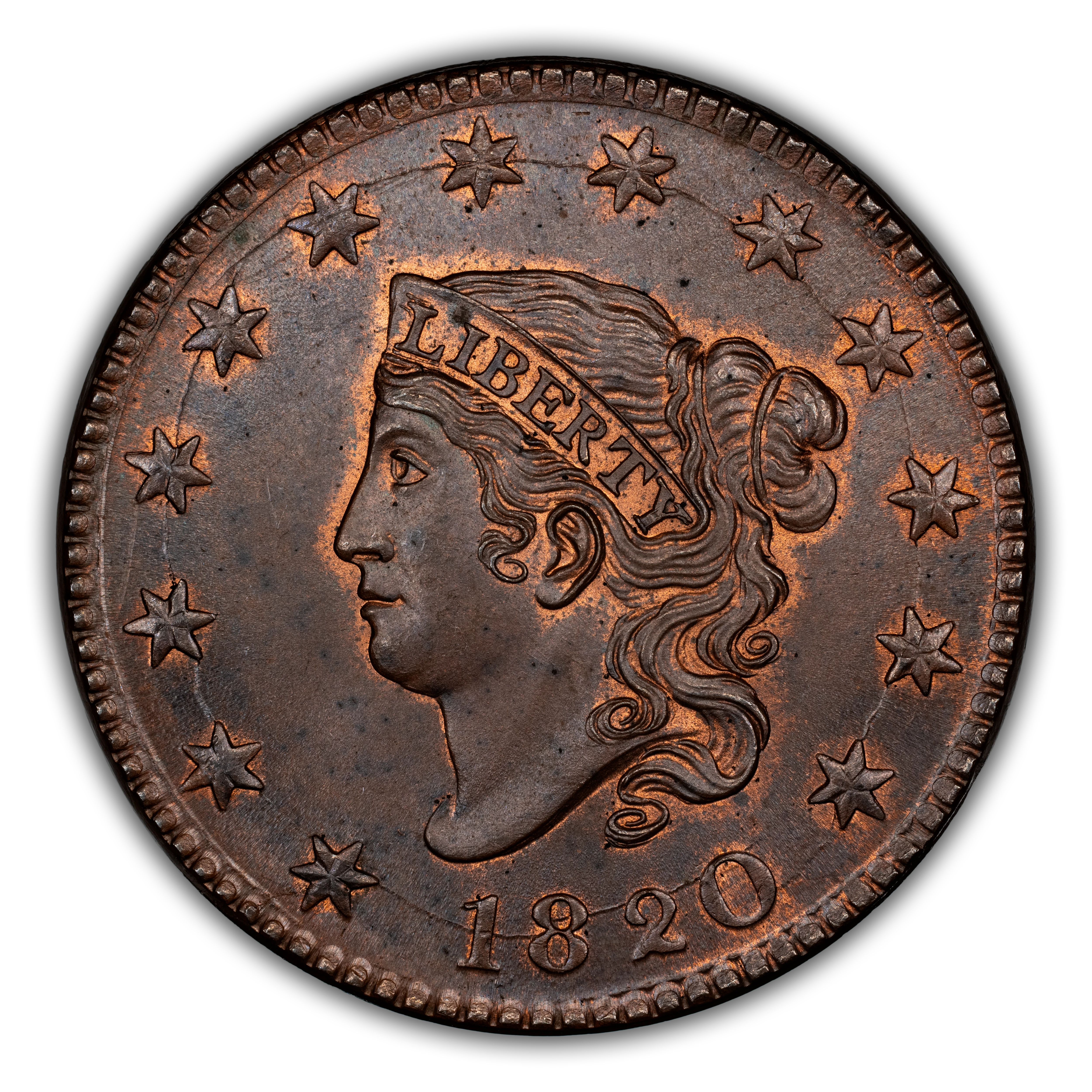 L1C 1820 LARGE DATE. PCGS MS64 BN CAC