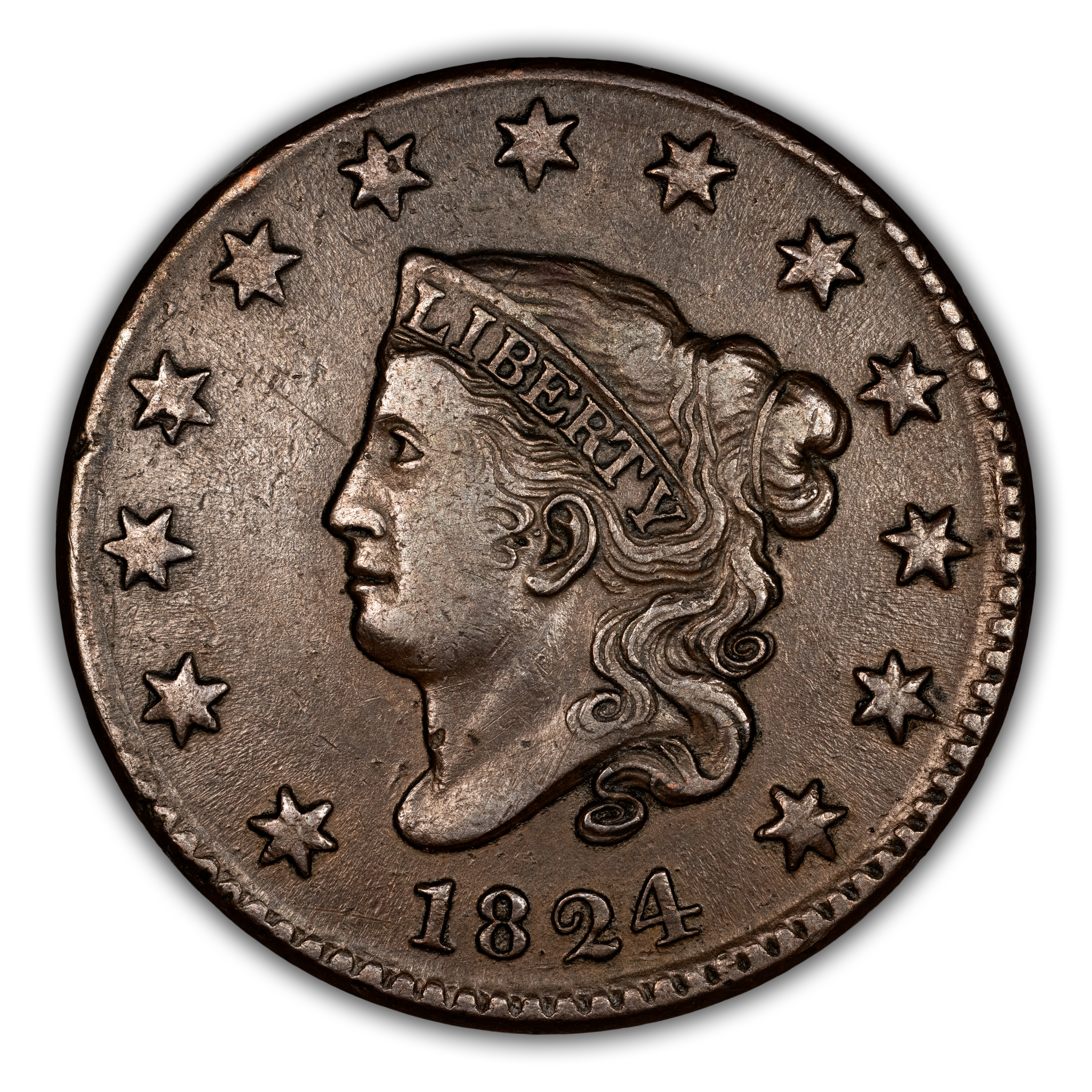 1824 Matron Head Cent. N-4. Rarity-2. MS-64 BN (PCGS).