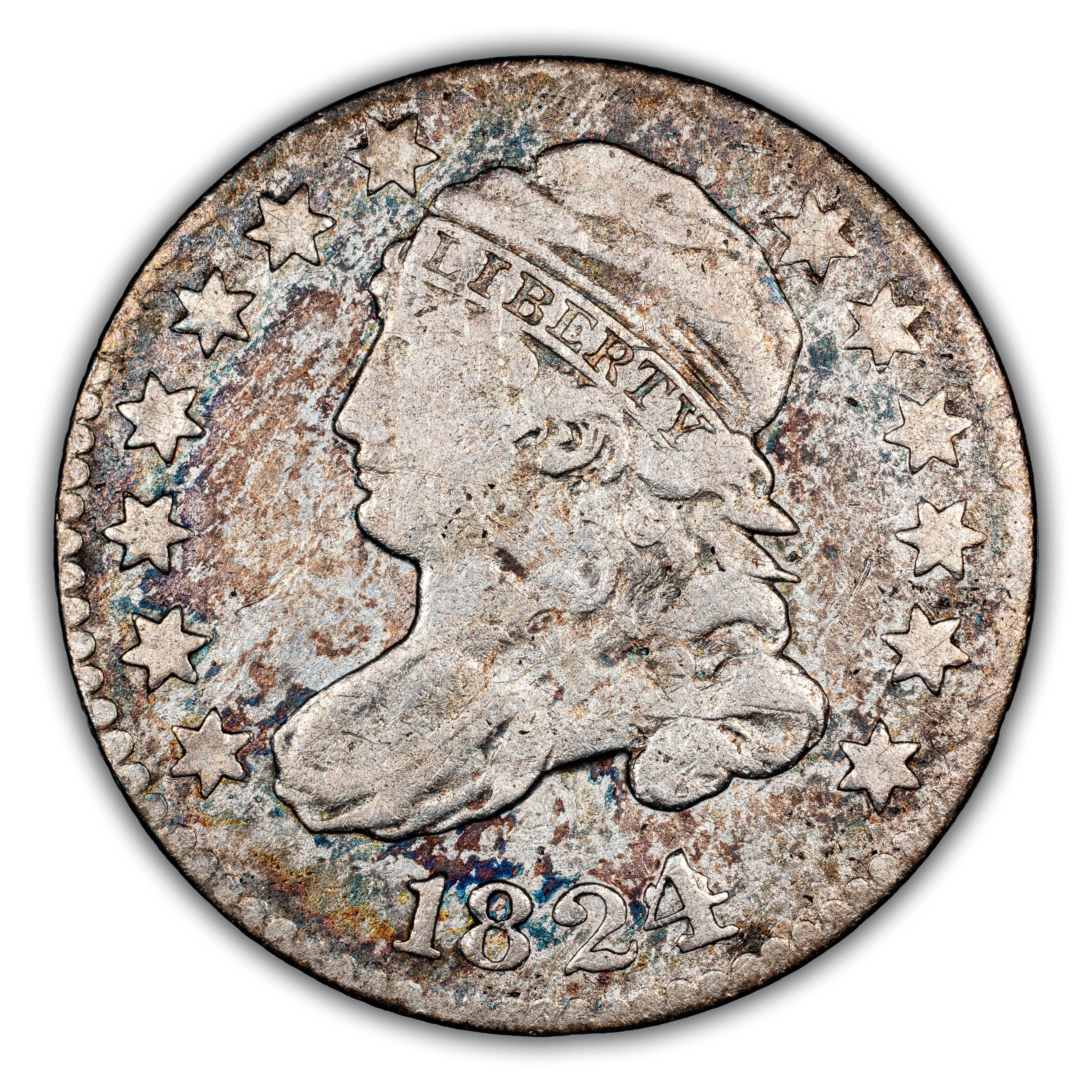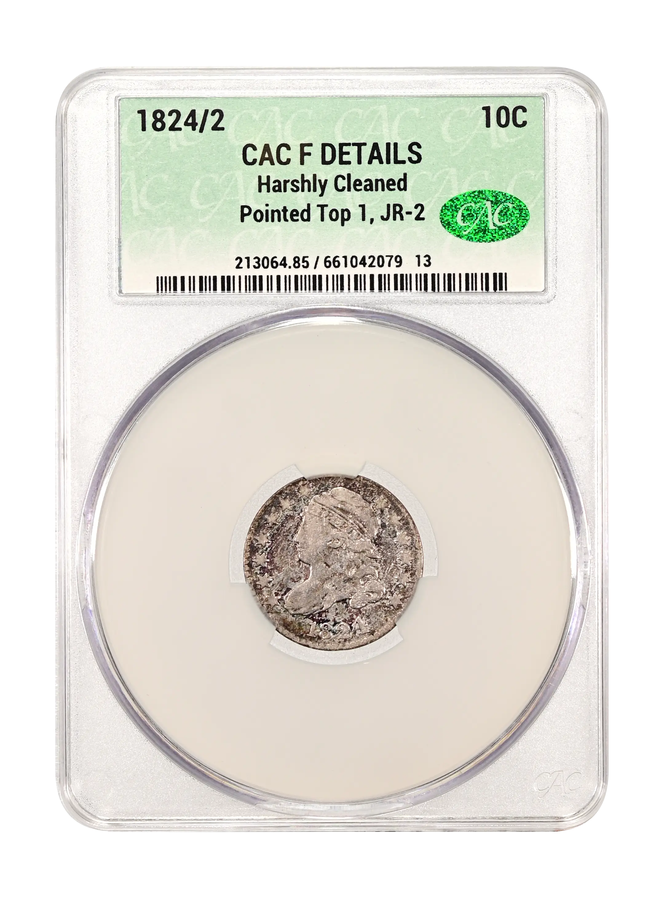 1824/2 Capped Bust Dime. JR-2. Rarity-5+. Pointed Top 1 in 10 C. Good-4 (PCGS).