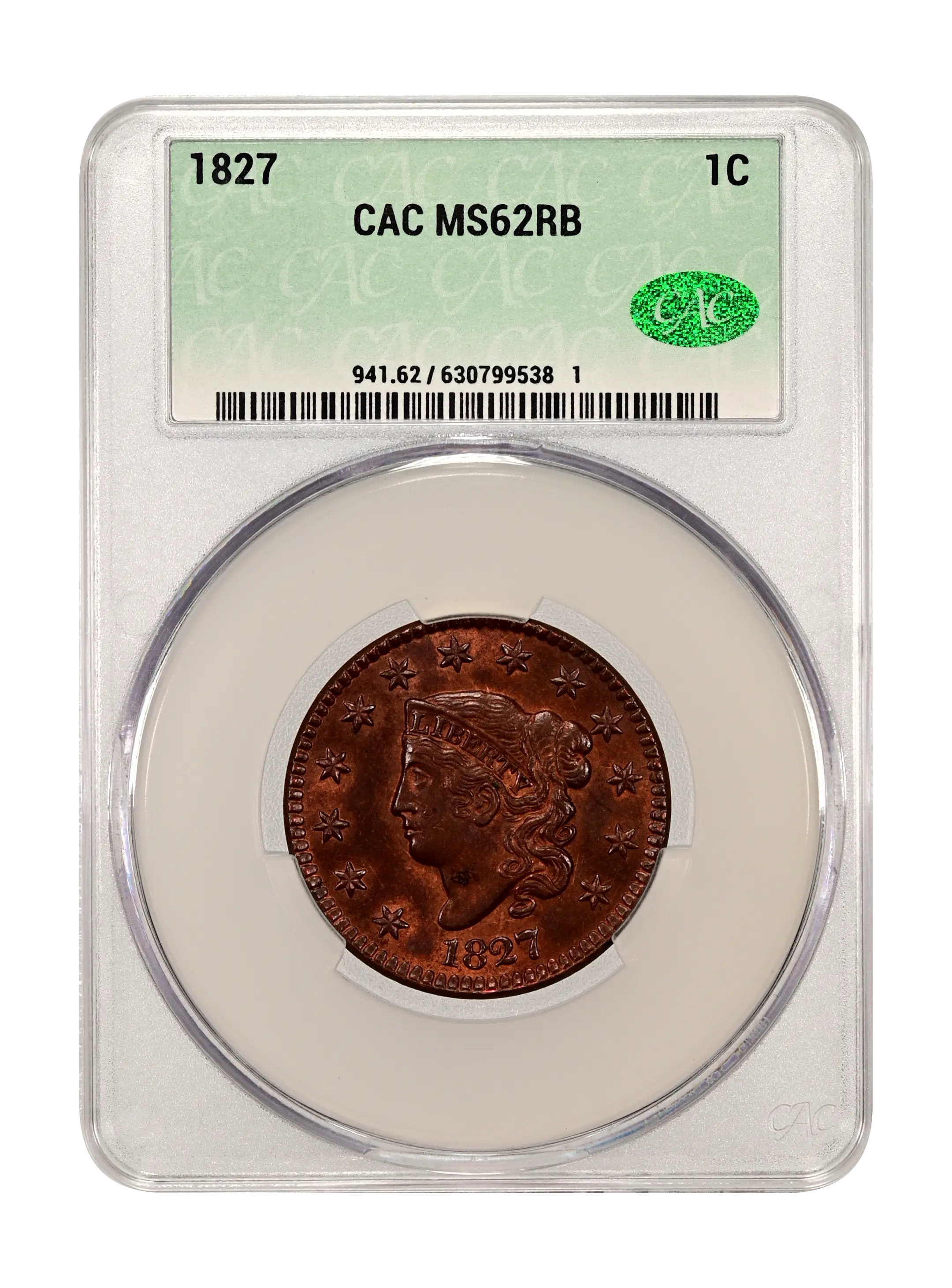 1827 1c RB CAC MS62RB