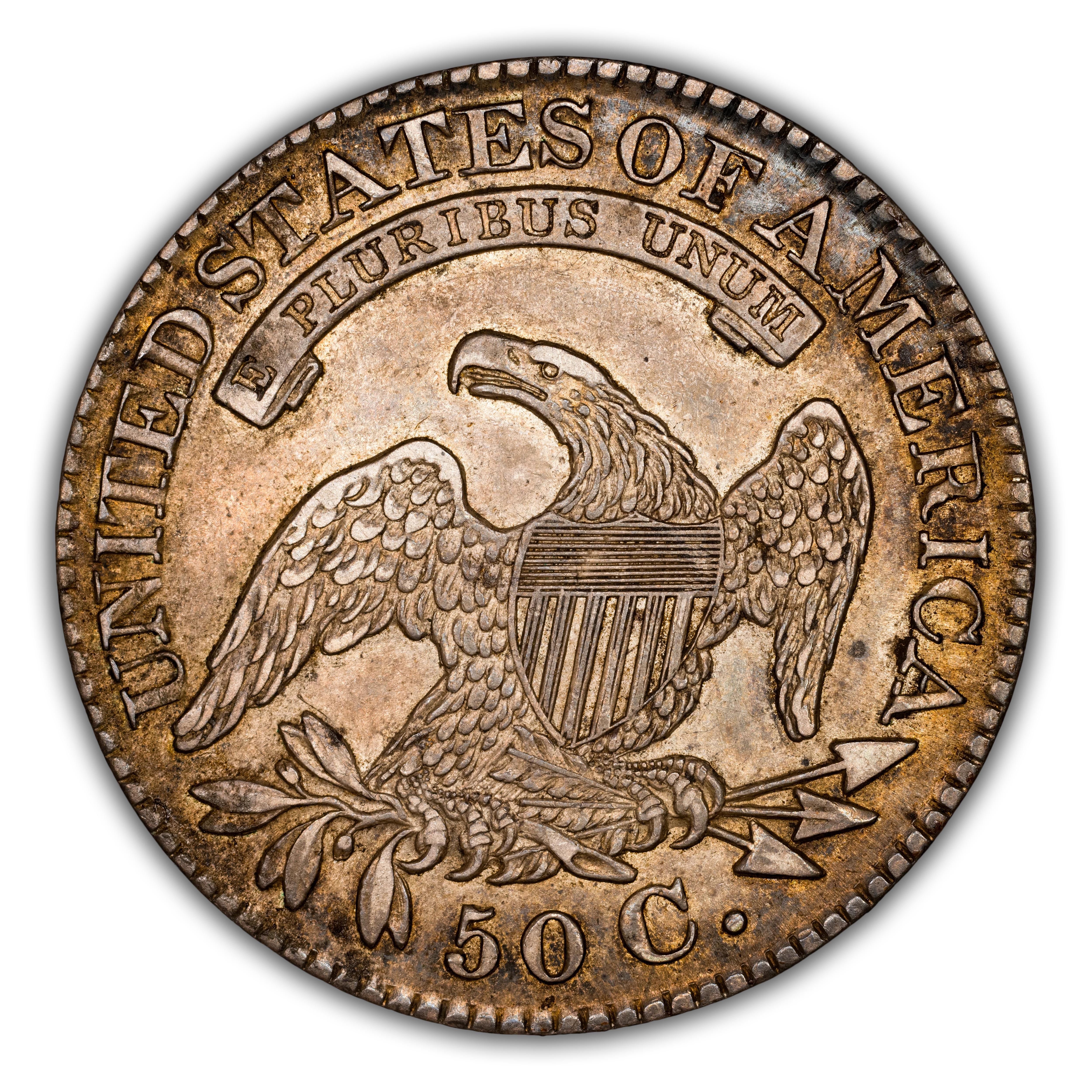 1827 50C Square Base 2, O-111, R.4, AU50 PCGS. PCGS Population: (4/5). NGC Census: (1/4). AU50. Mintage 5,493,400. ...