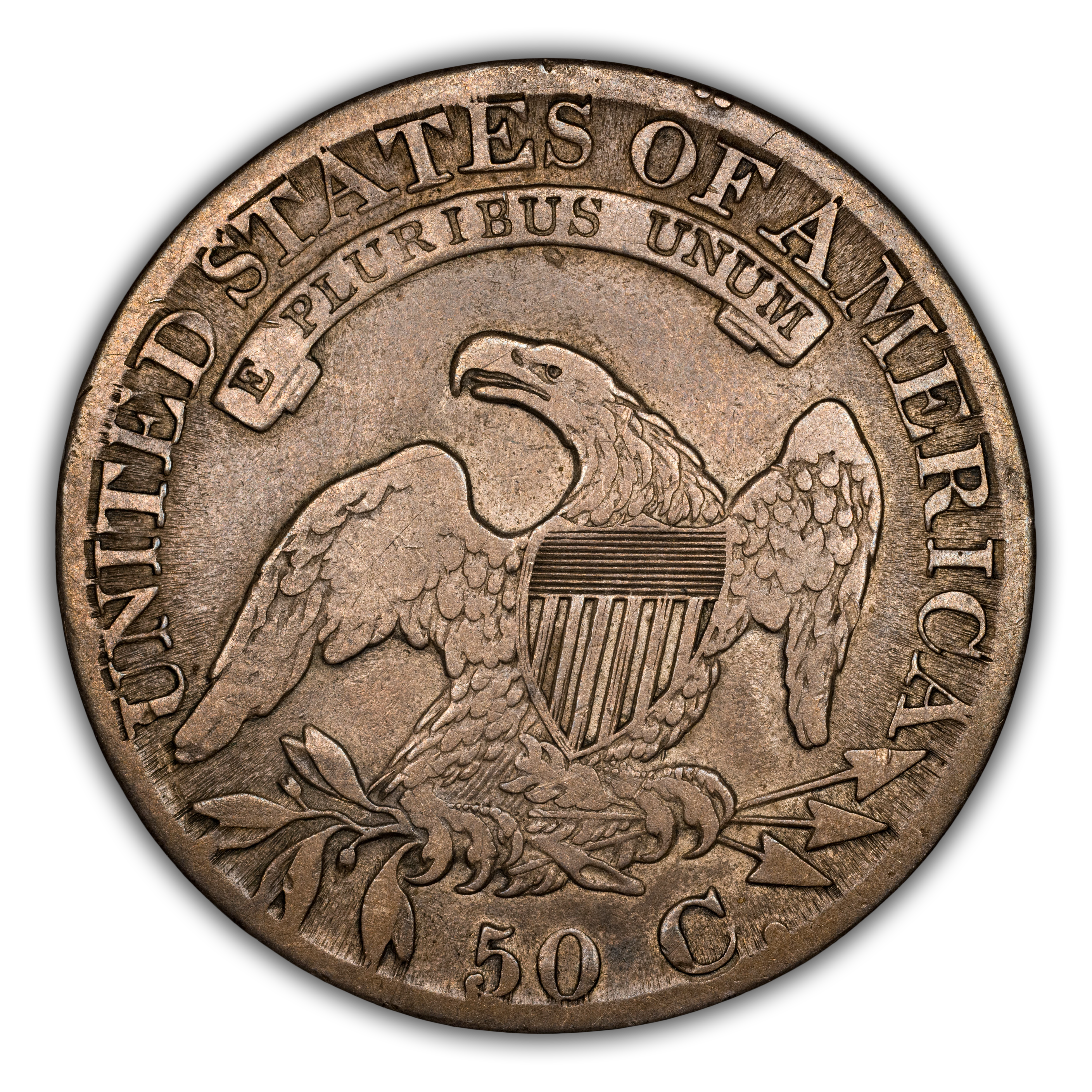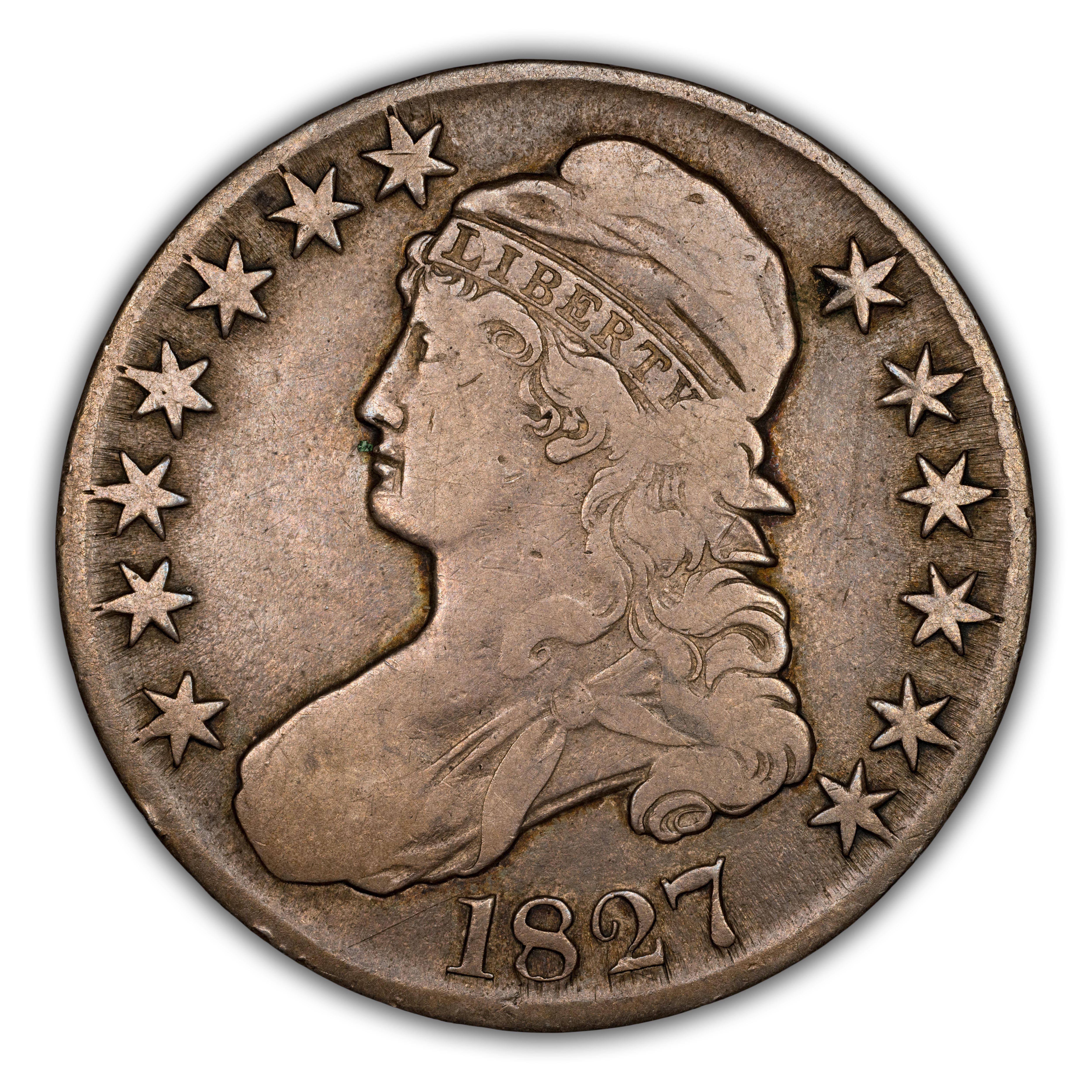 1827 50C Square Base 2, O-136, R.4, AU53 PCGS. PCGS Population: (4/6). NGC Census: (1/6). Mintage 5,493,400. ...
