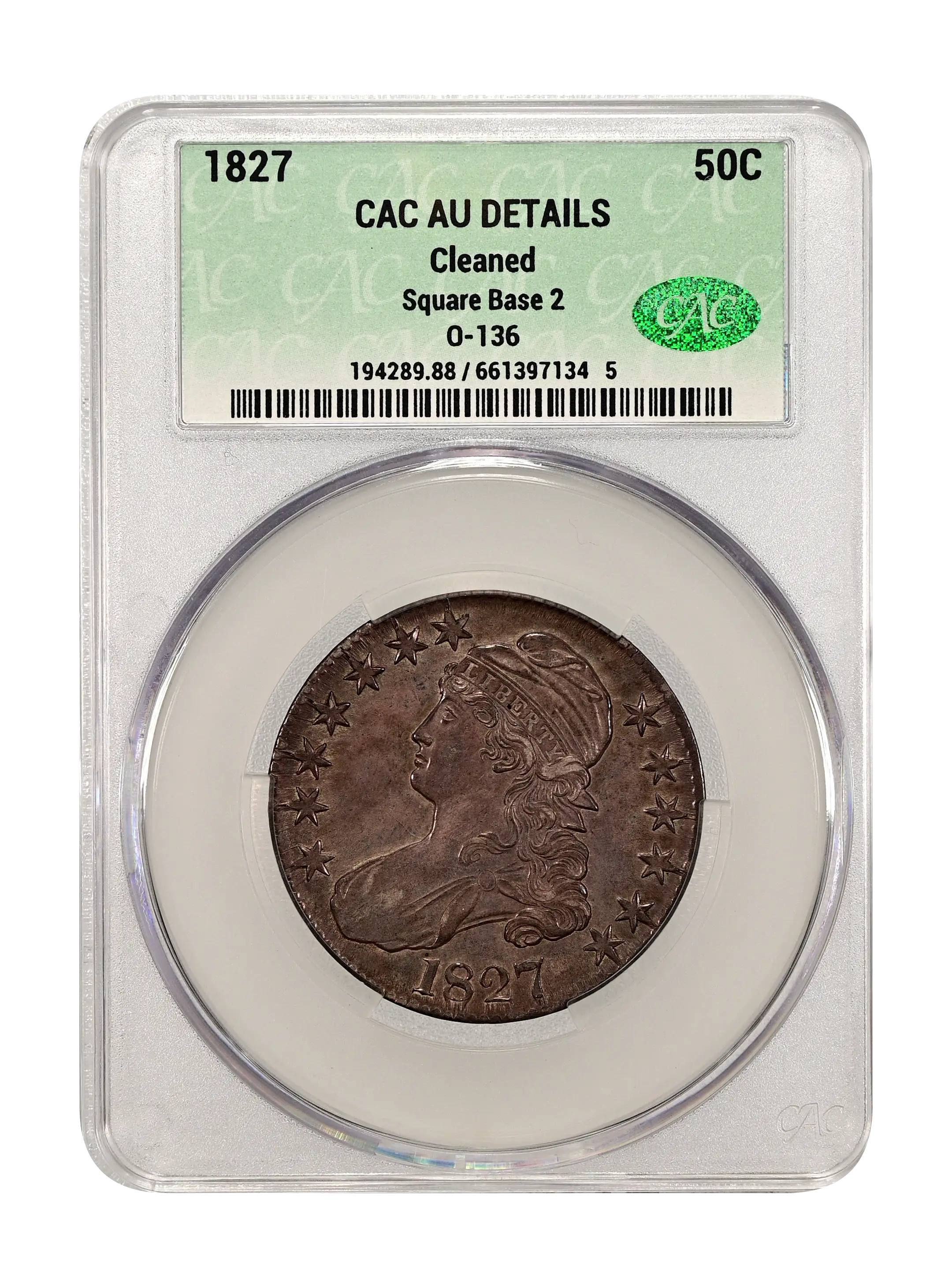 1827 Square Base 2 50c O-136 CAC AU DETAILS