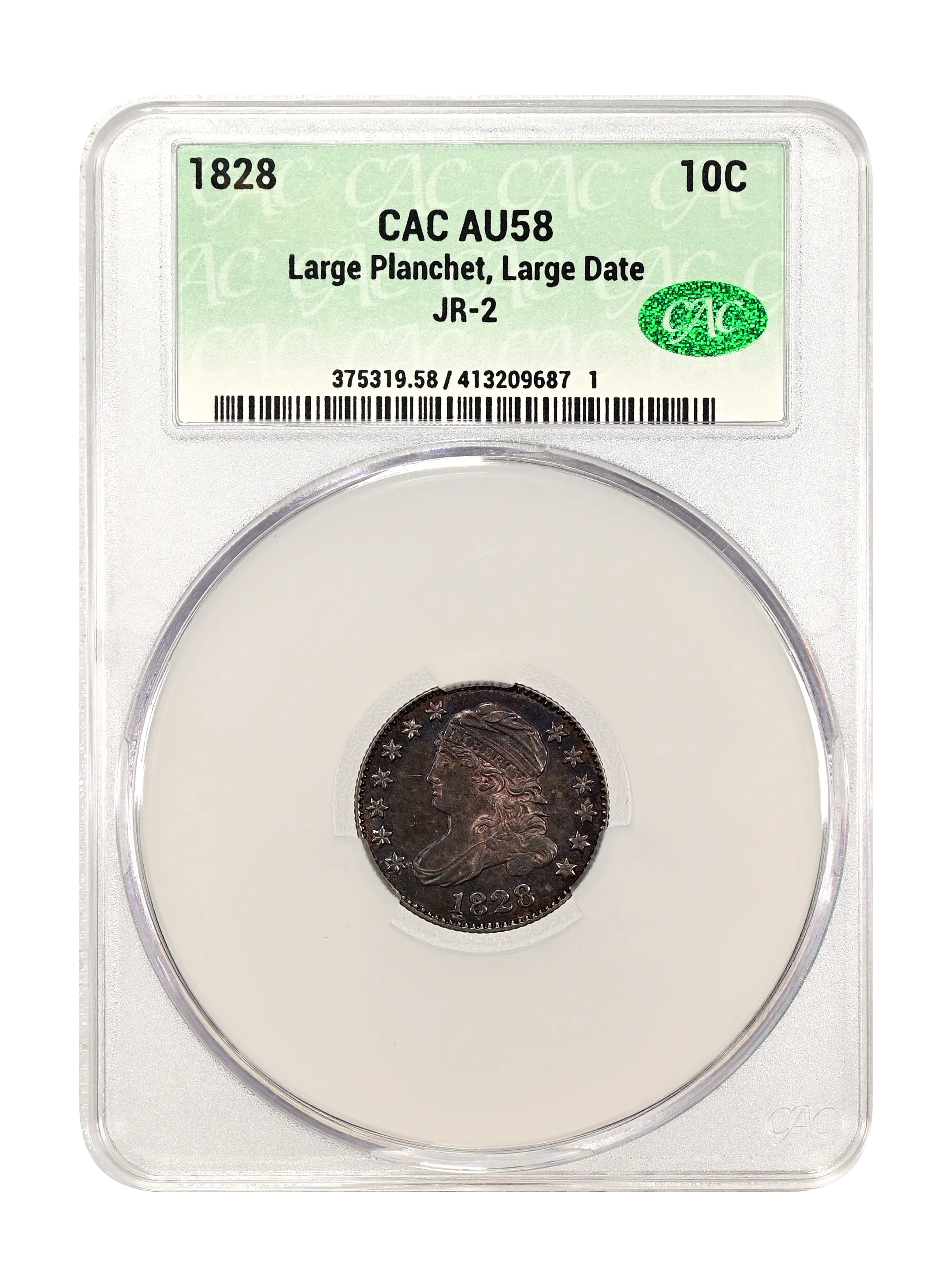 1828 Large Planchet, Large Date 10c JR-2 CAC AU58
