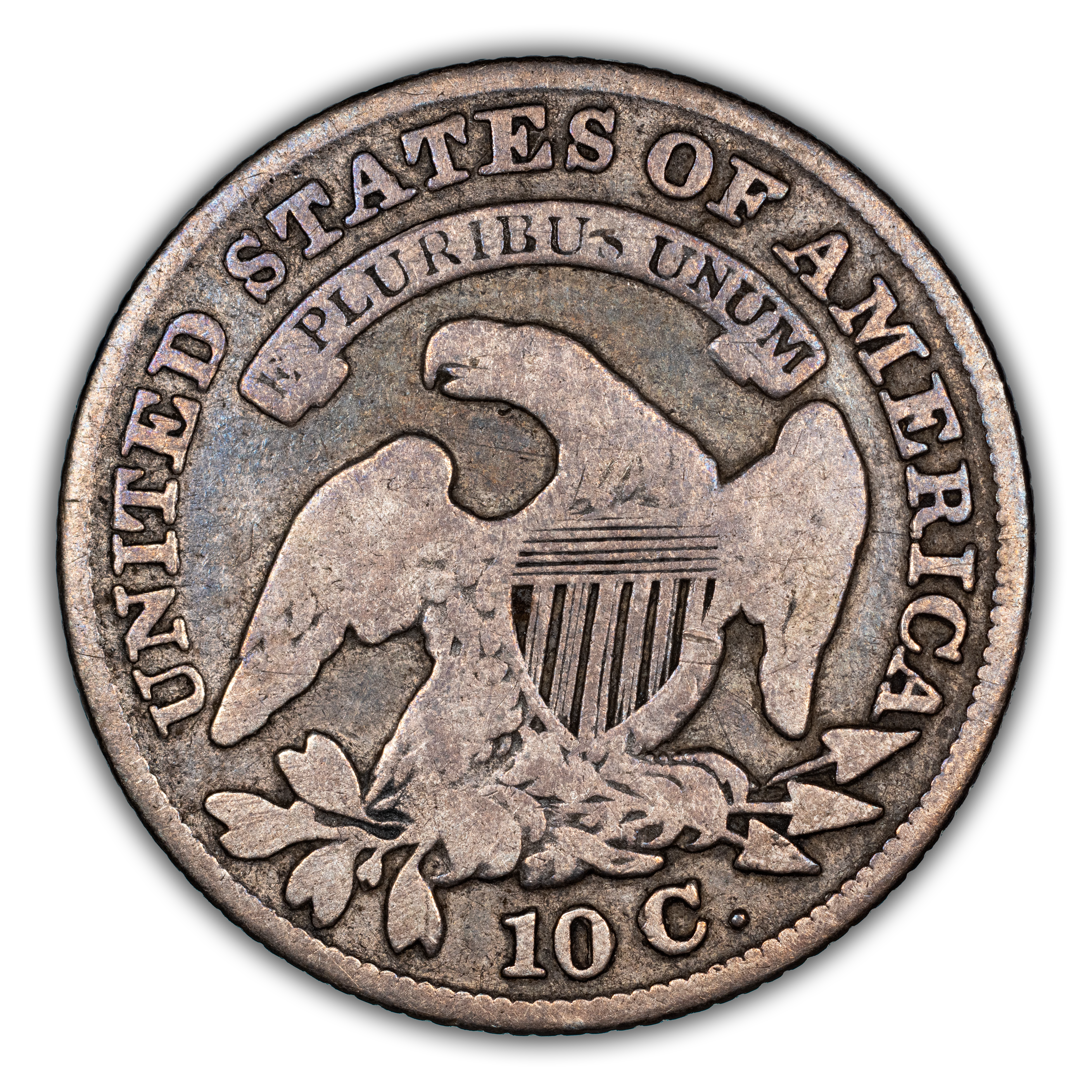 Capped Bust dimes, designed by John Reich, are generally more common than the Draped Bust issues. However, like their earlier counterparts they are challenging to locate in the better Mint States grades. The 1822 and 1829 Curl Base 2 are the rarest issues, with both regularly trading in the four-figure range.