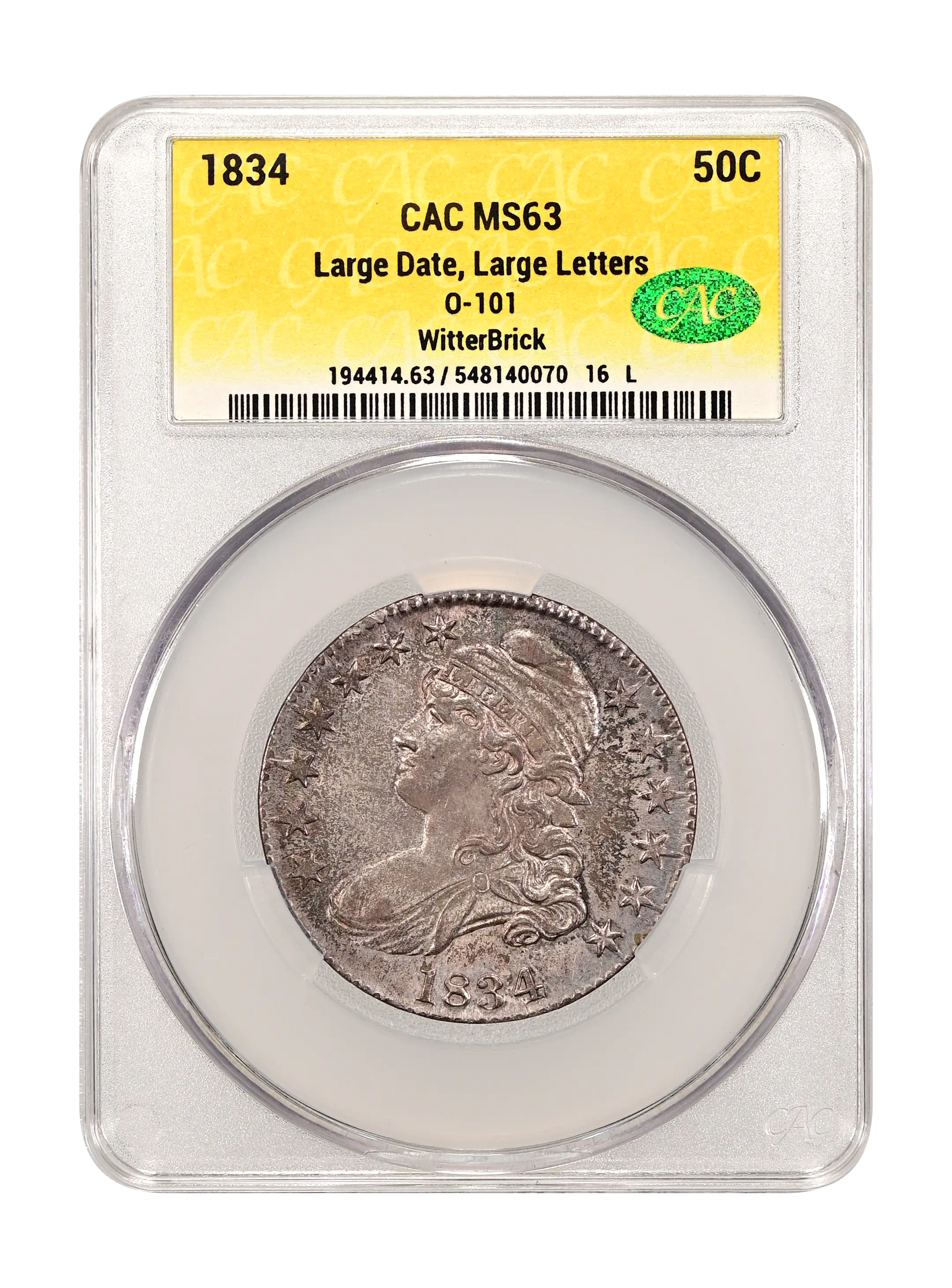1834 Large Date, Large Letters 50c O-101 CAC MS63