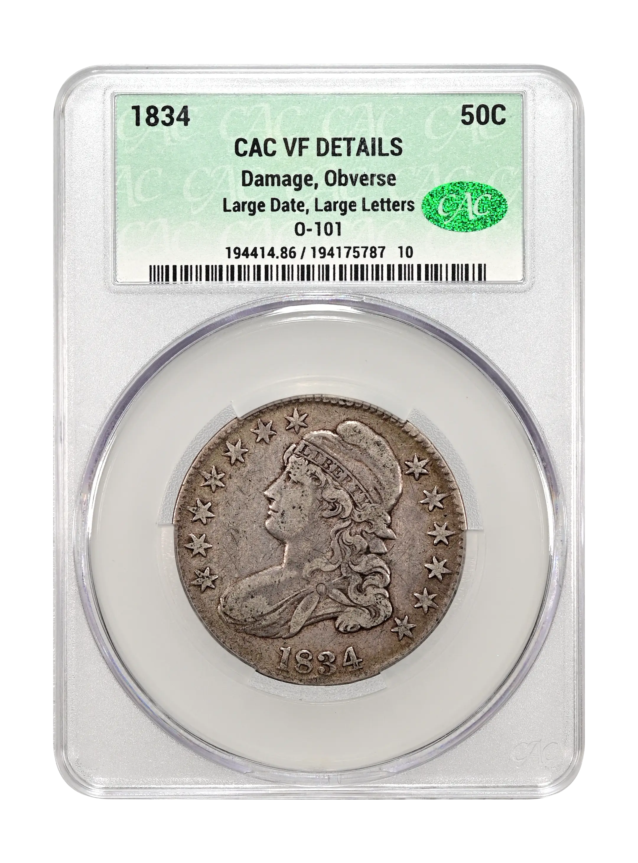 1834 Large Date, Large Letters 50c O-101 CAC VF DETAILS