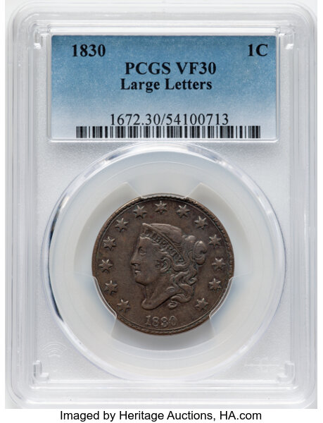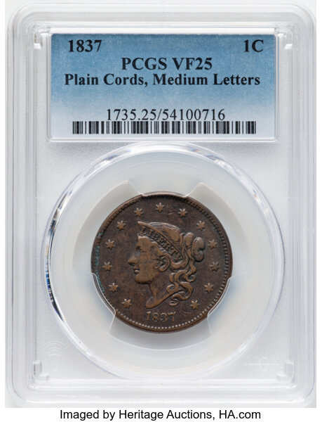 - 1834 1c Large 8, Small Stars, Medium Letters, N-4 MS RB