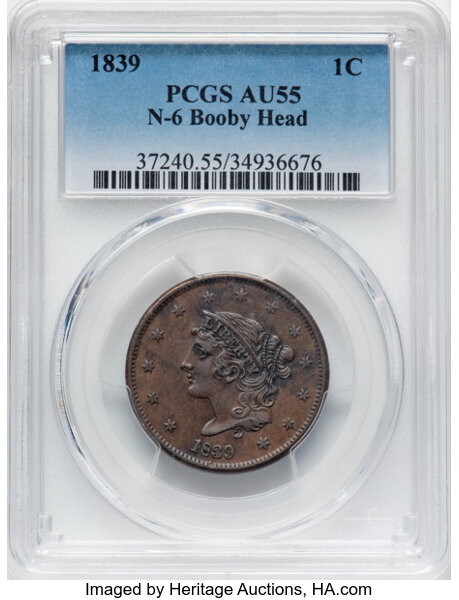 1834 1C N-4 , Large 8 , Small Stars , Medium Letters MS65 Red and Brown PCGS. Ex: Naftzger Collection. PCGS Population: (2/...