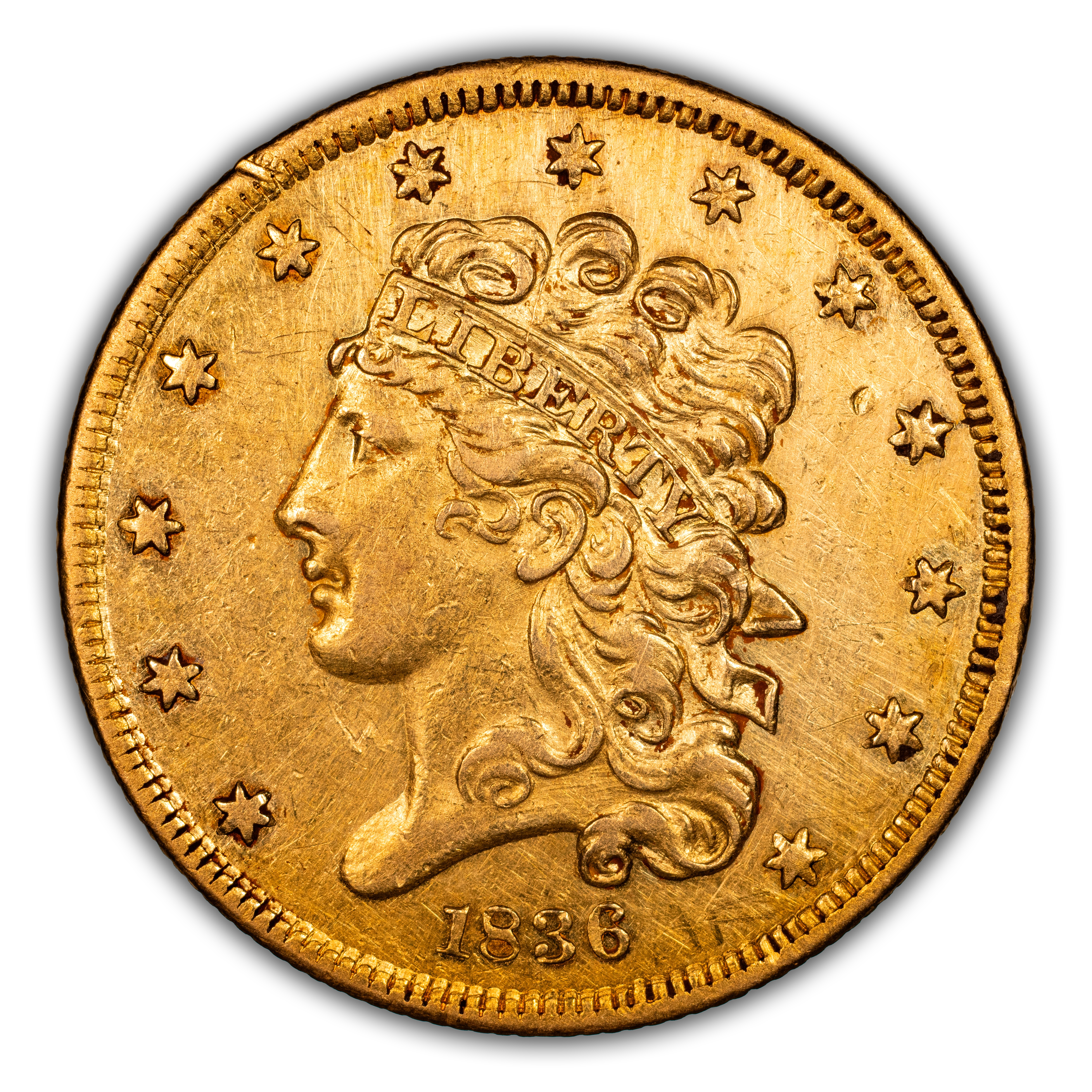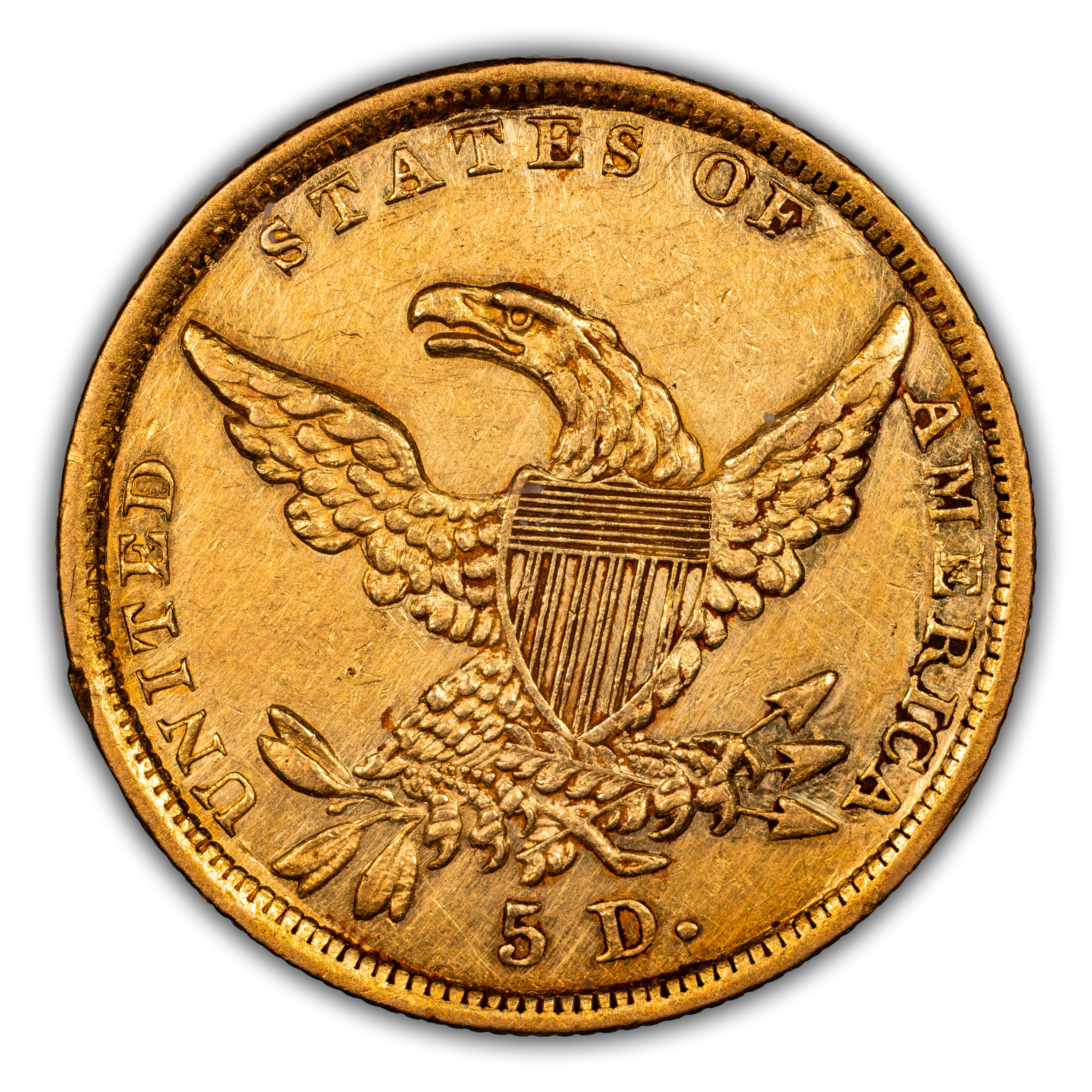 Reverse: An eagle with wings fully spread. The words UNITED STATES OF AMERICA around the periphery with "5 D." written as a fraction appears at the bottom.