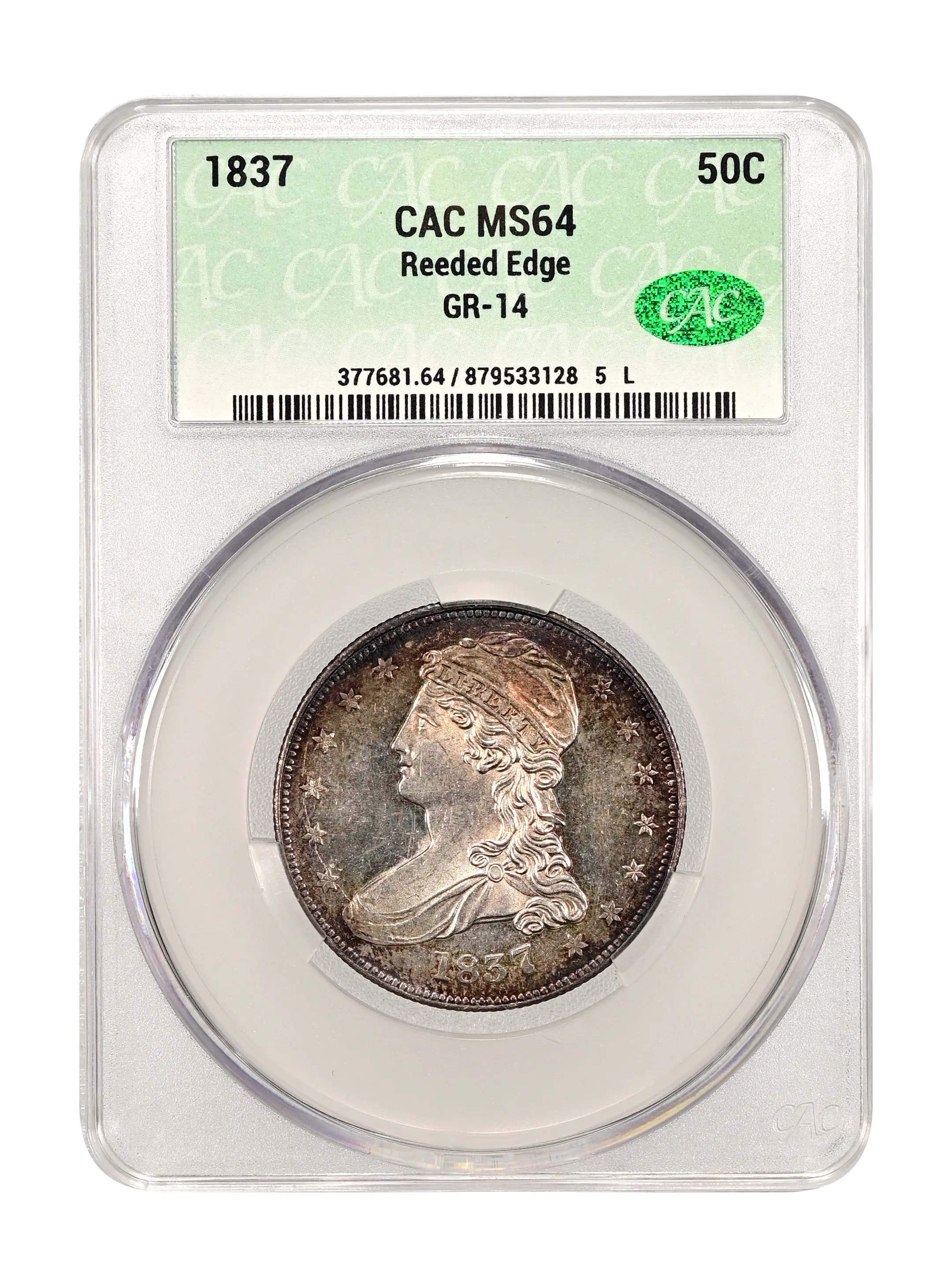 1837 Reeded Edge 50c GR-14 CAC MS64