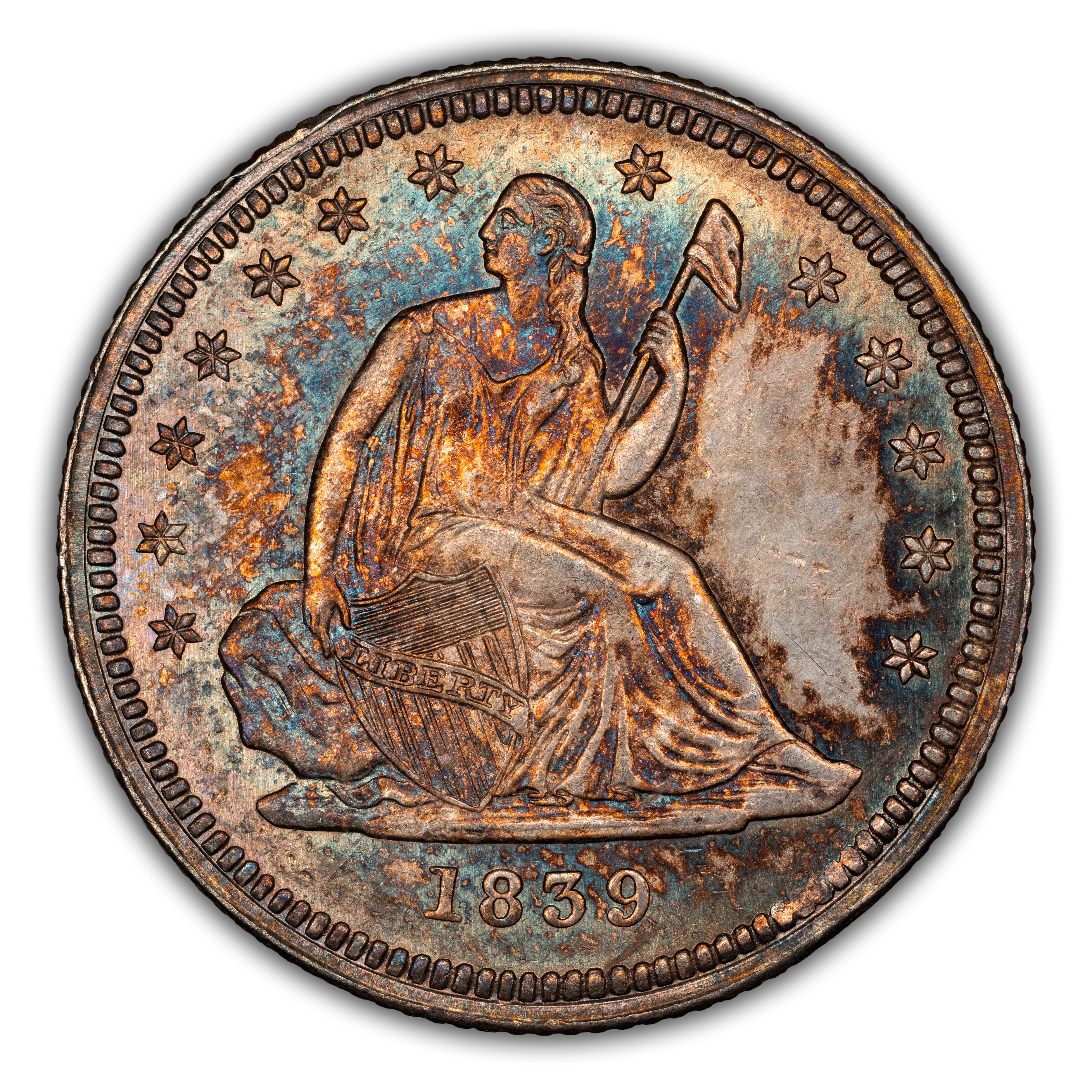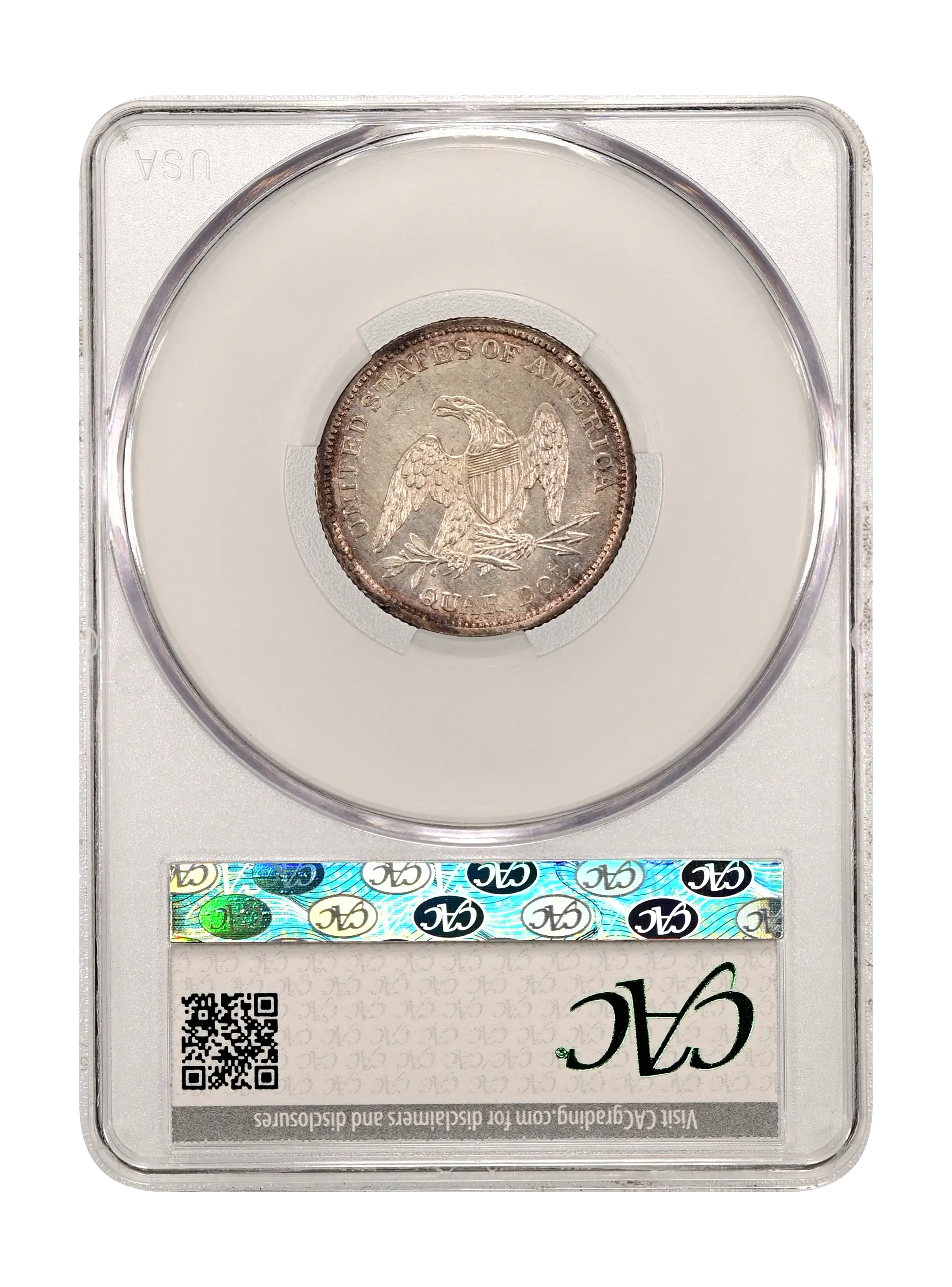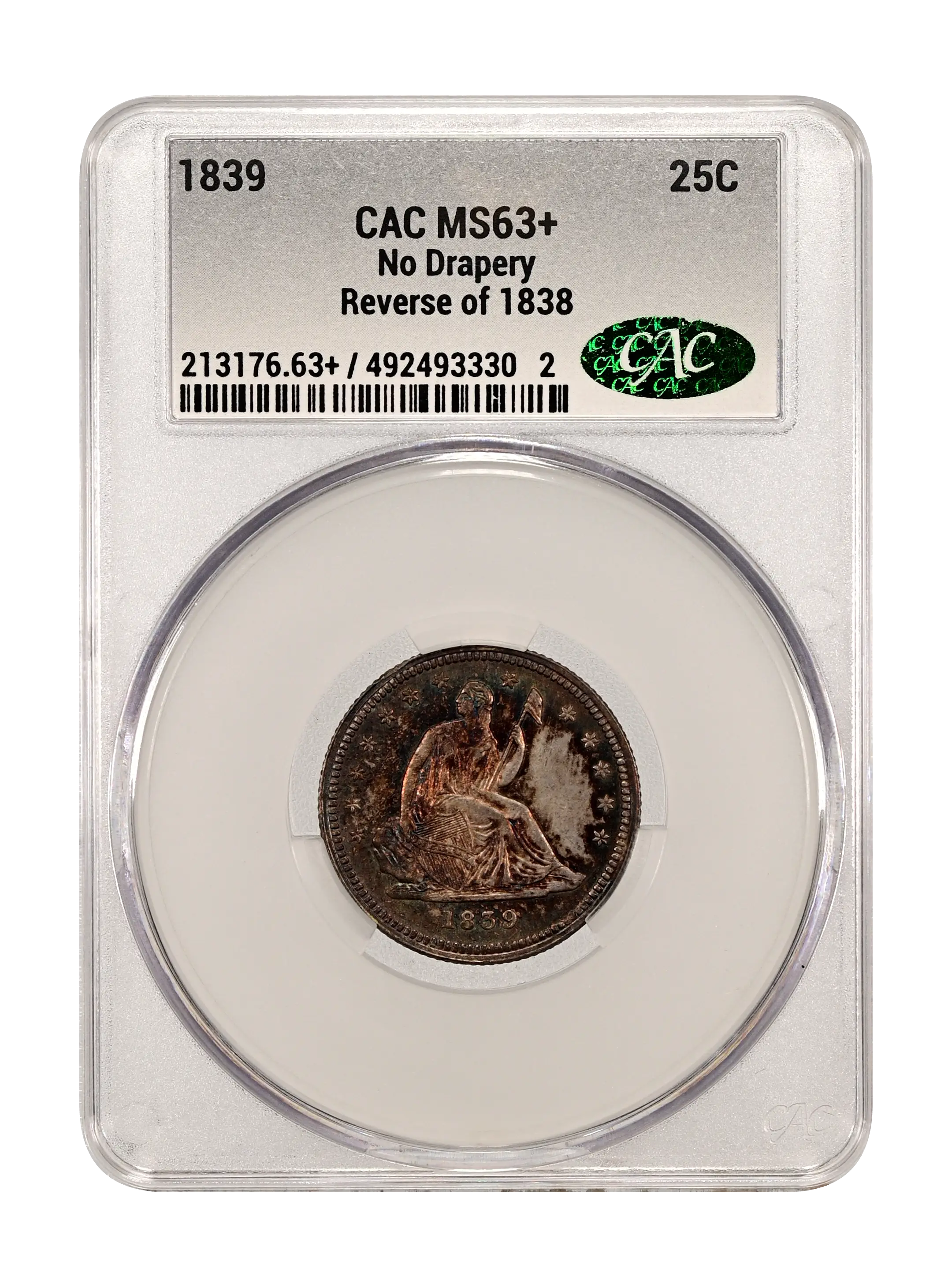 1839 No Drapery 25c Reverse of 1838 CAC MS63+