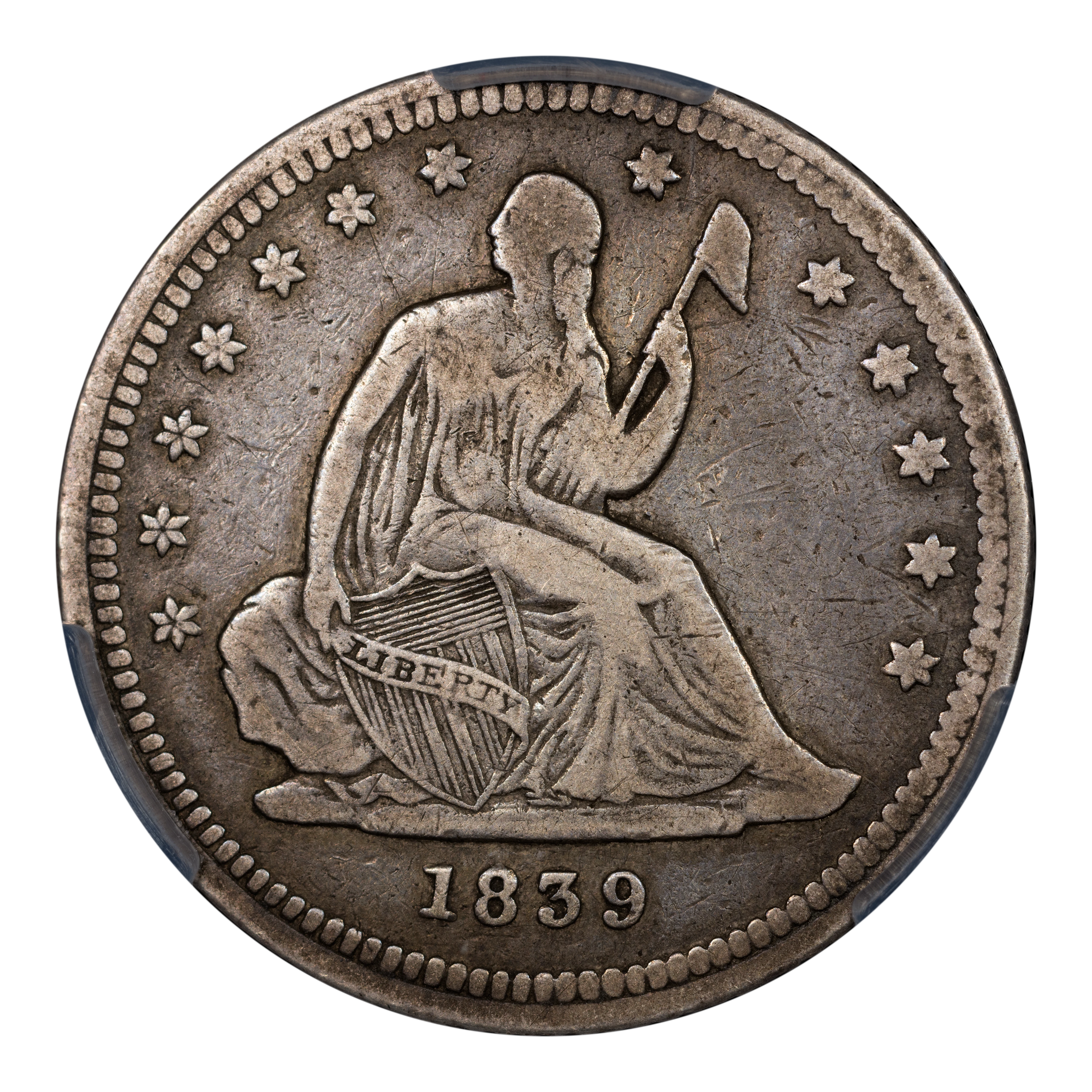 1839 No Drapery 25c Reverse of 1838 CAC VF DETAILS