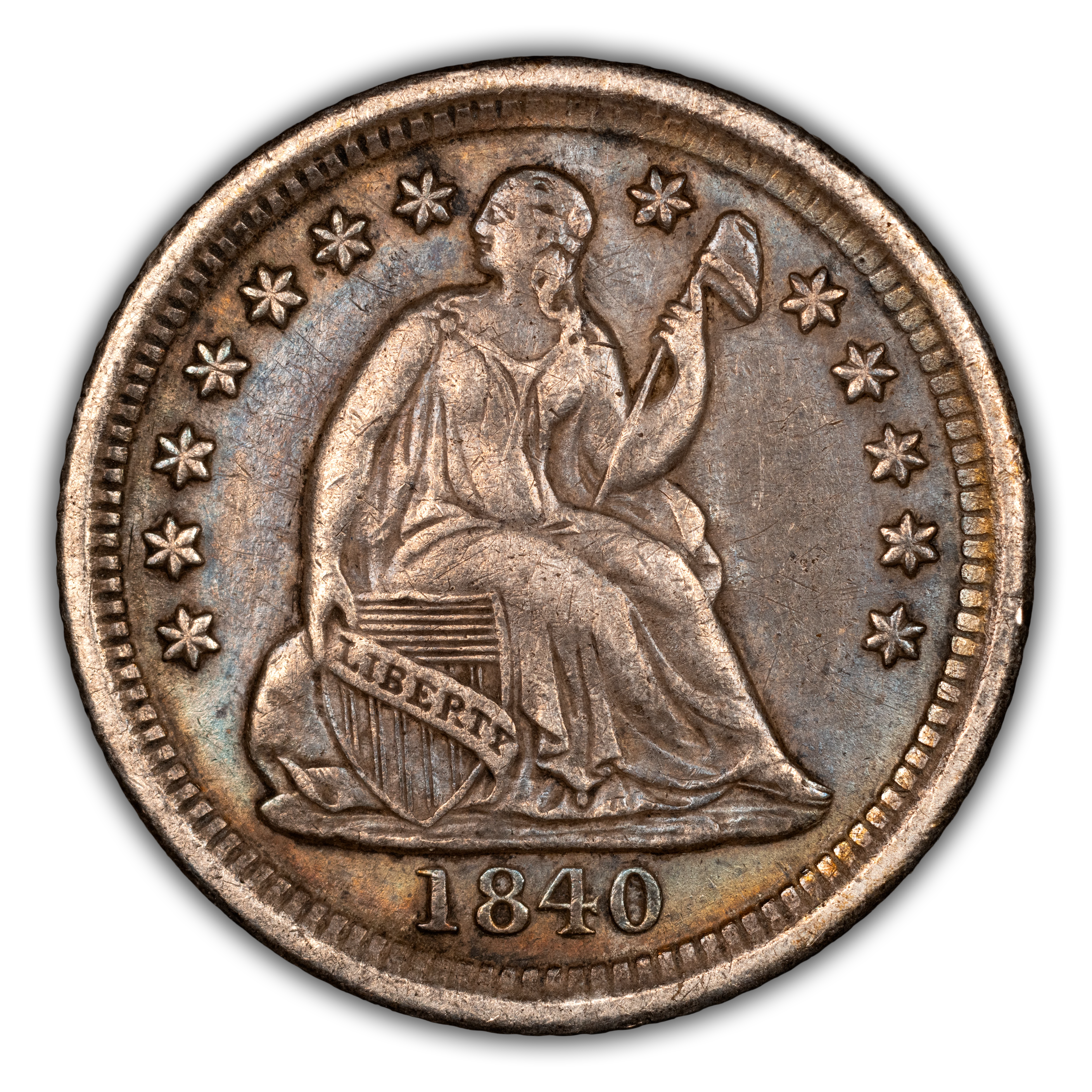 1840-O H10c PCGS XF40 (Drapery) Colorful Toning