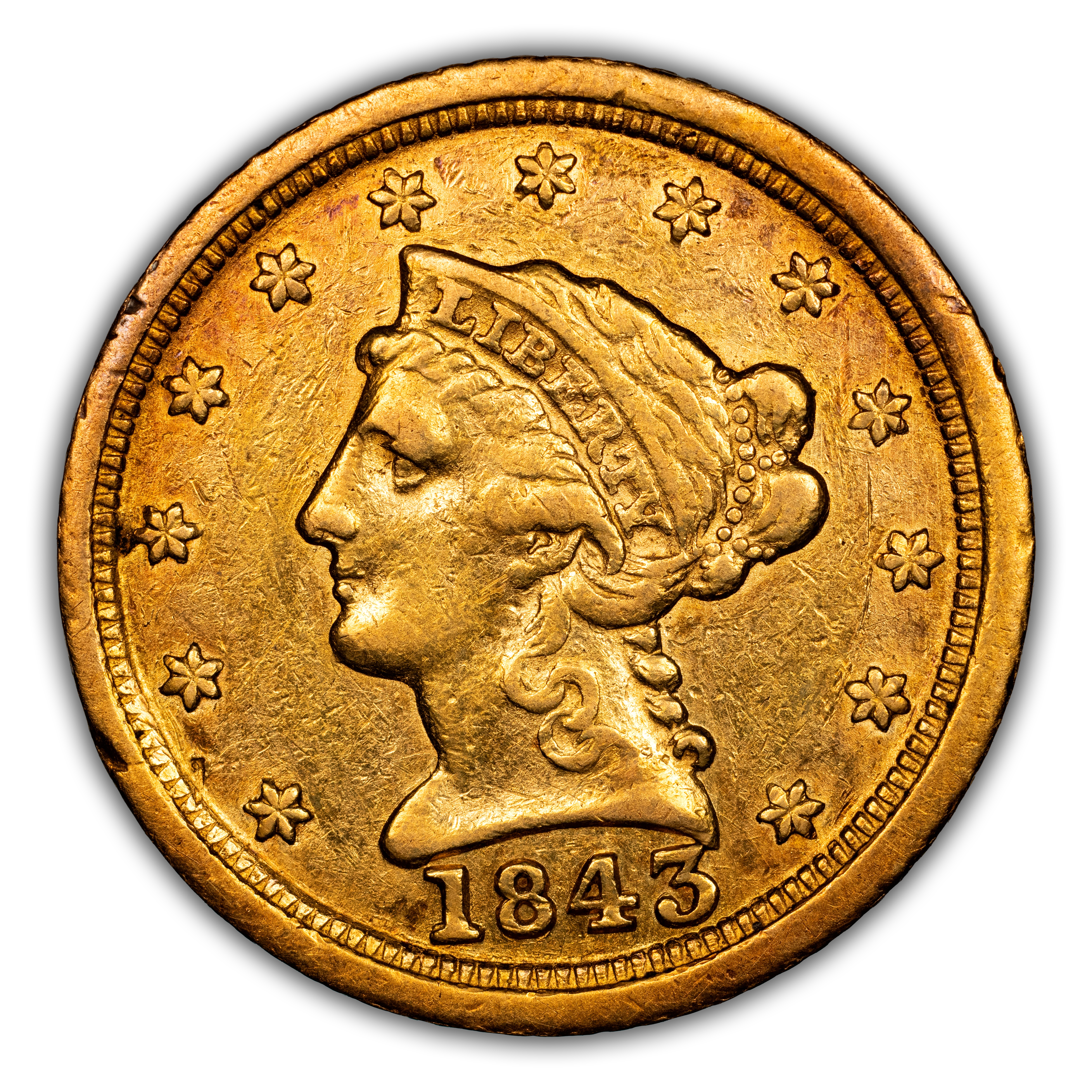 1843-C $2 1/2 PCGS AU50 (Large Date)
