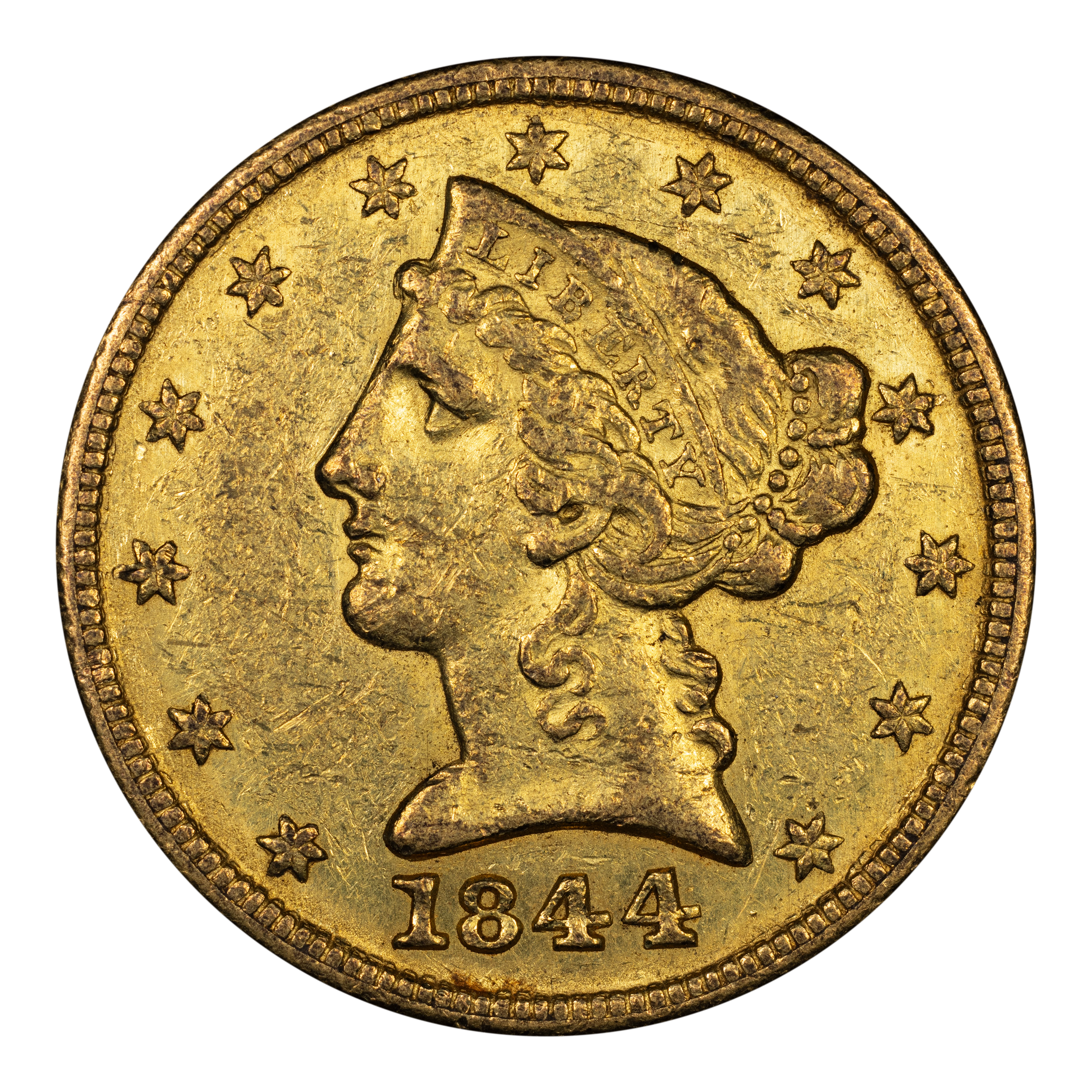 1844-C $5 NGC AU53 - Desirable Charlotte Mint Gold