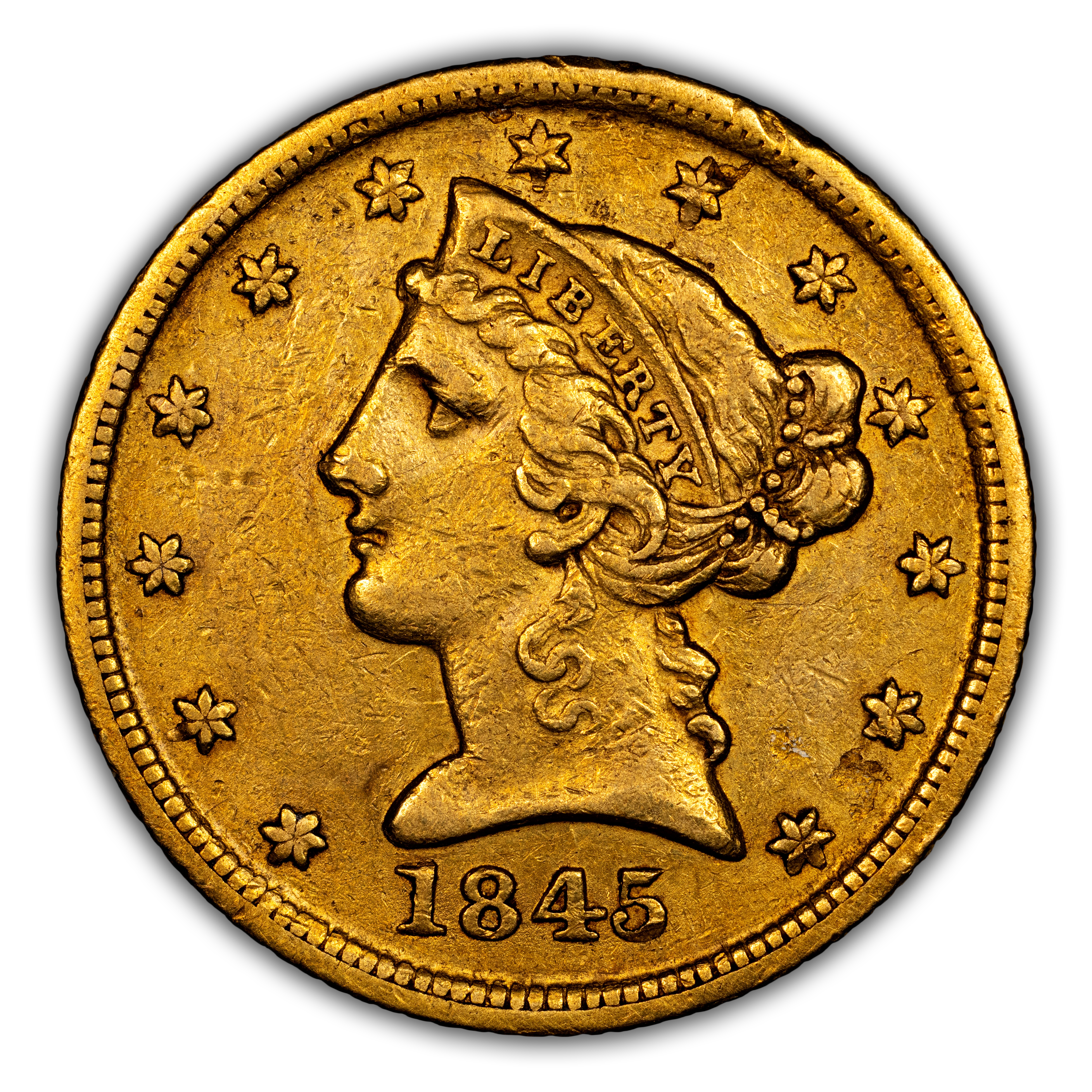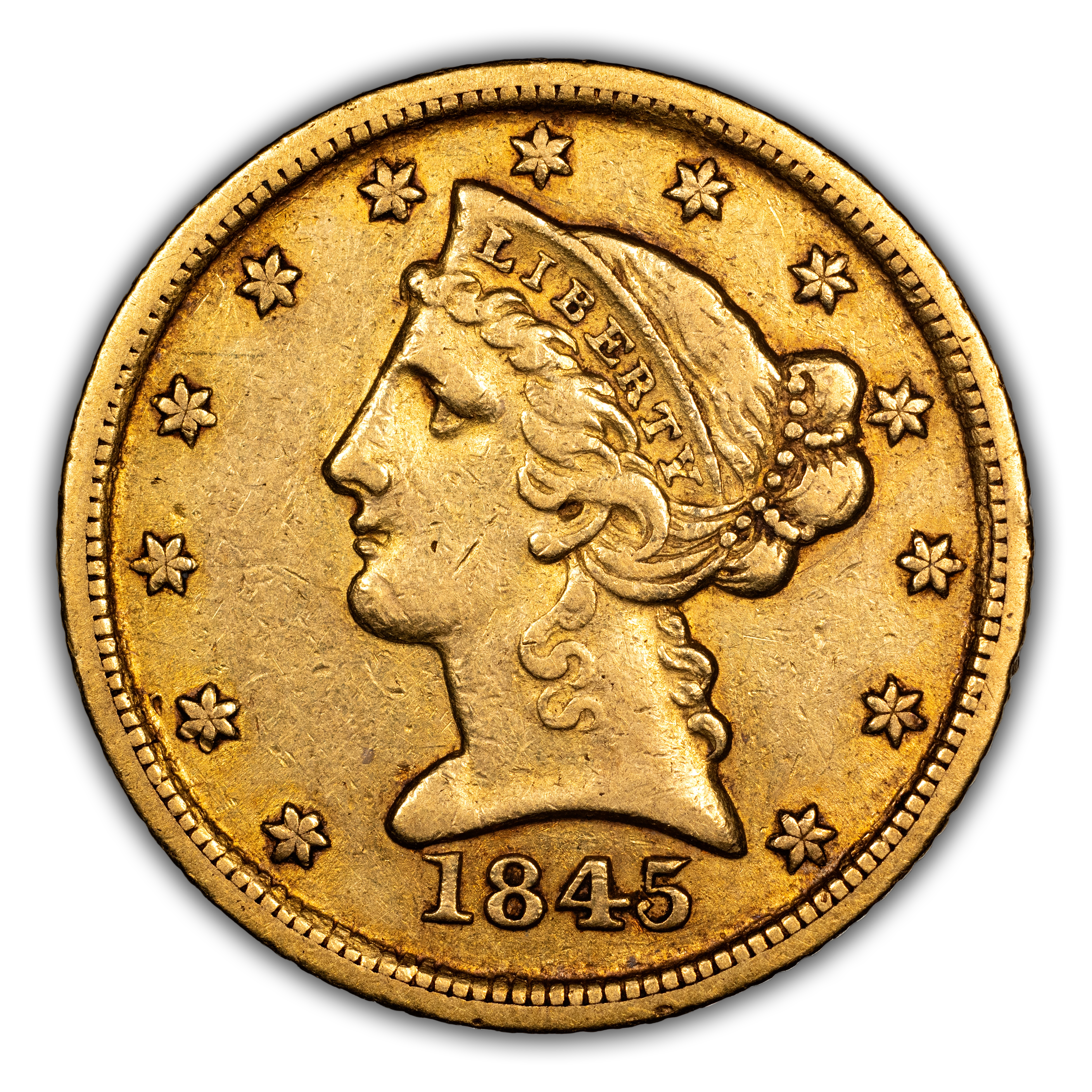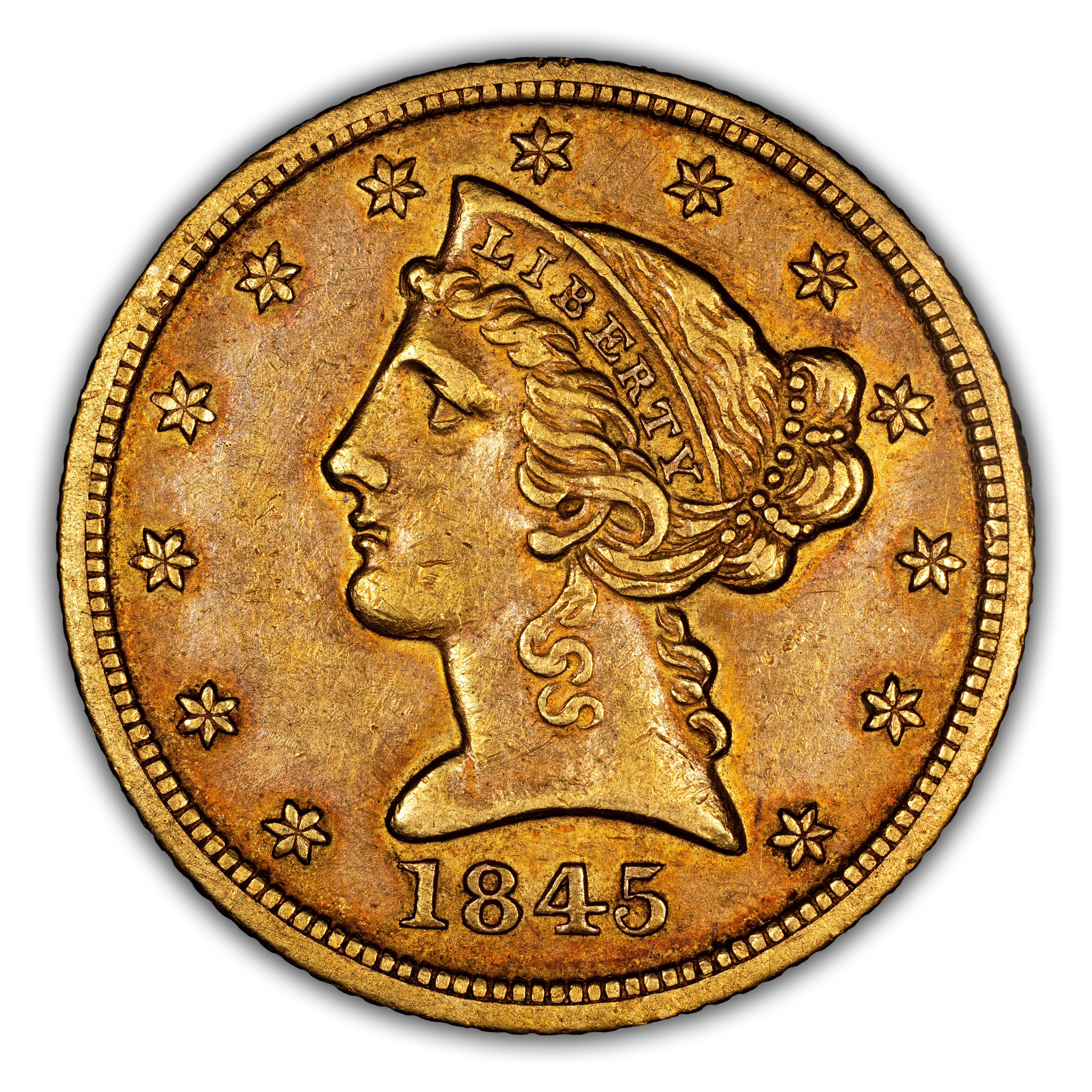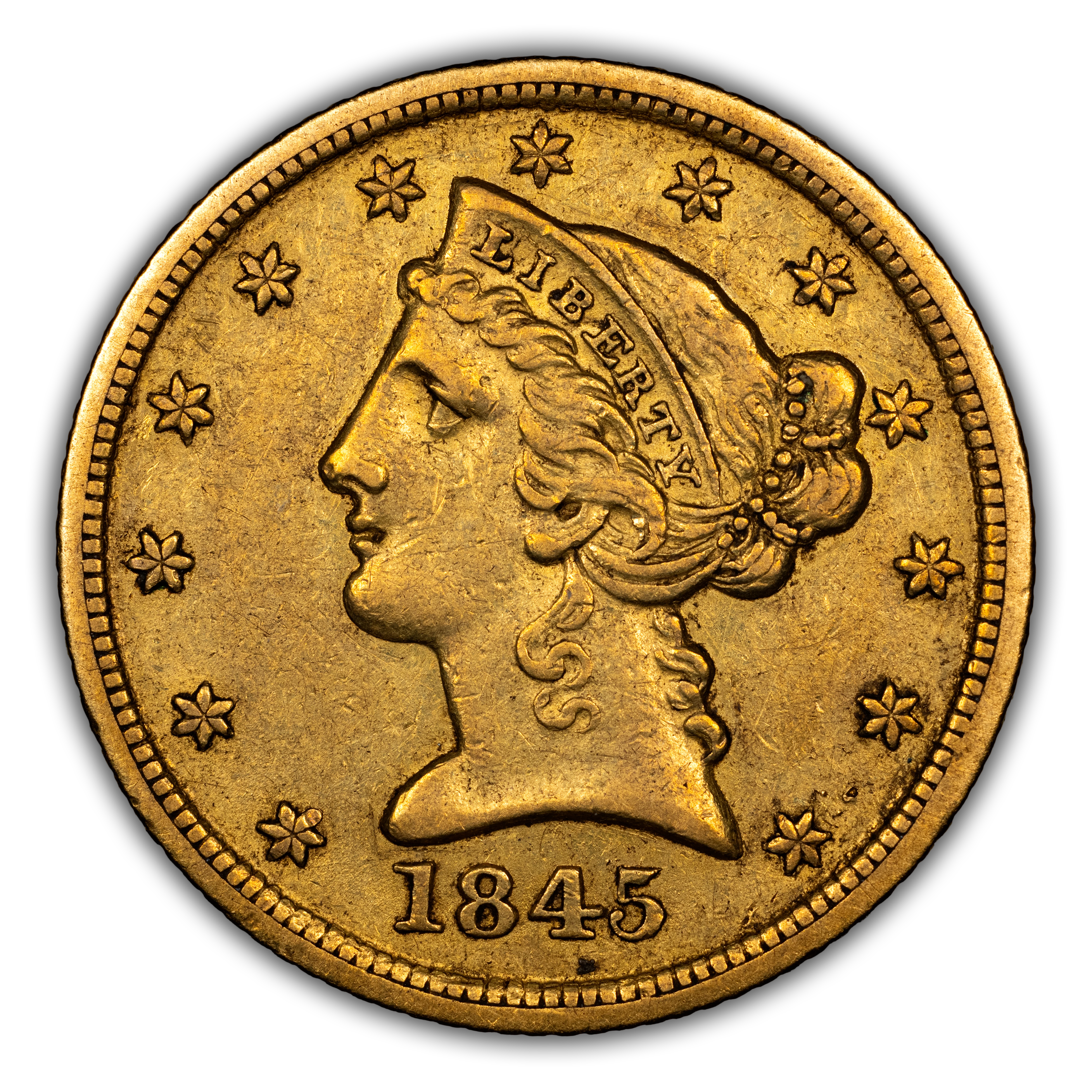 1845-D $5 NGC AU50 - Popular Dahlonega Mint Issue