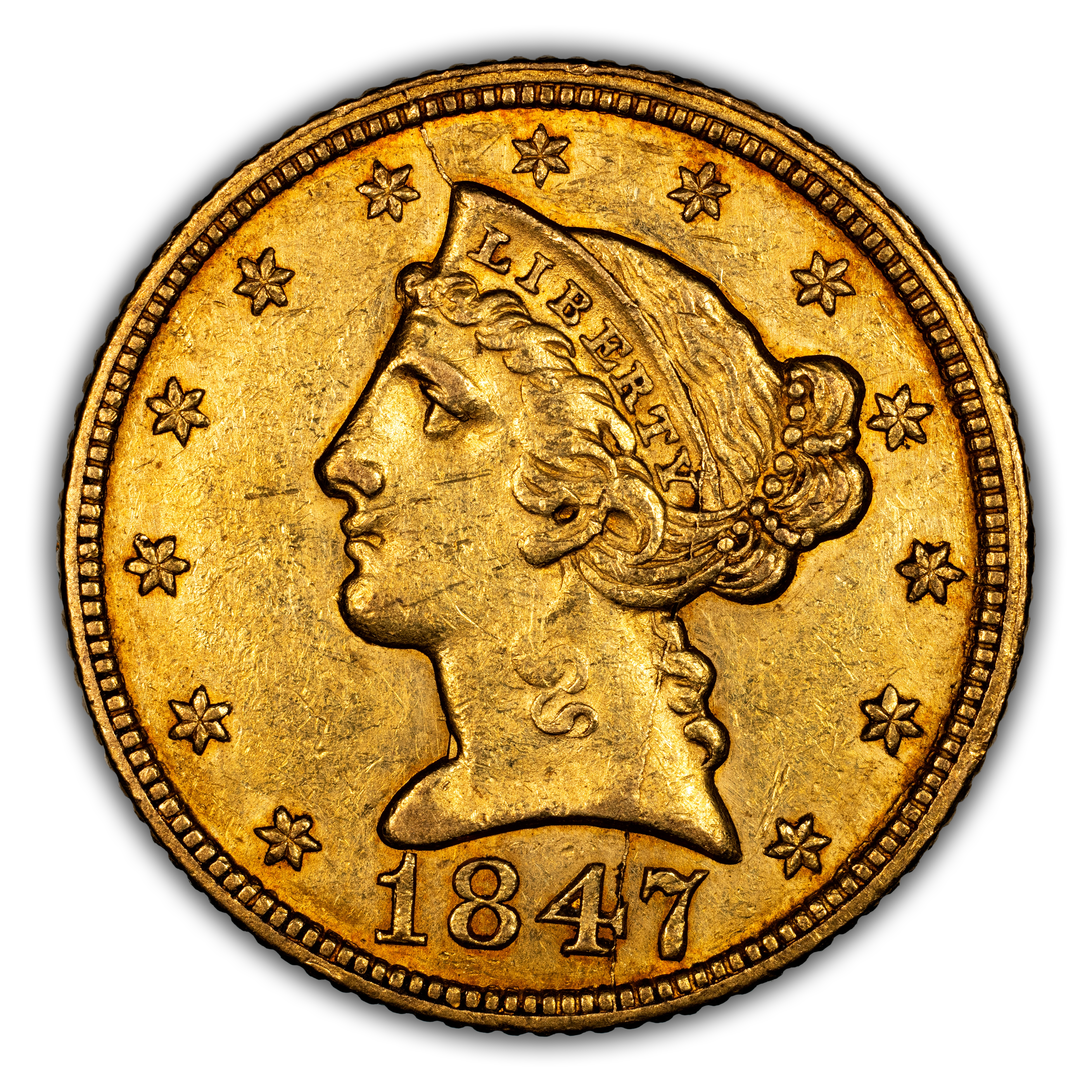 1847 $5 Misplaced Date, FS-302, AU58 NGC. NGC Census: (12/1). Mintage 915,981. ...