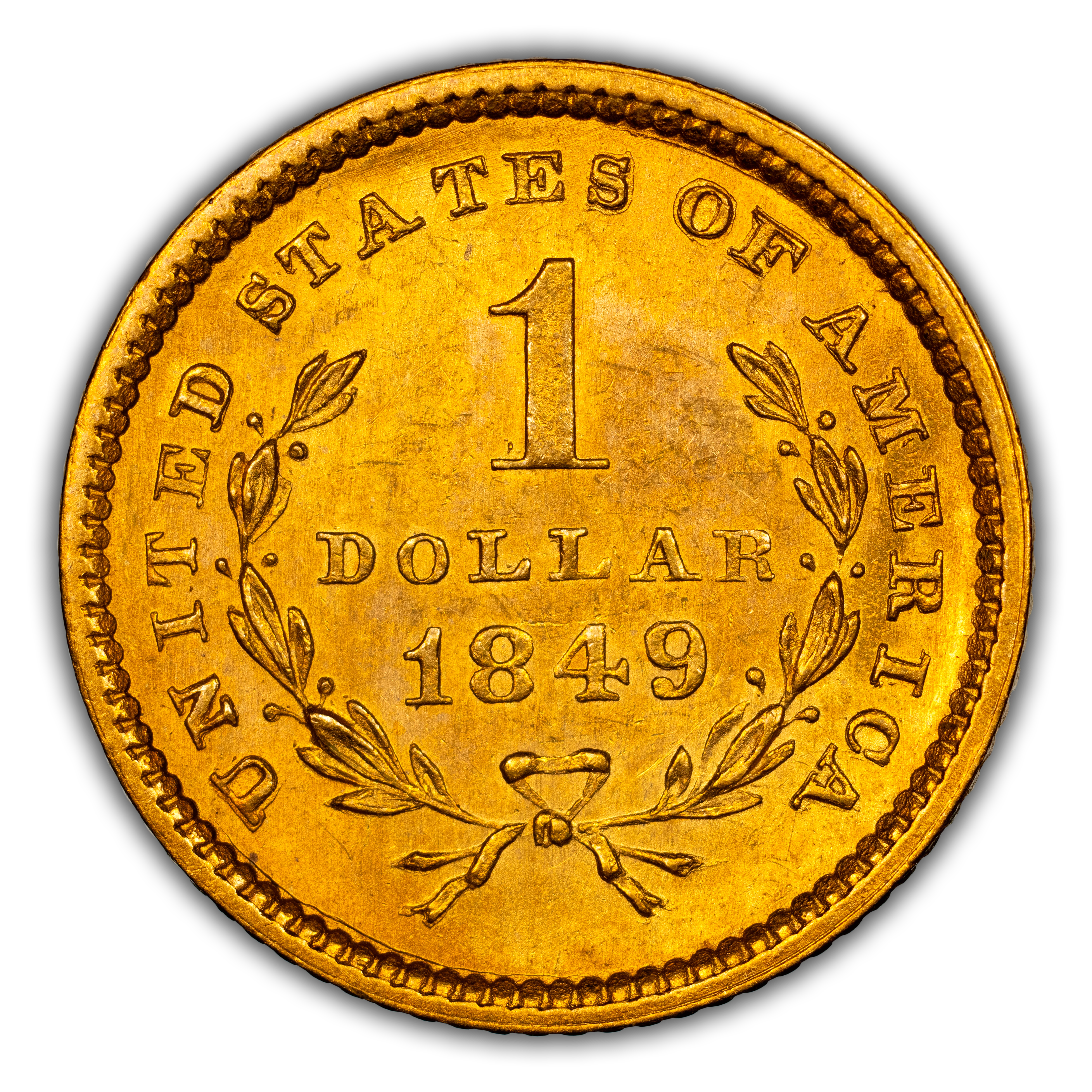 - 1849 G$1 Open Wreath, With L, Normal Stars, D-2 MS