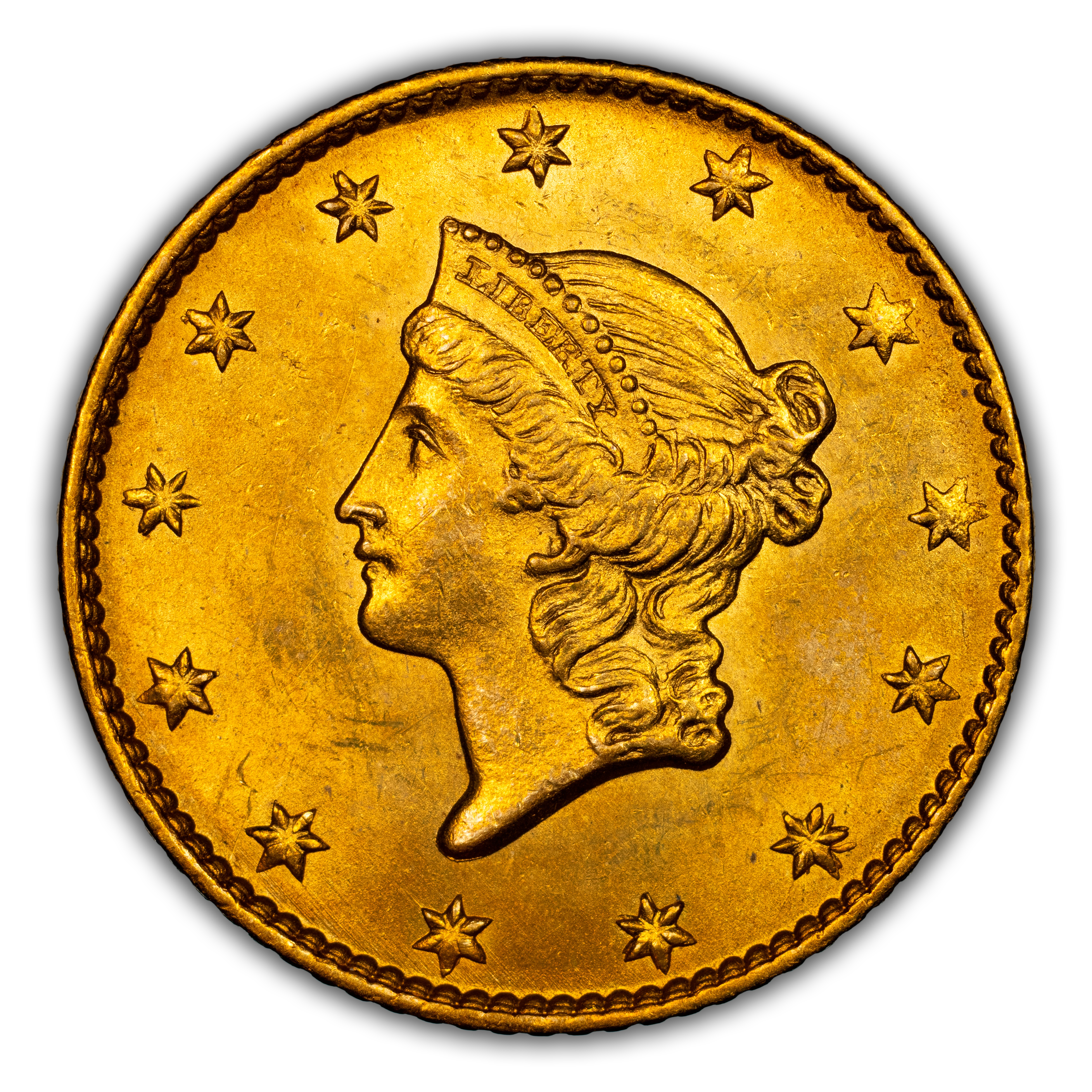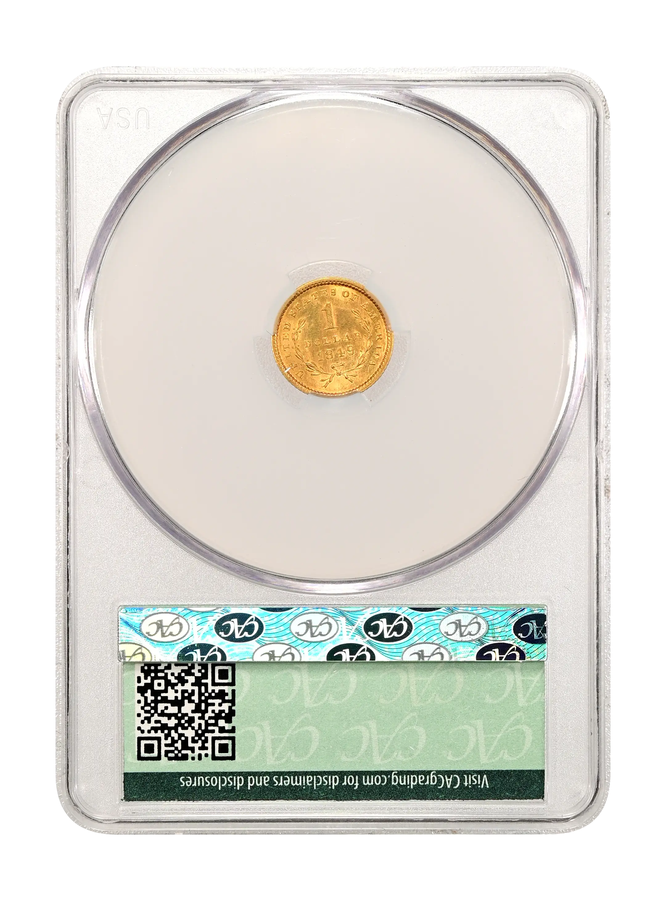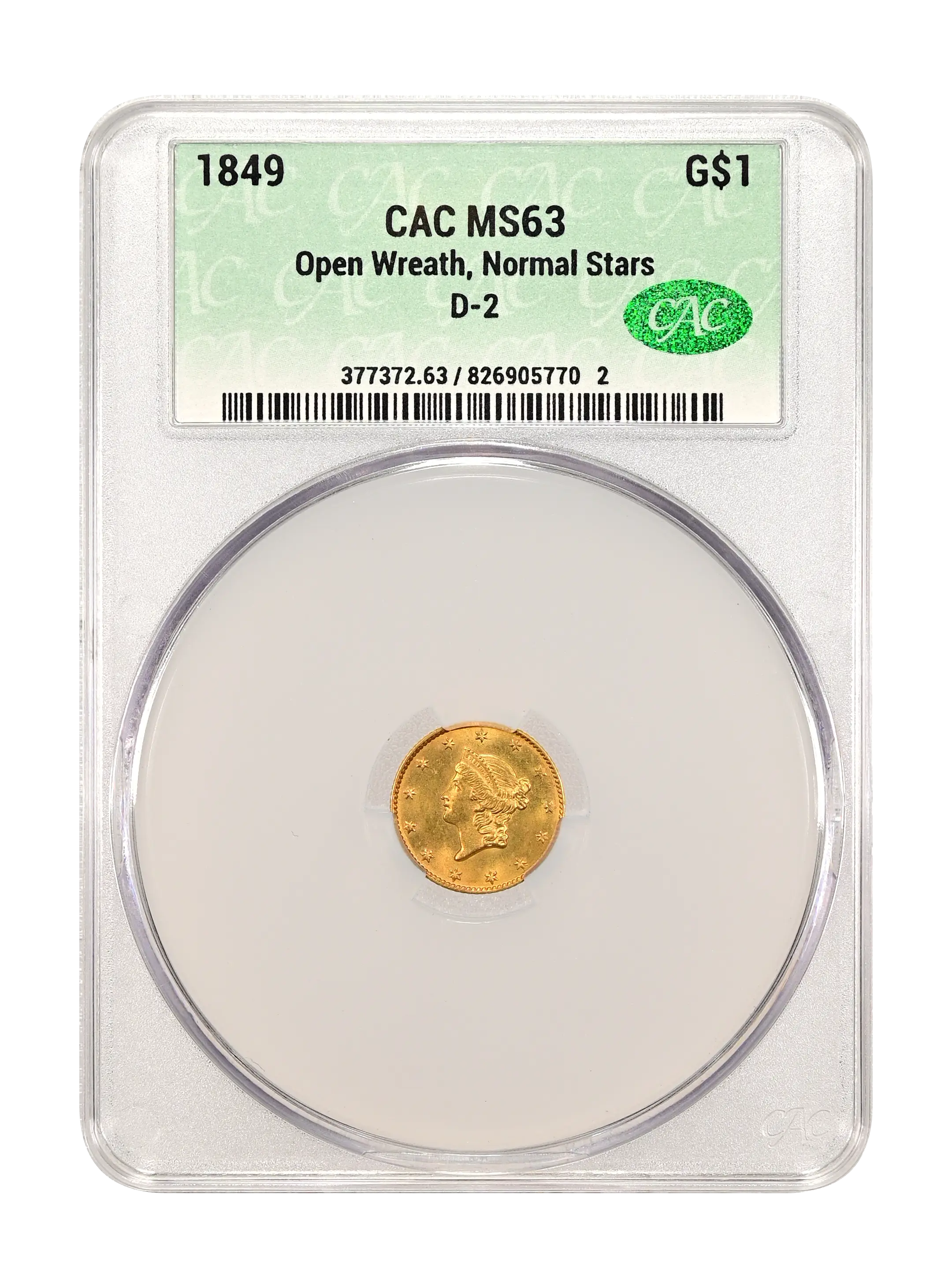 1849 Open Wreath, Normal Stars G$1 D-2 CAC MS63