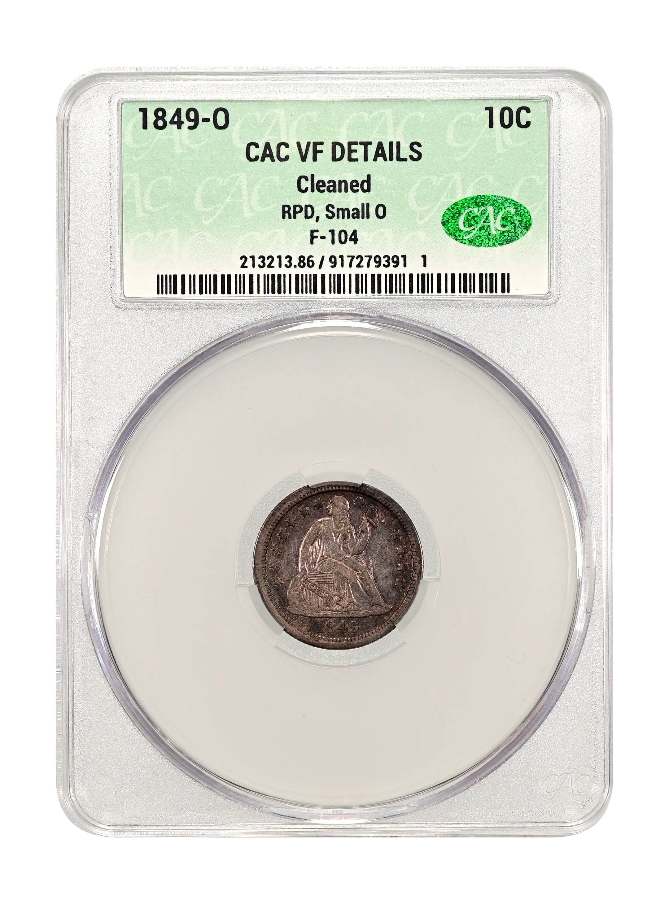 1849-O RPD, Small O 10c F-104 CAC VF DETAILS