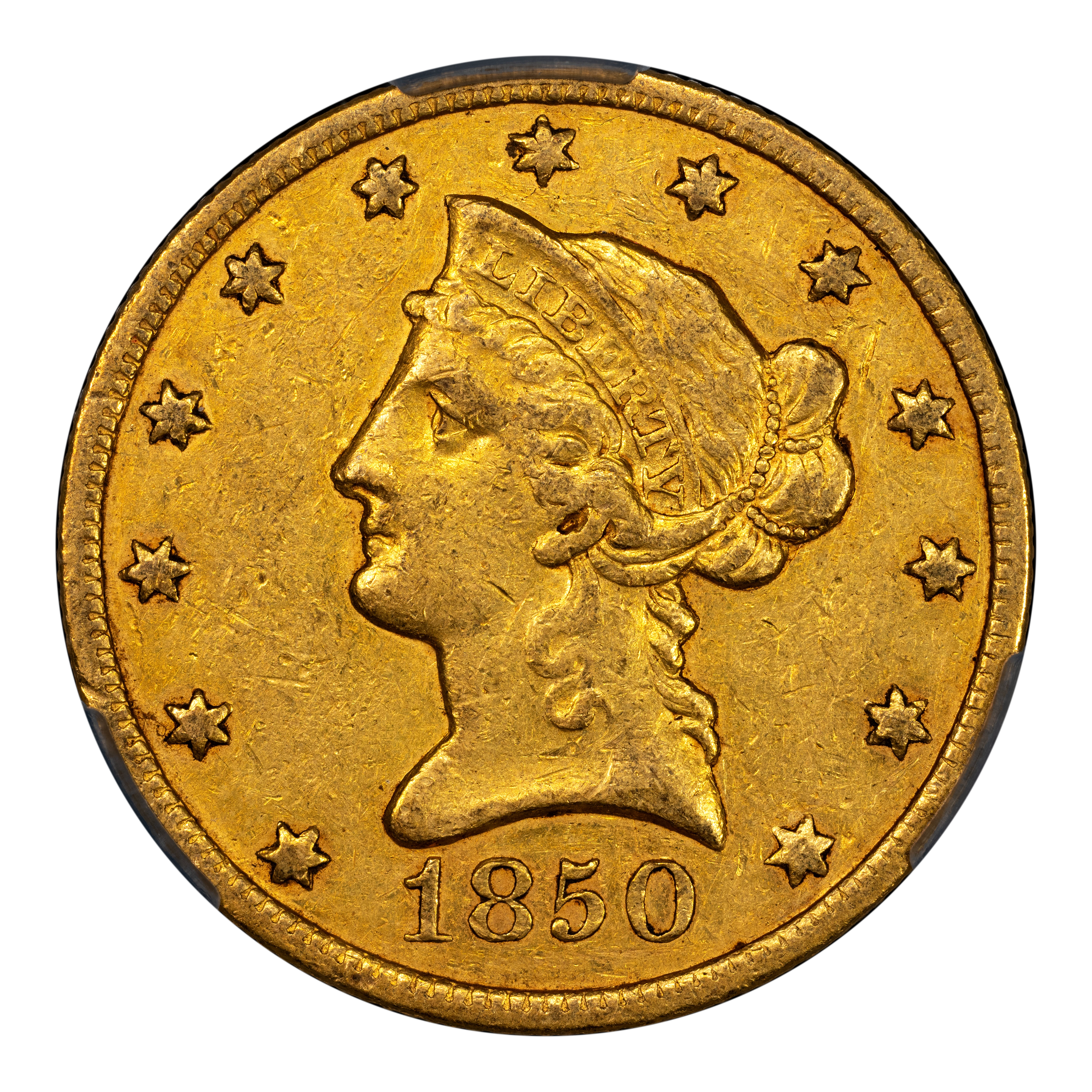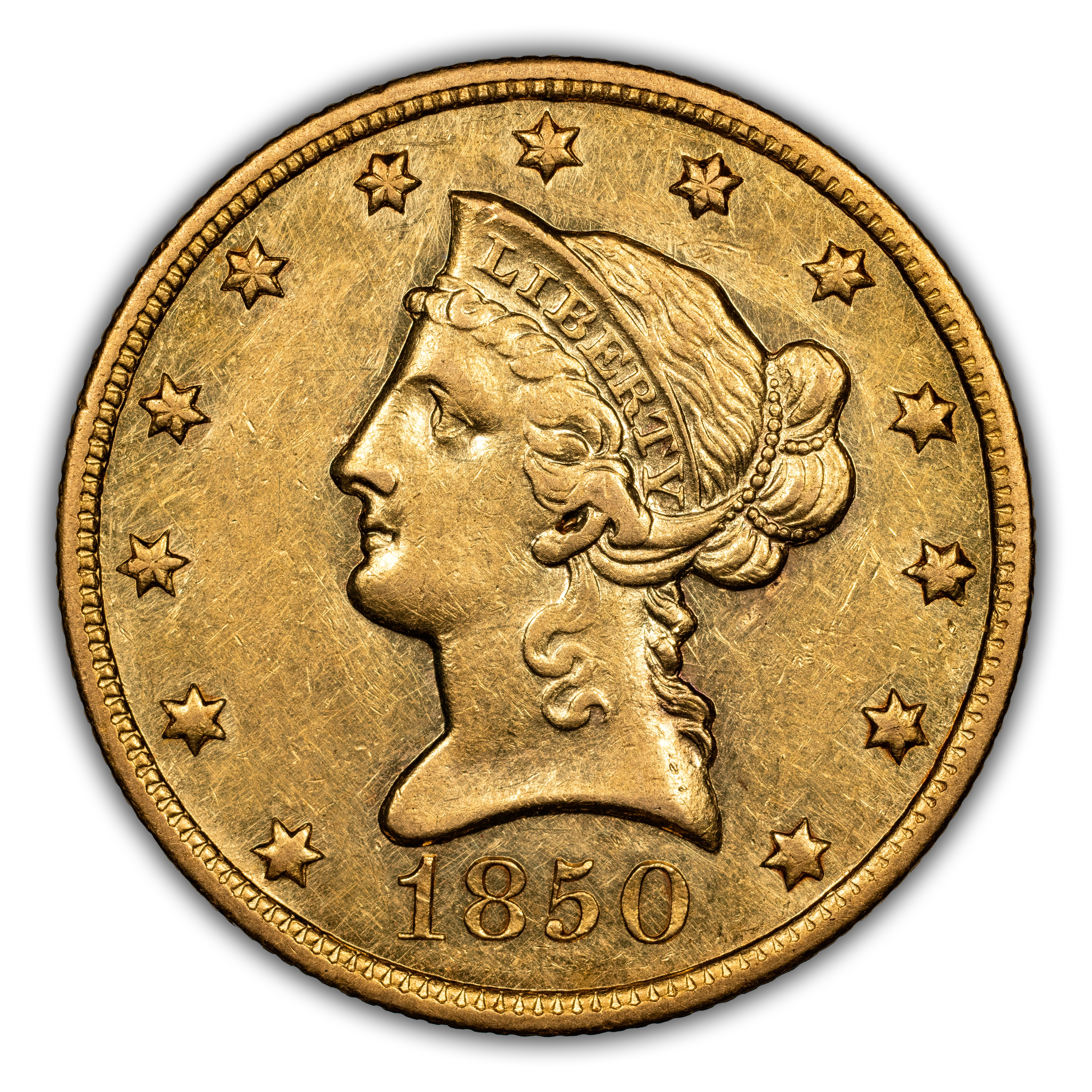 1850-O $10 DGS AU50 (Lightly Cleaned)