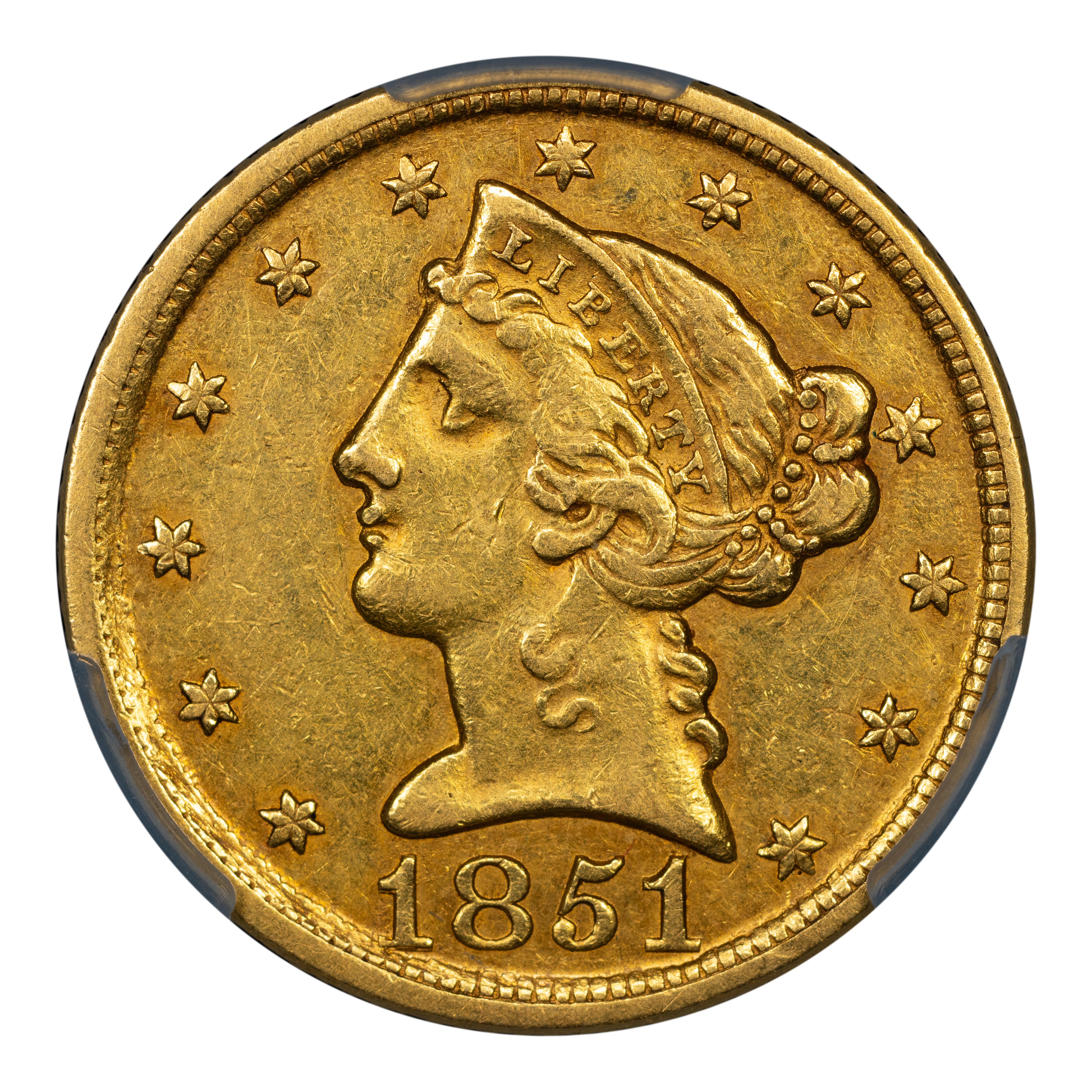1851-D $5 PCGS AU55