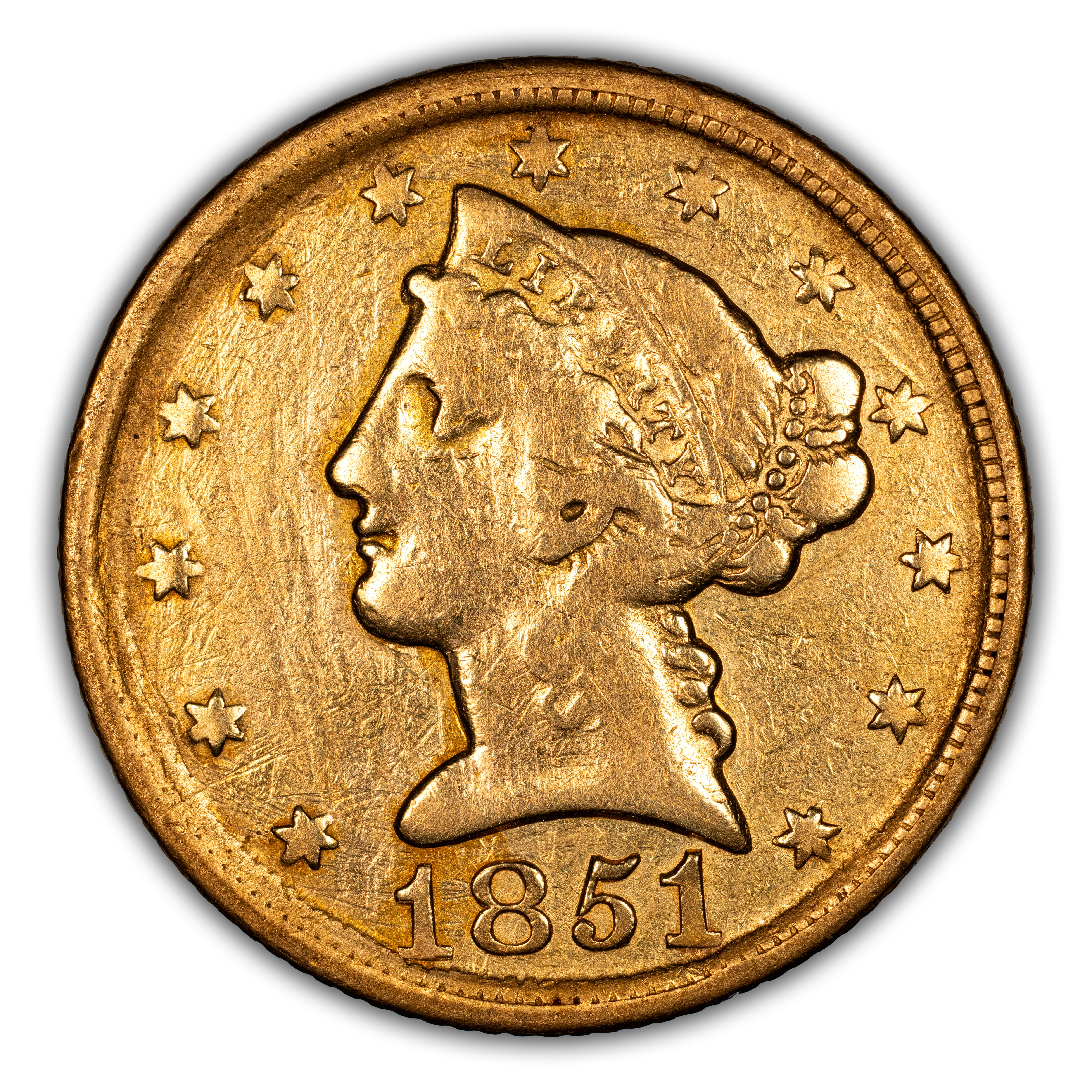 1851-D $5 CAC F DETAILS