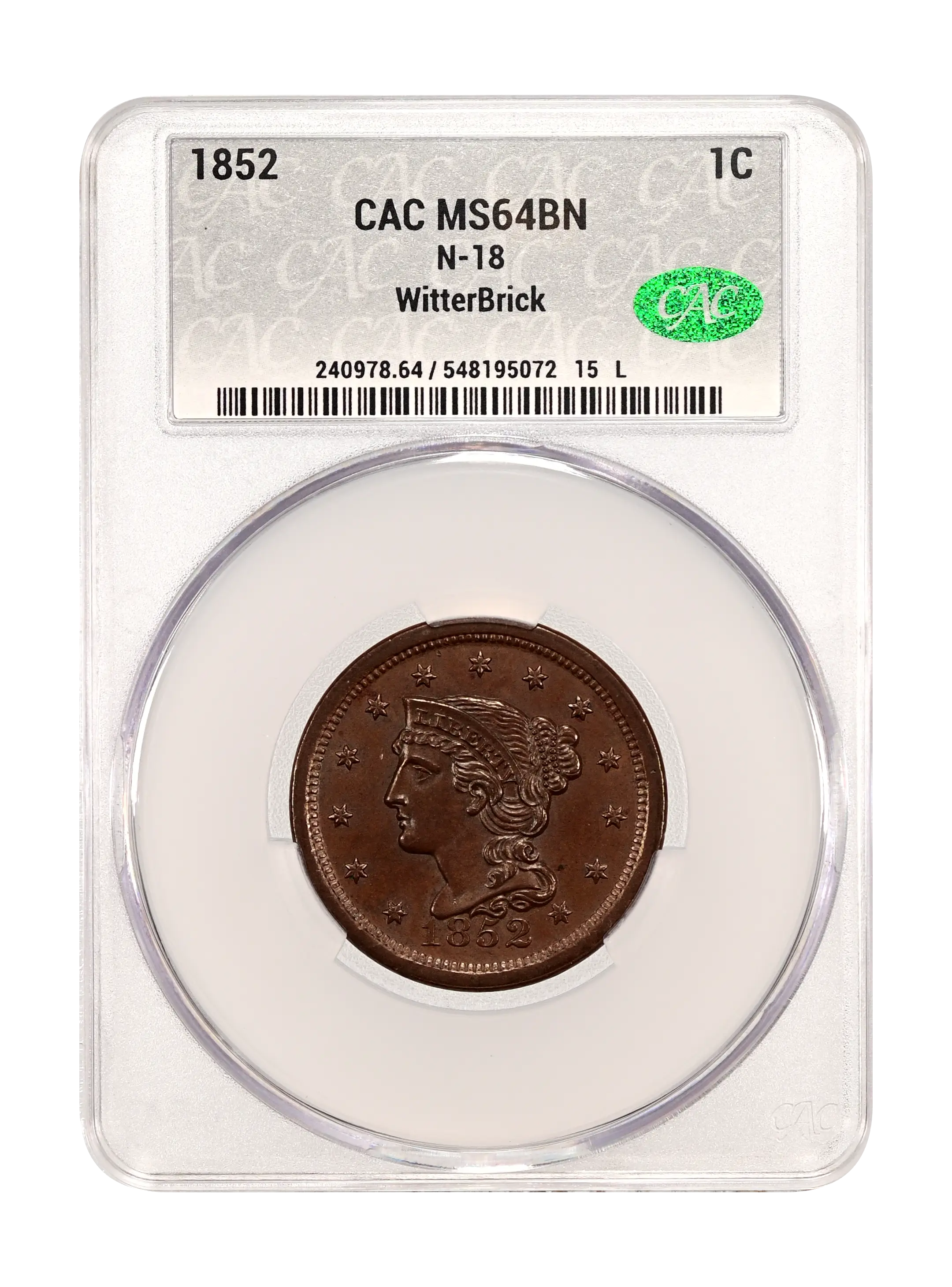 1852 N-18 1c BN CAC MS64BN
