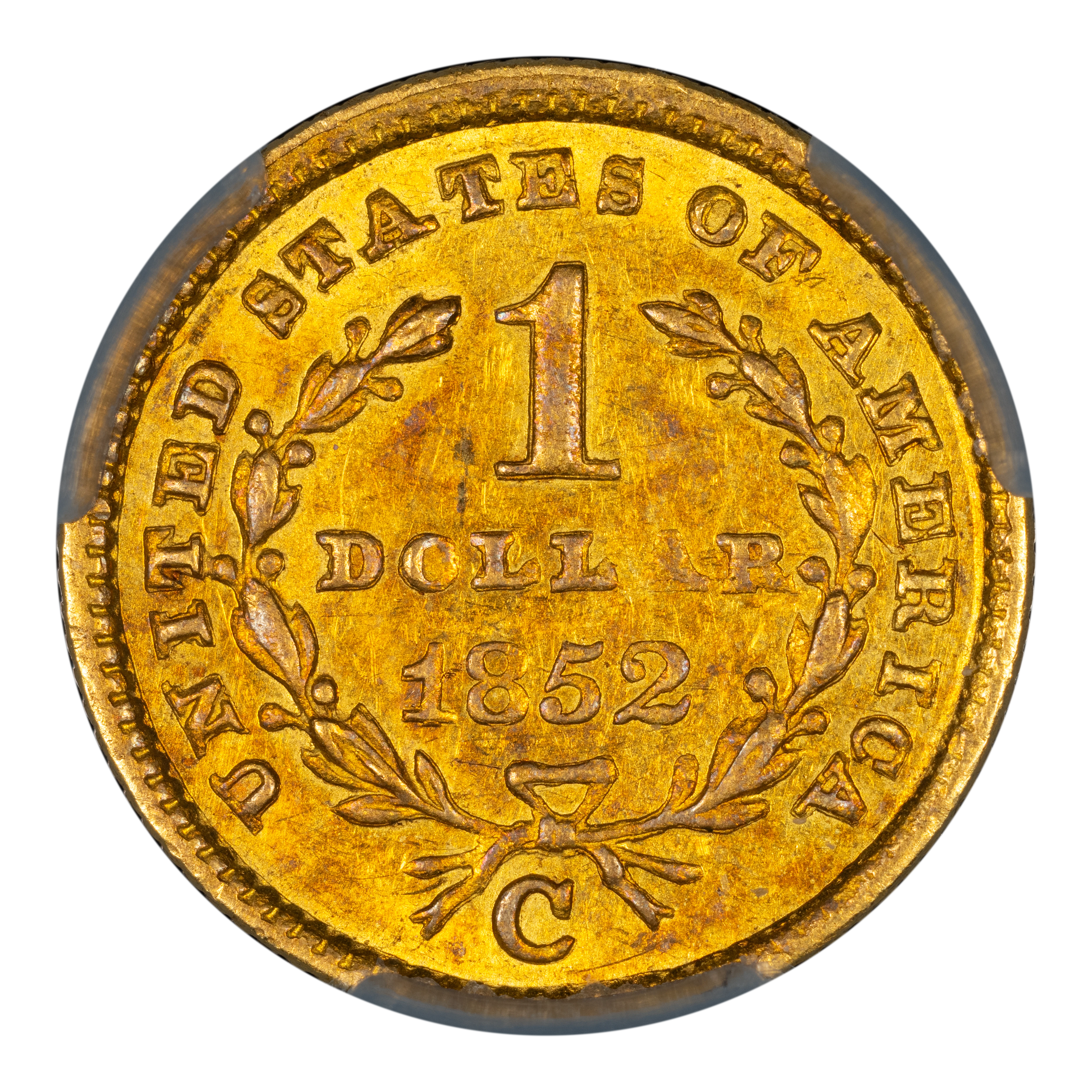 1852-C G$1 NGC MS64 - Wonderful, High Grade Charlotte Gold Dollar