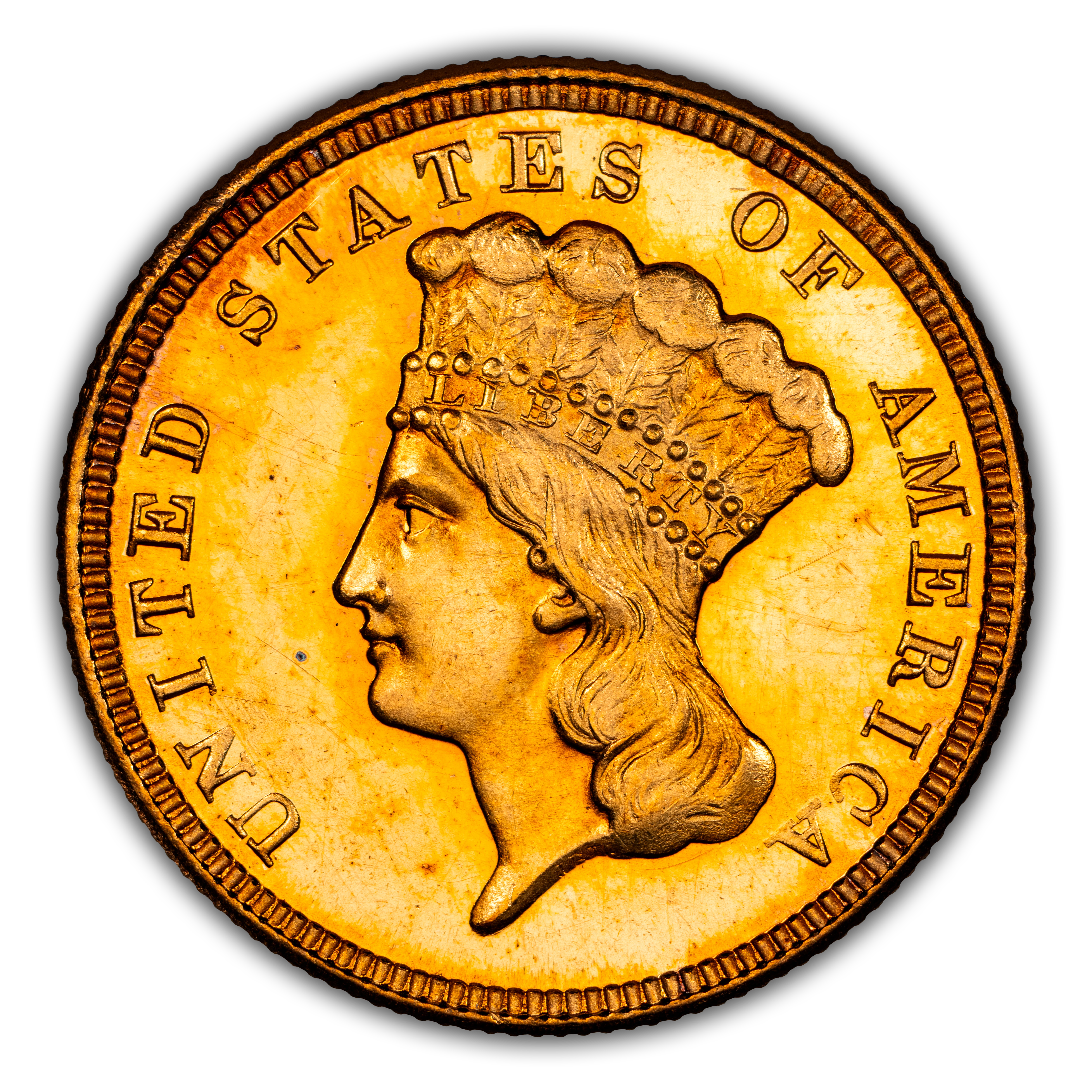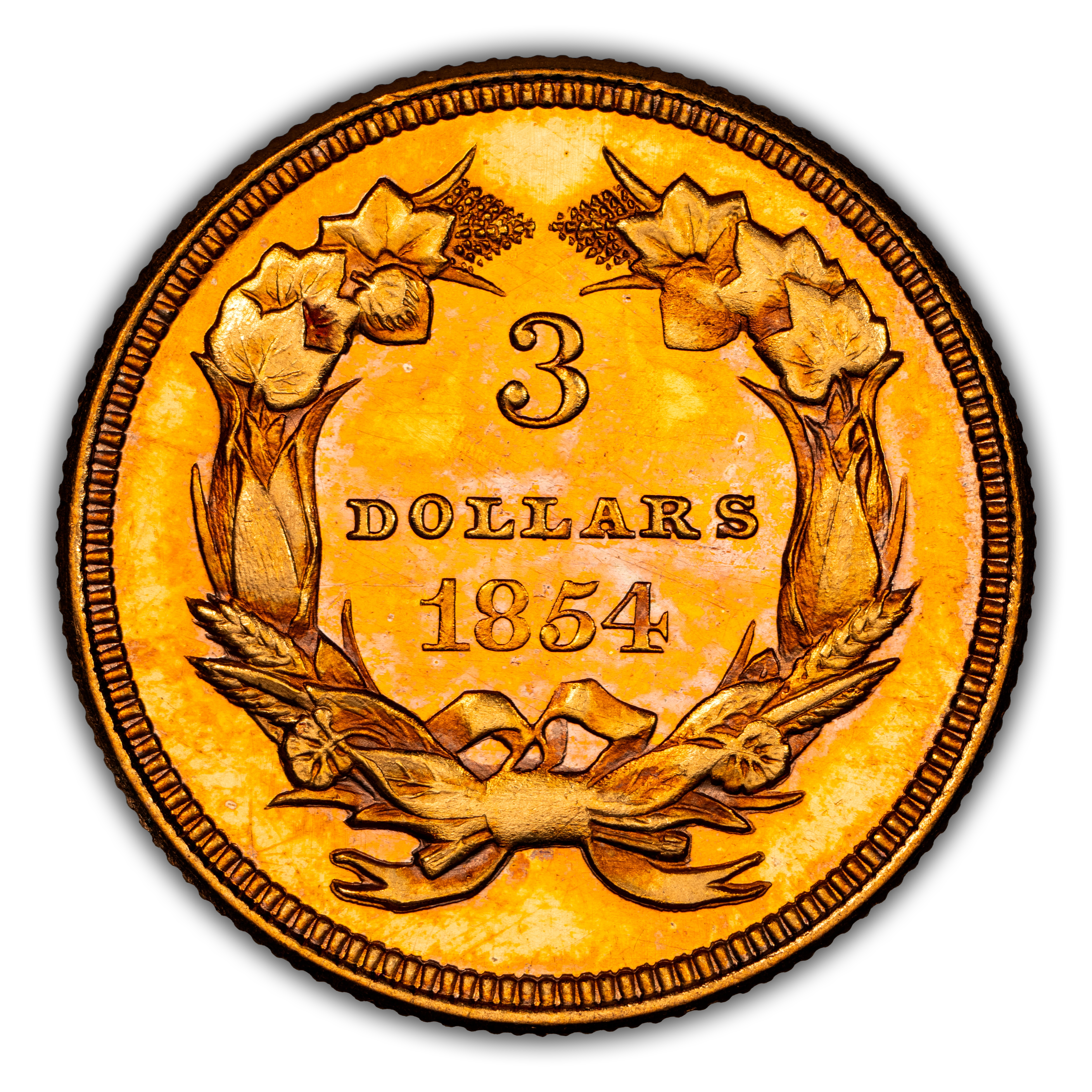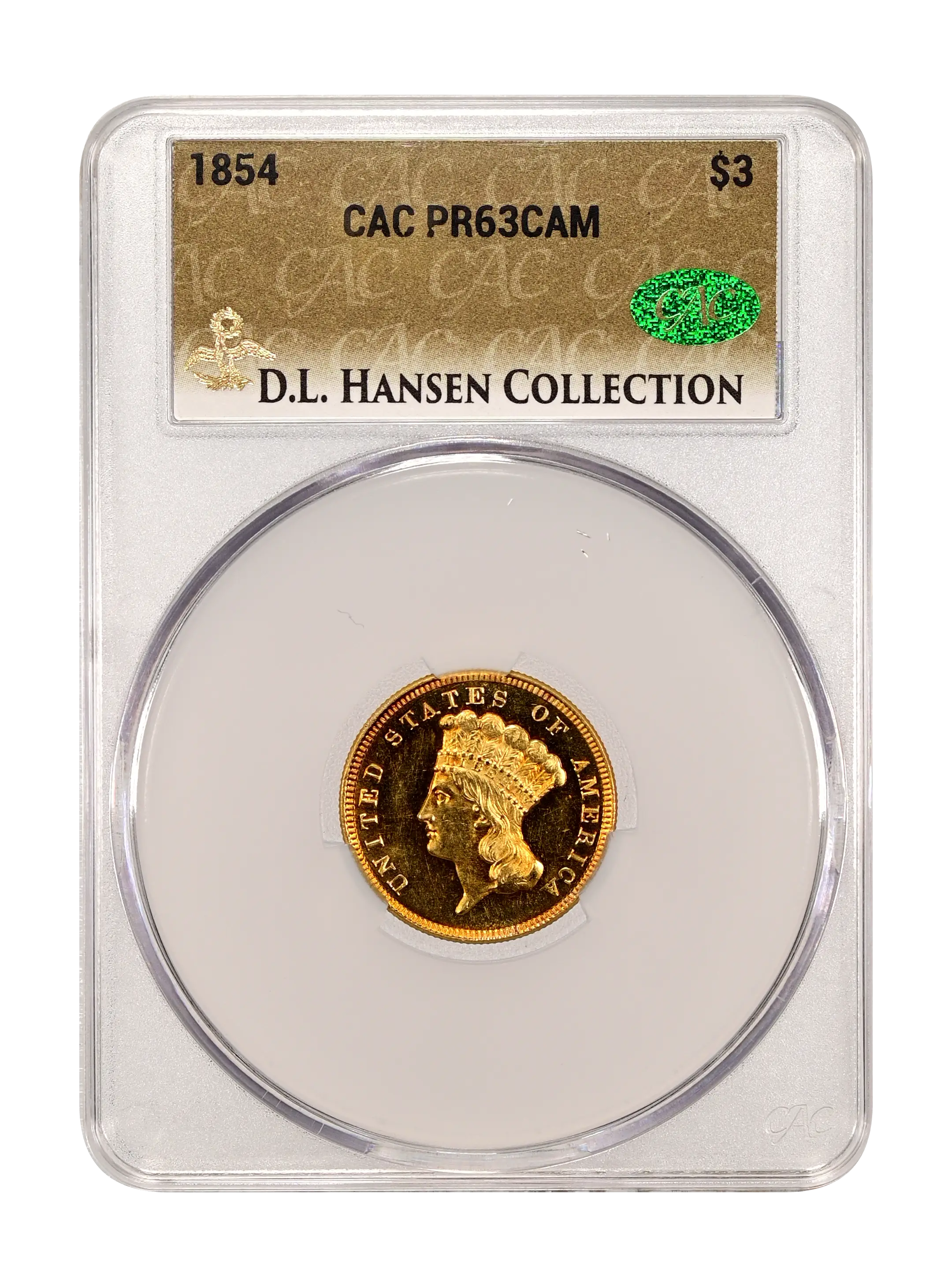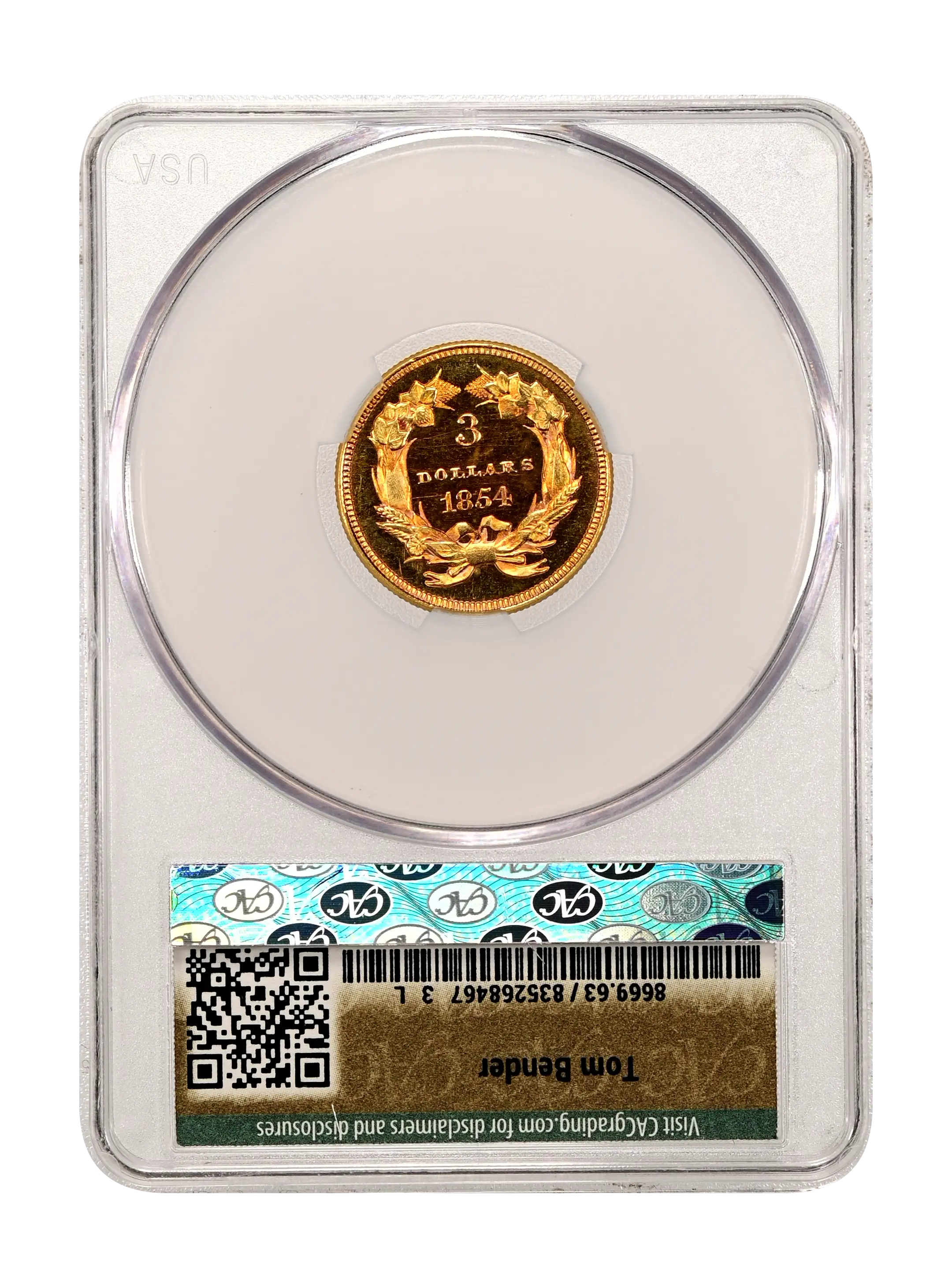1854 $3 PR64+ Cameo PCGS. CAC....