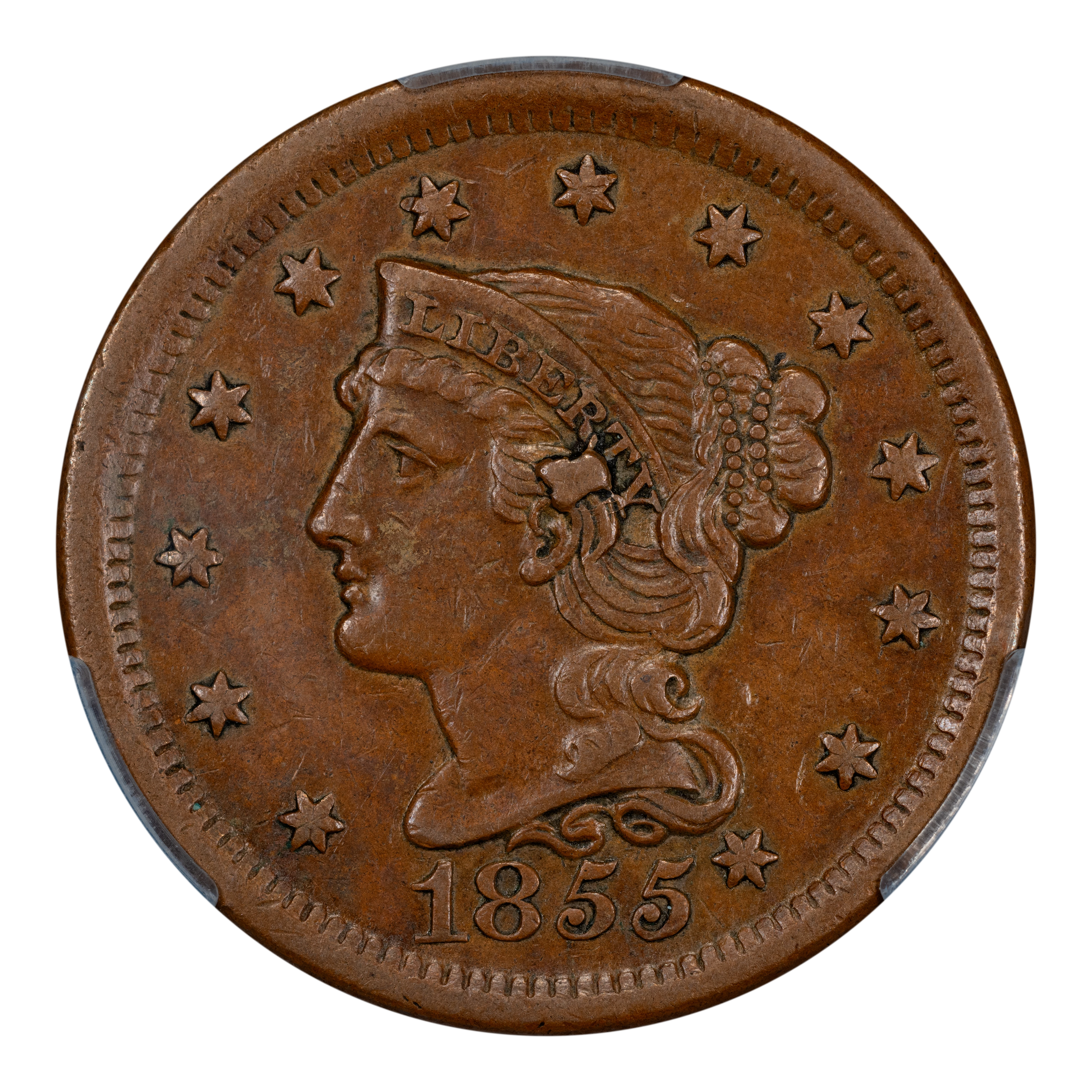 1855 1c PCGS AU53 BN (Knob Ear) - No Reserve!