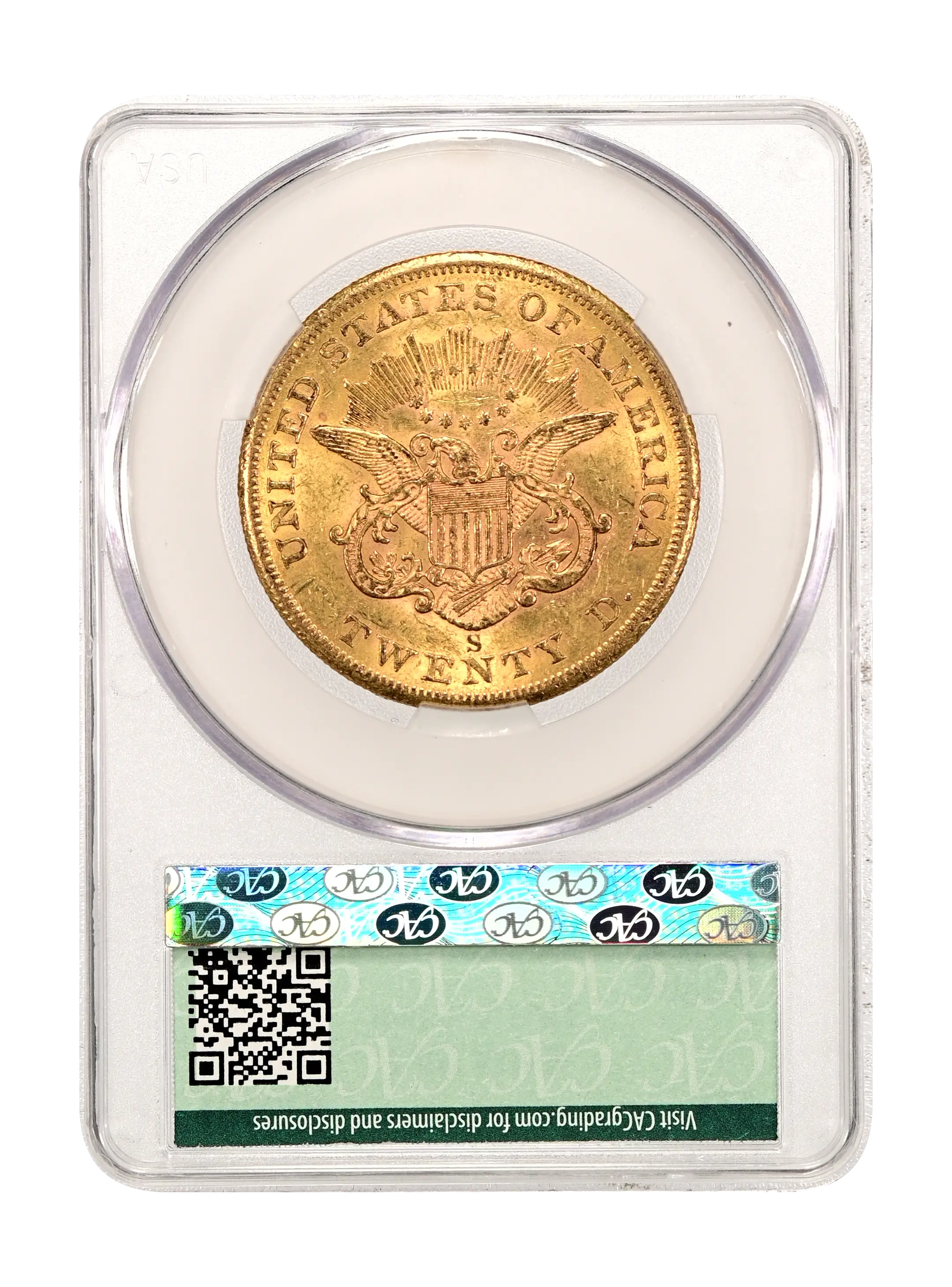 $20 1855-S PCGS MS63 CAC EX S.S. CENTRAL AMERICA