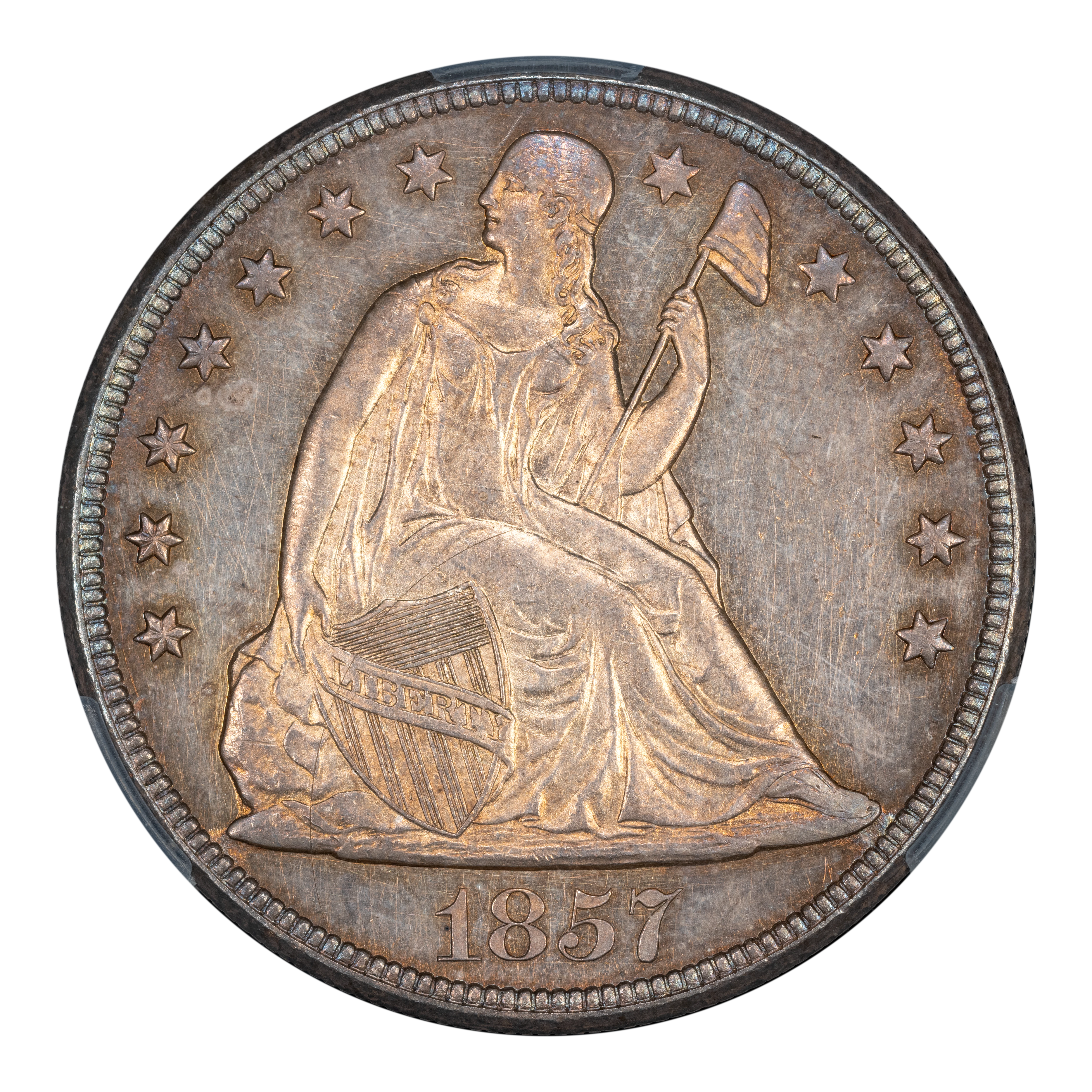 1857 Liberty Seated Silver Dollar. OC-2. Rarity-3. MS-62 PL (PCGS). CAC.