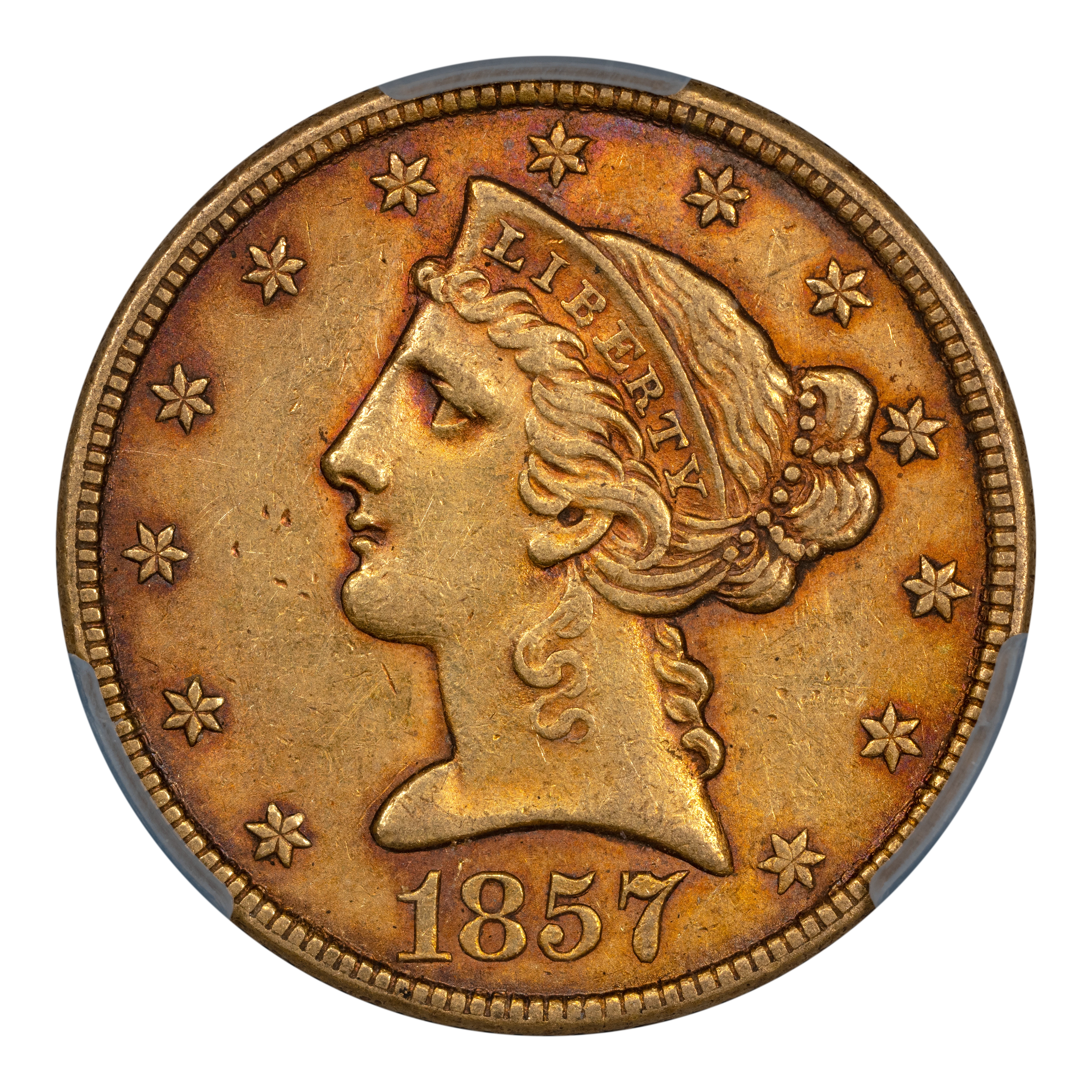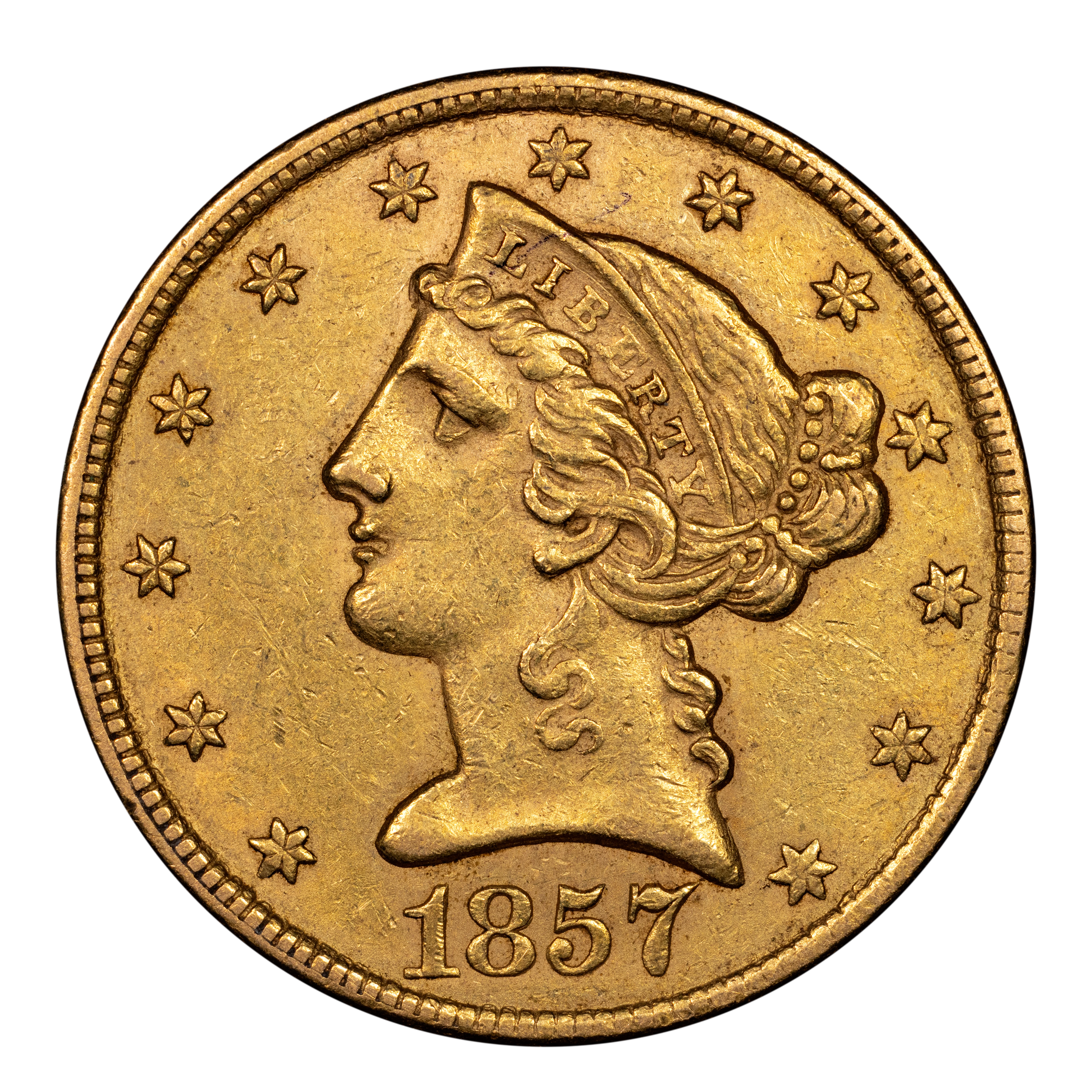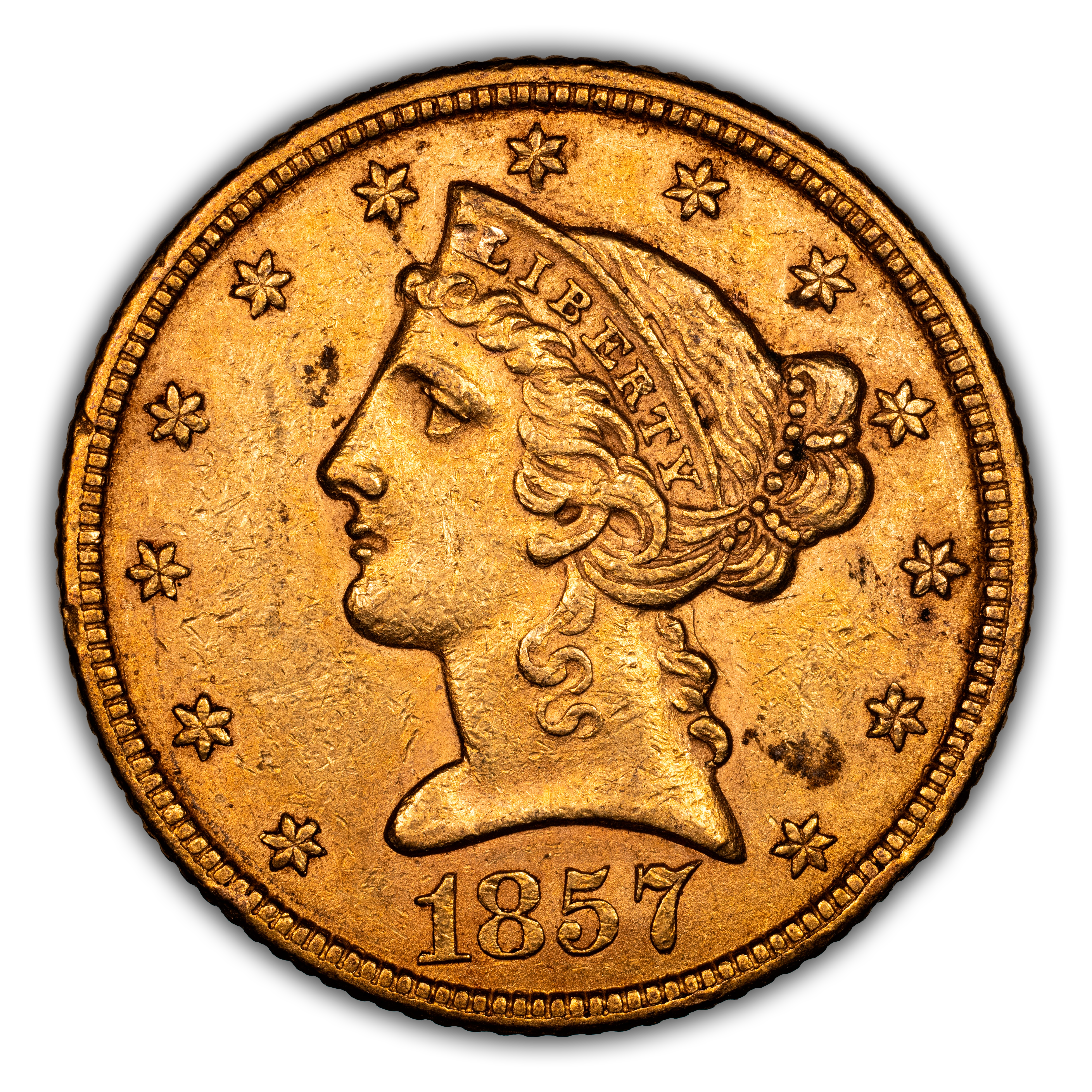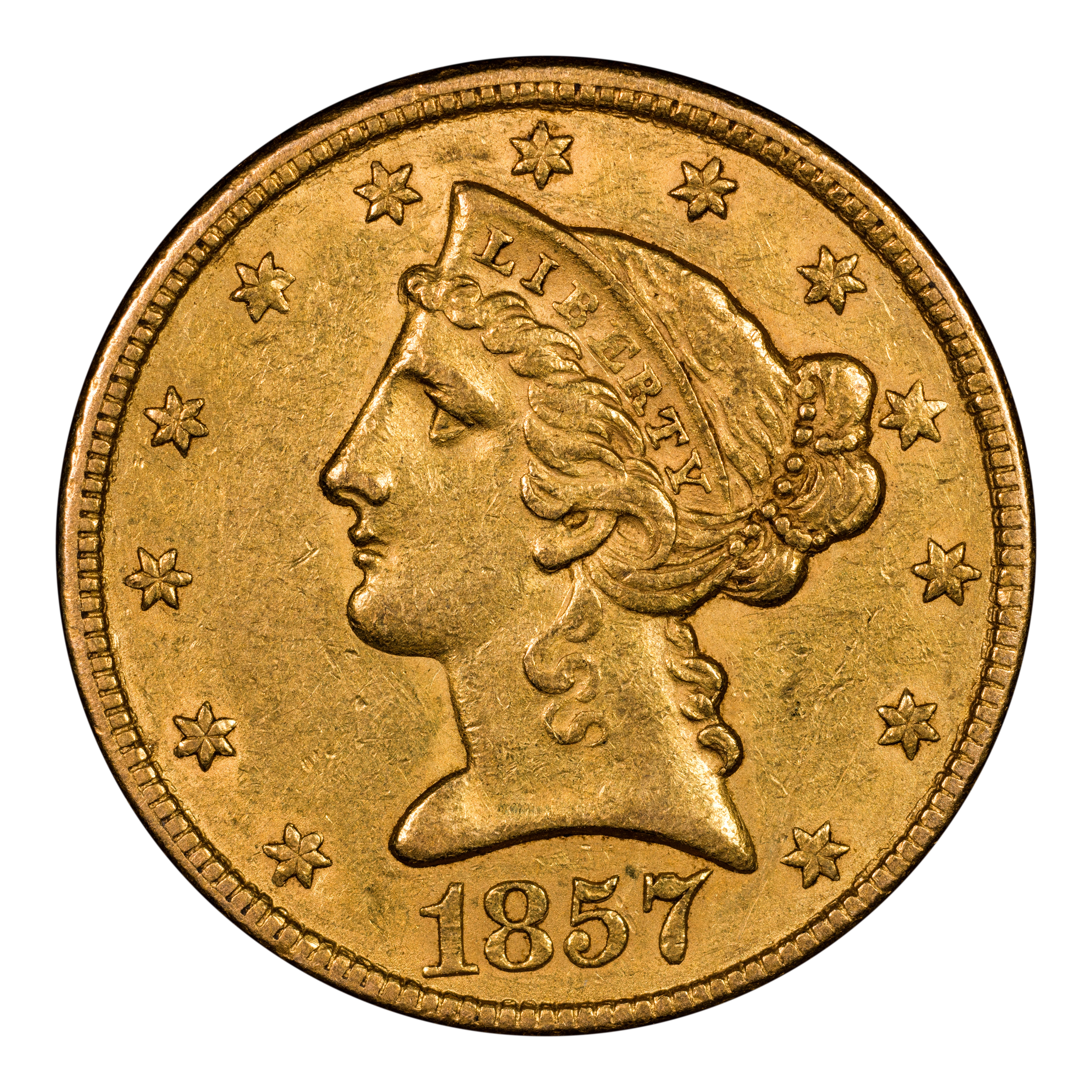 Reverse: Heraldic eagle holding arrows and branch in its claws is centered in the design with the words UNITED STATES OF AMERICA * FIVE D. around the periphery. Mintmark (if any) is located under the eagle's claws.