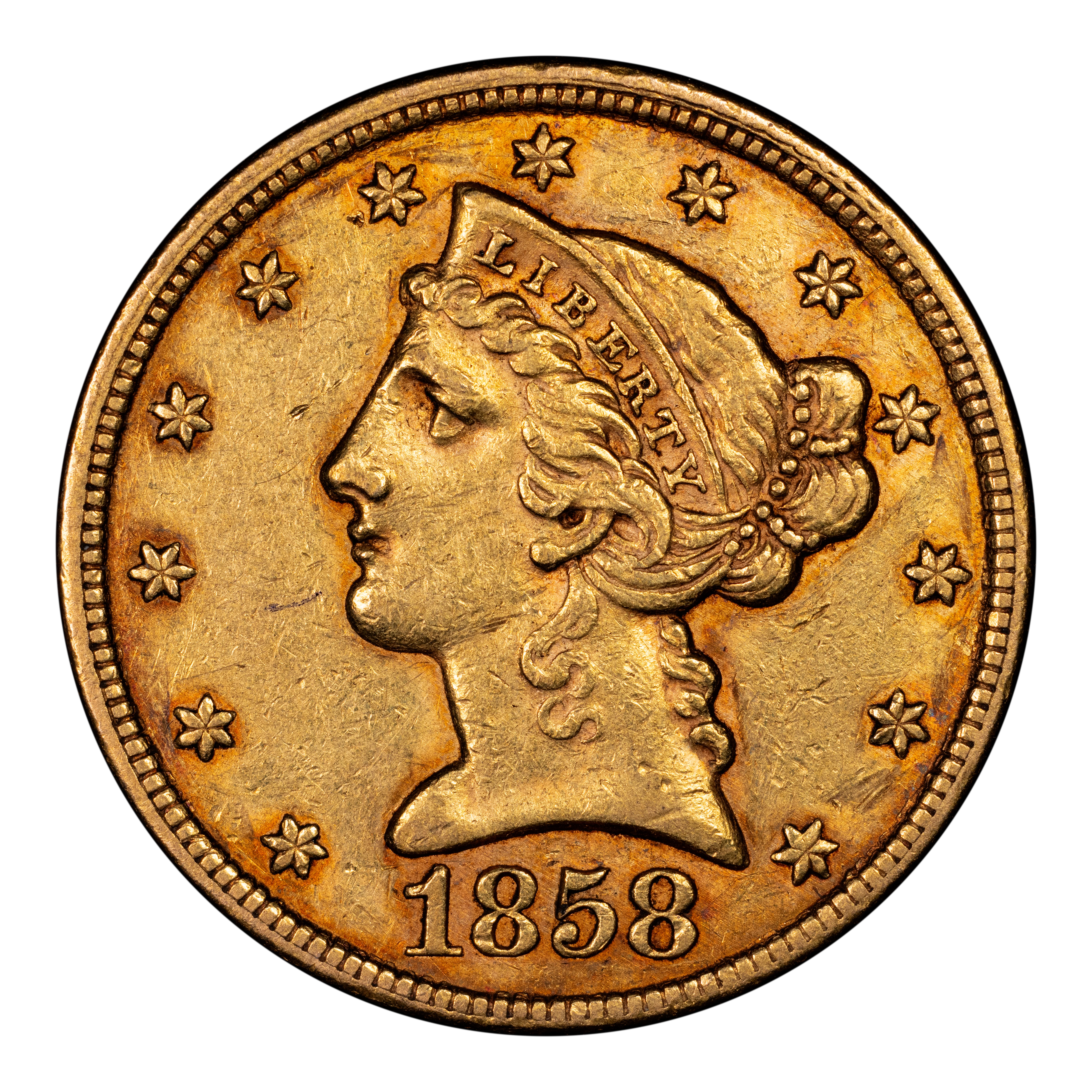 1858 Liberty Head Half Eagle. MS-66 (PCGS). CMQ.
