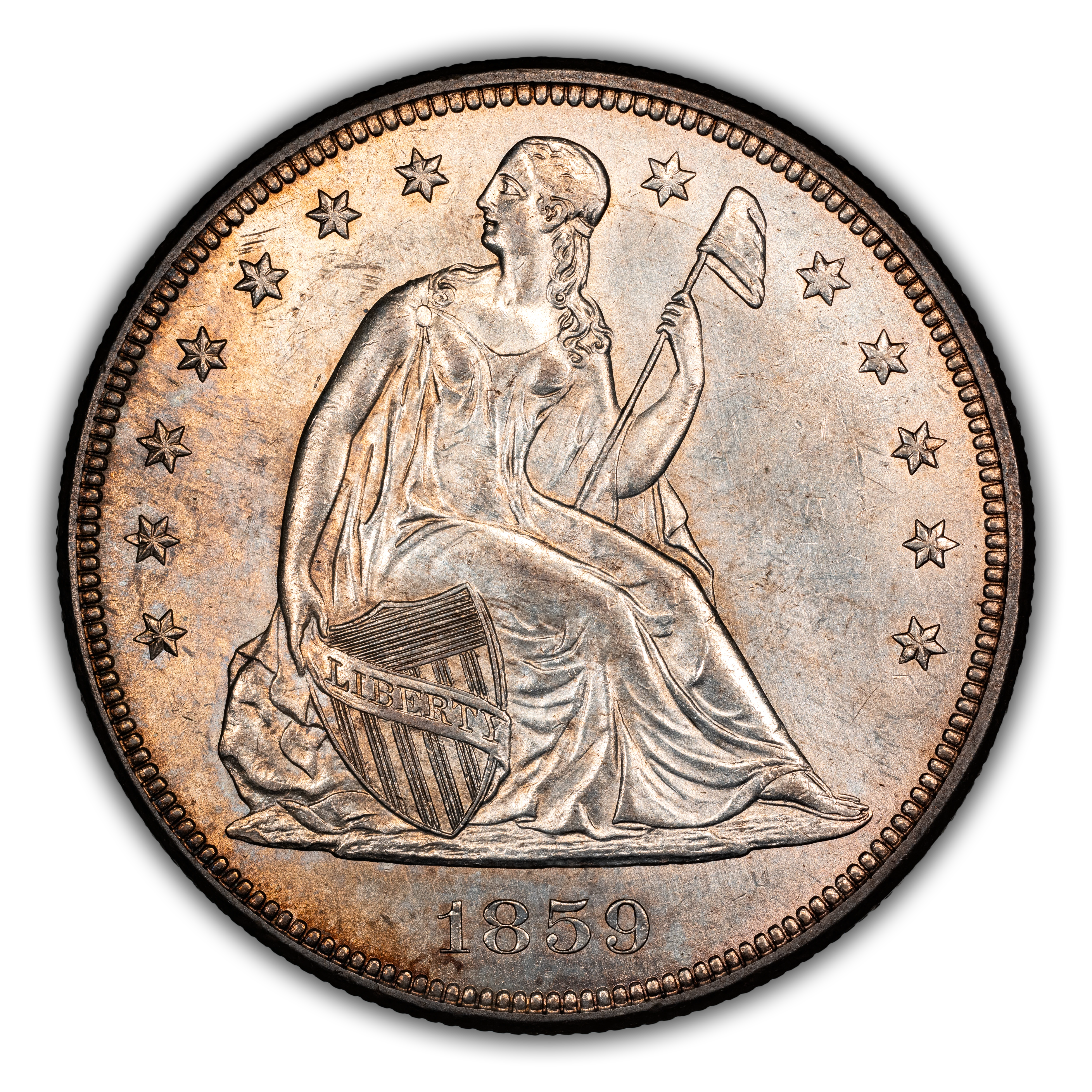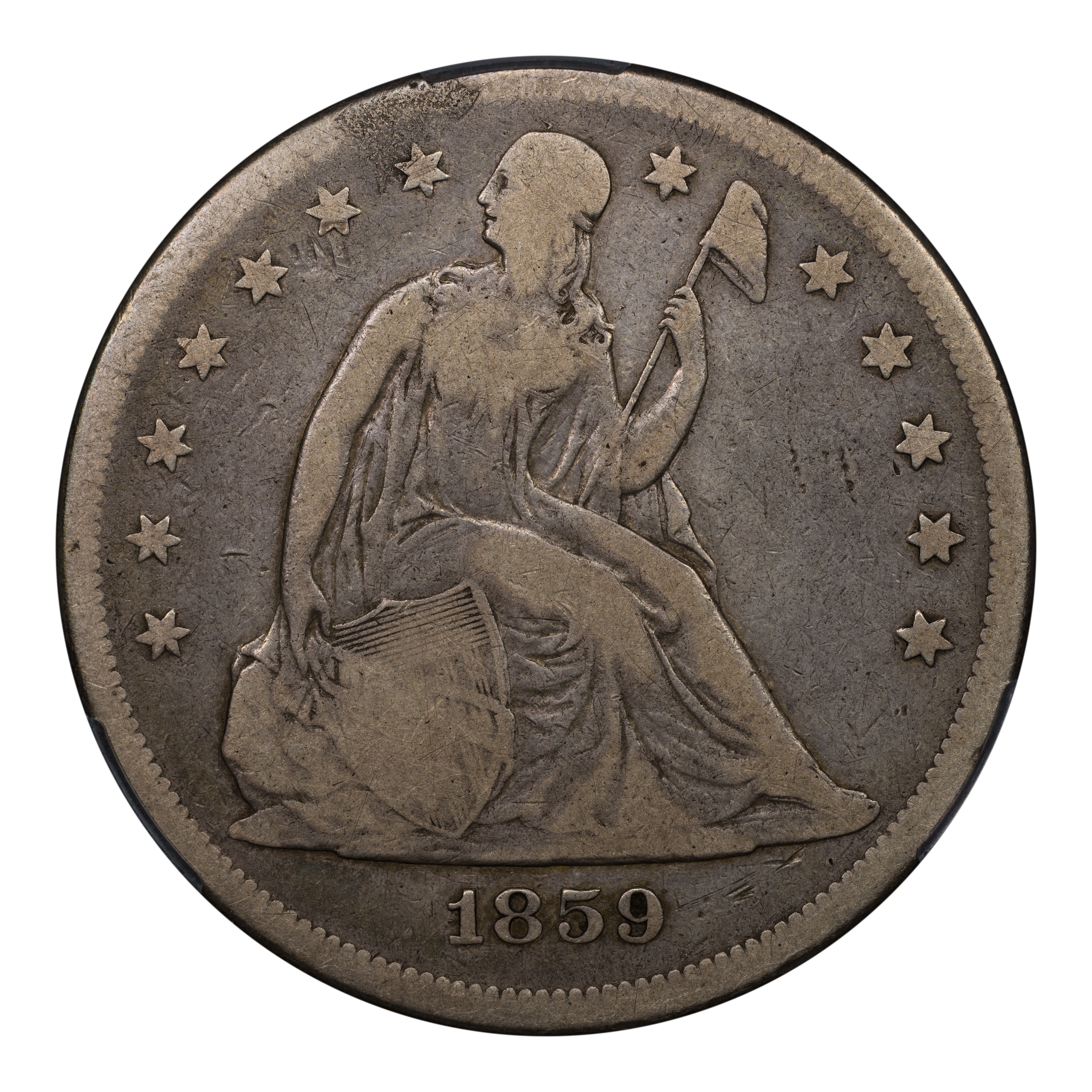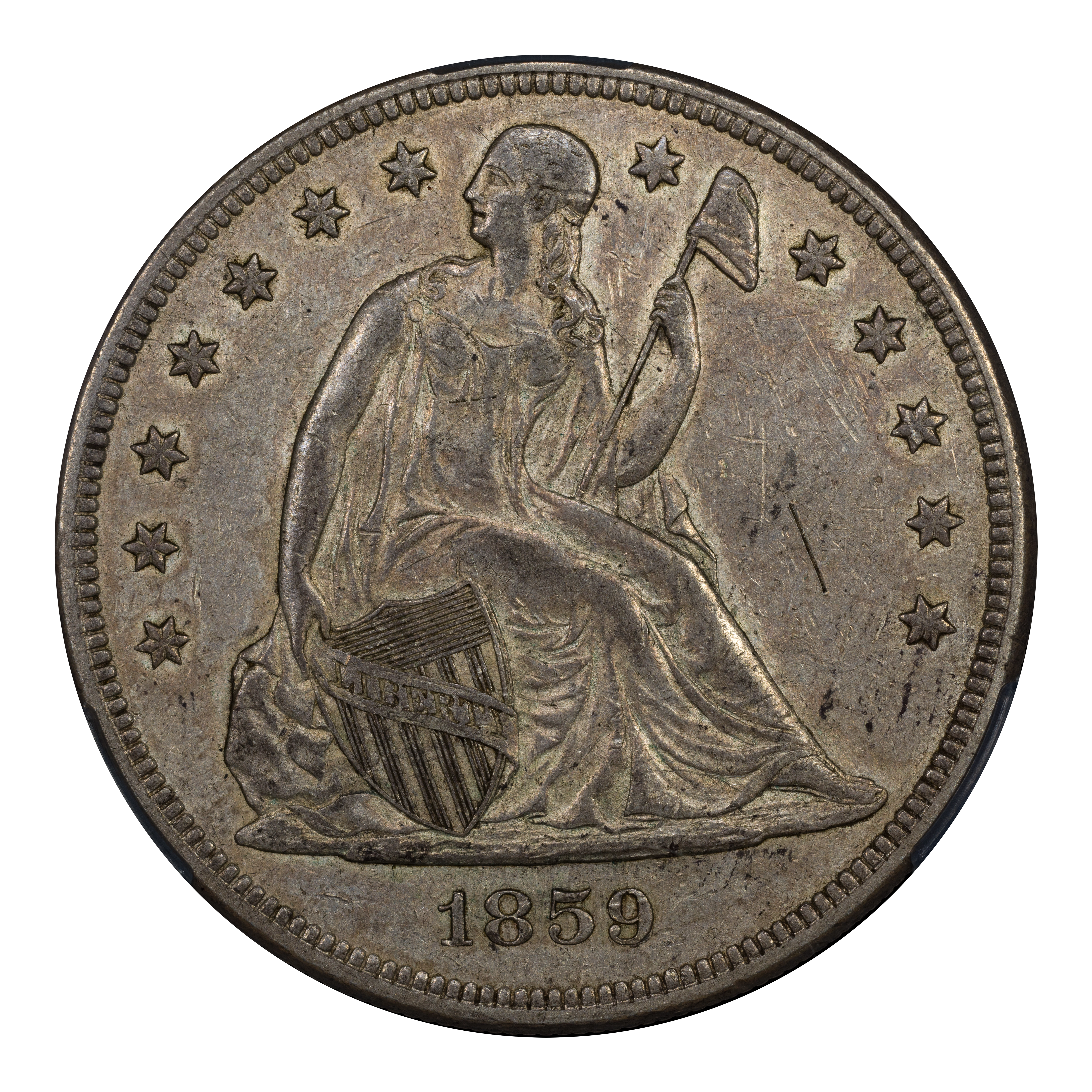 1859 Liberty Seated Silver Dollar. OC-3. Rarity-3+. MS-61 (PCGS).