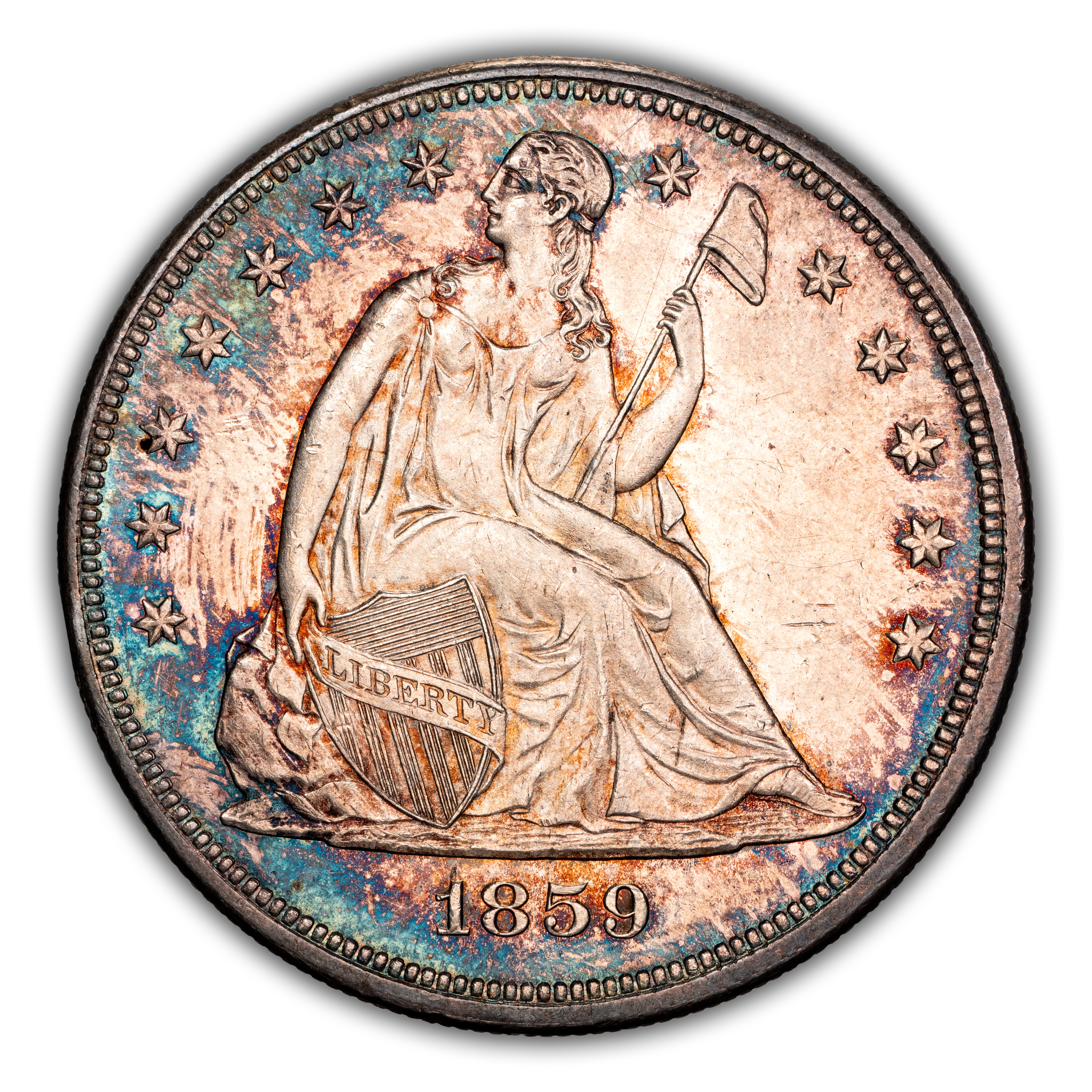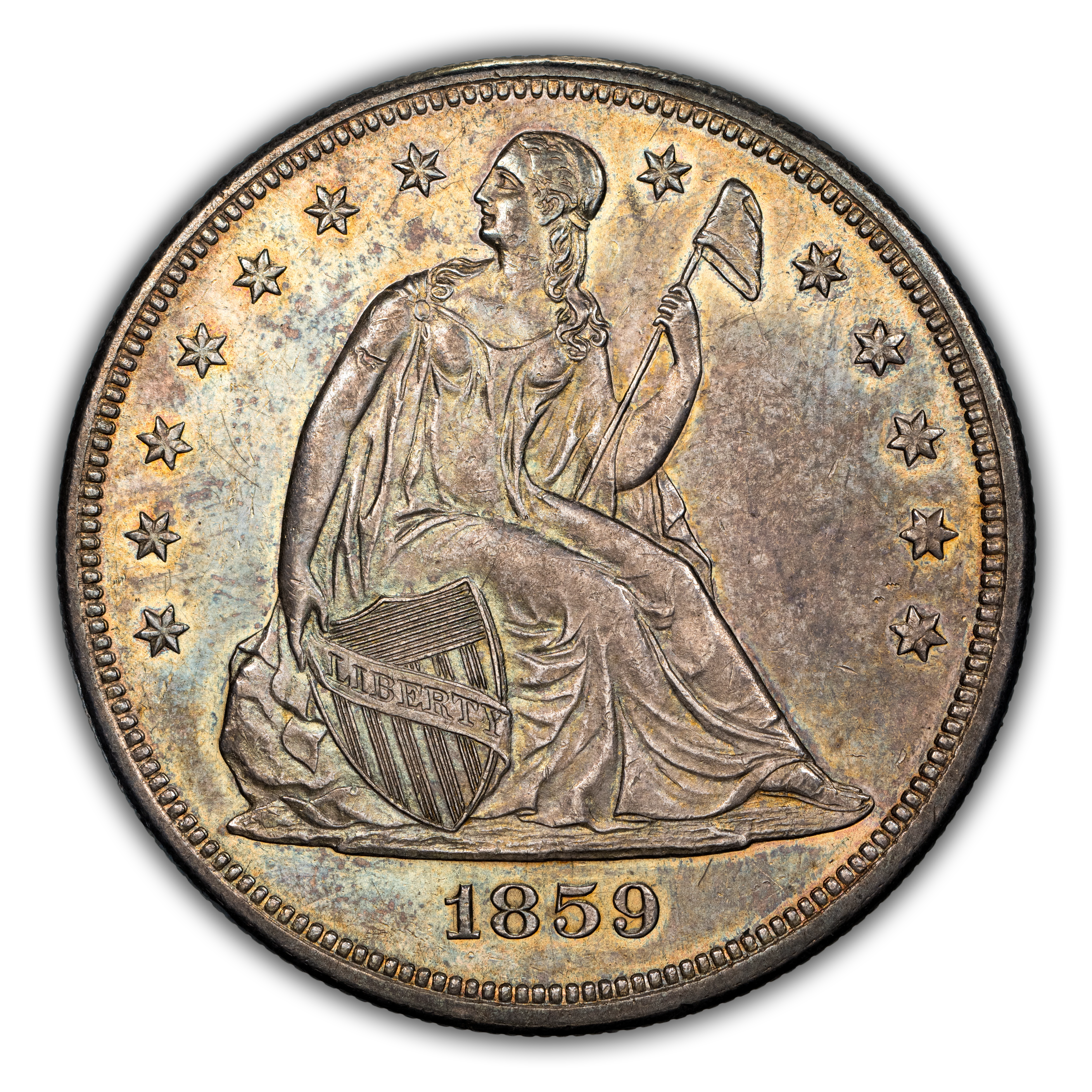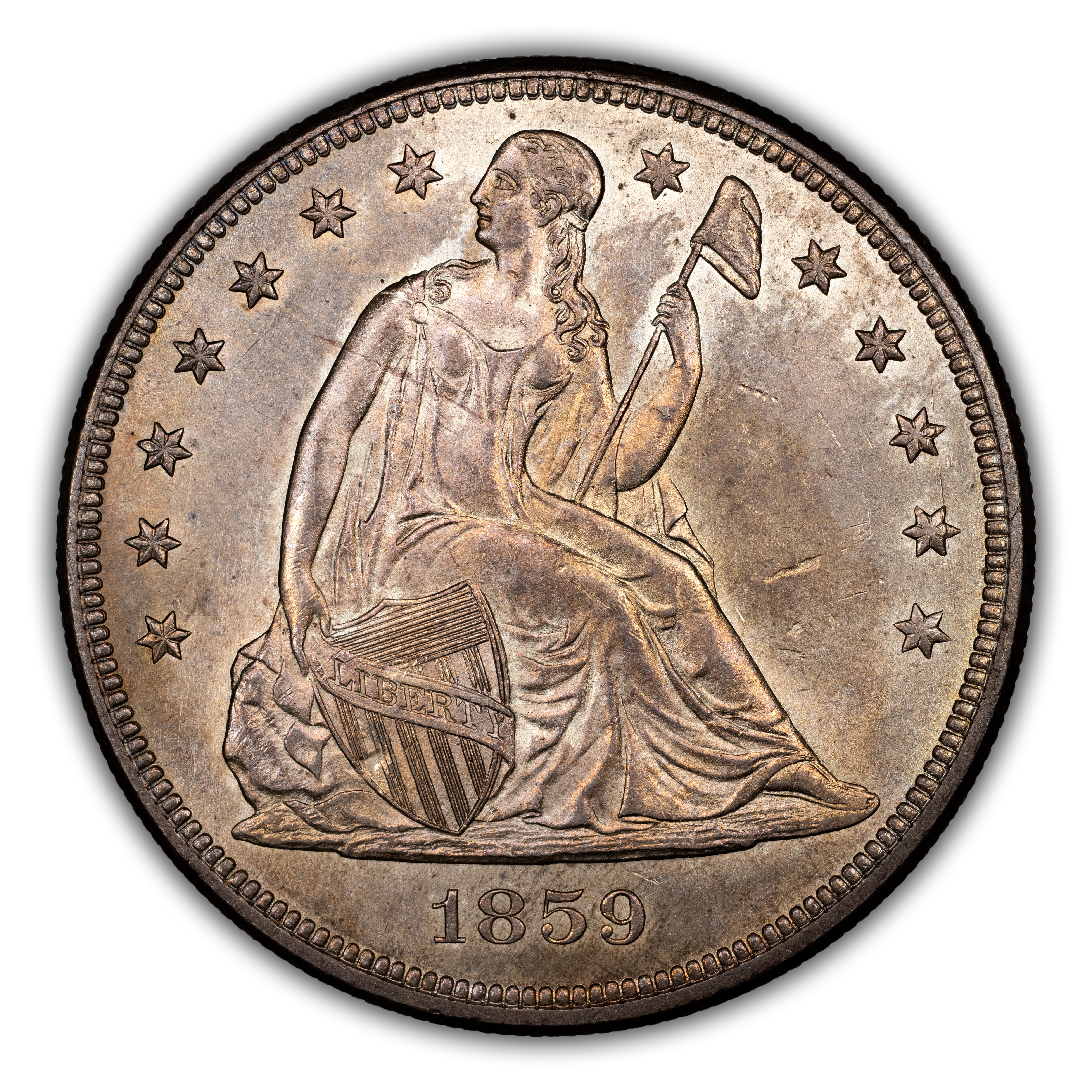 1859 Liberty Seated Silver Dollar. OC-3. Rarity-3+. MS-61 (PCGS).