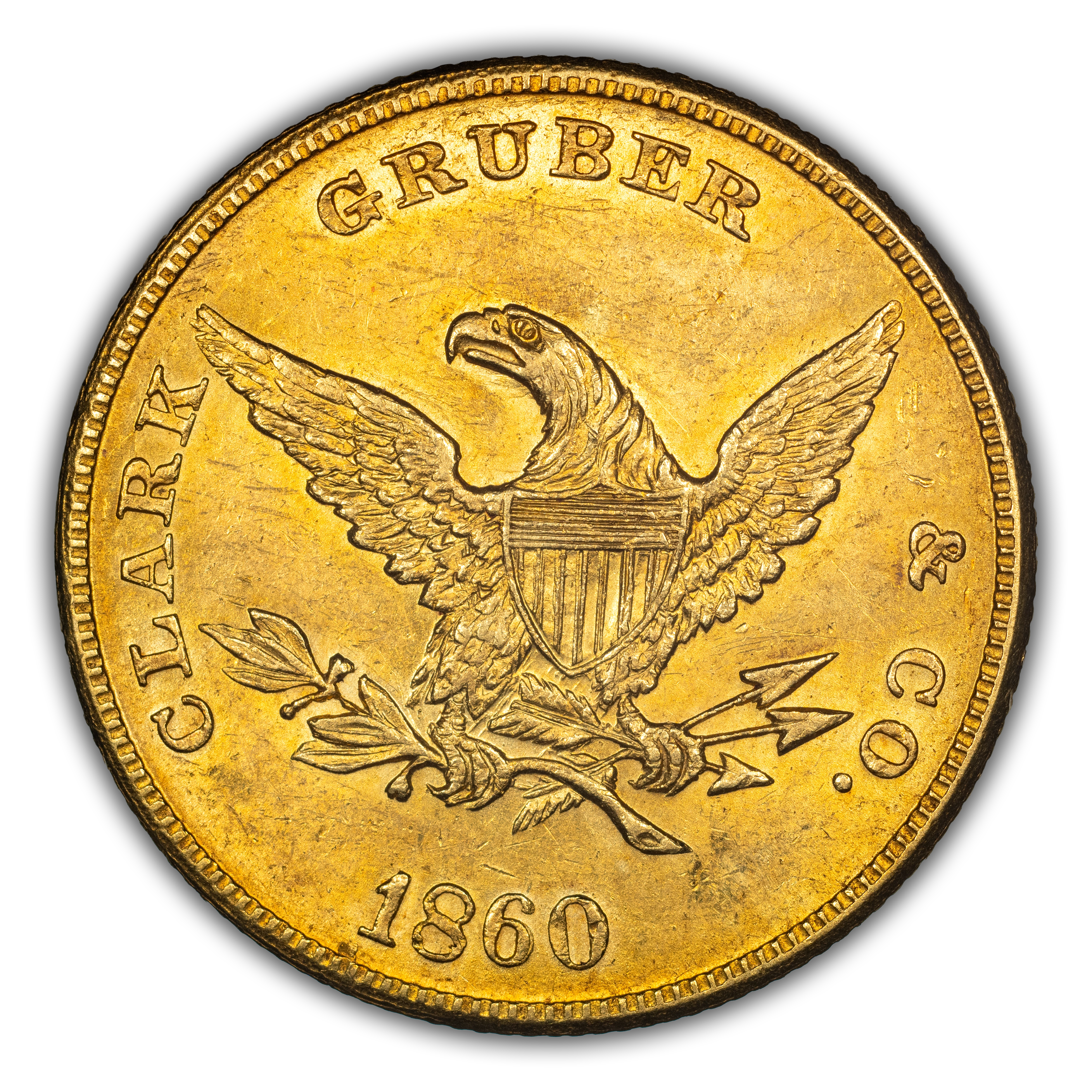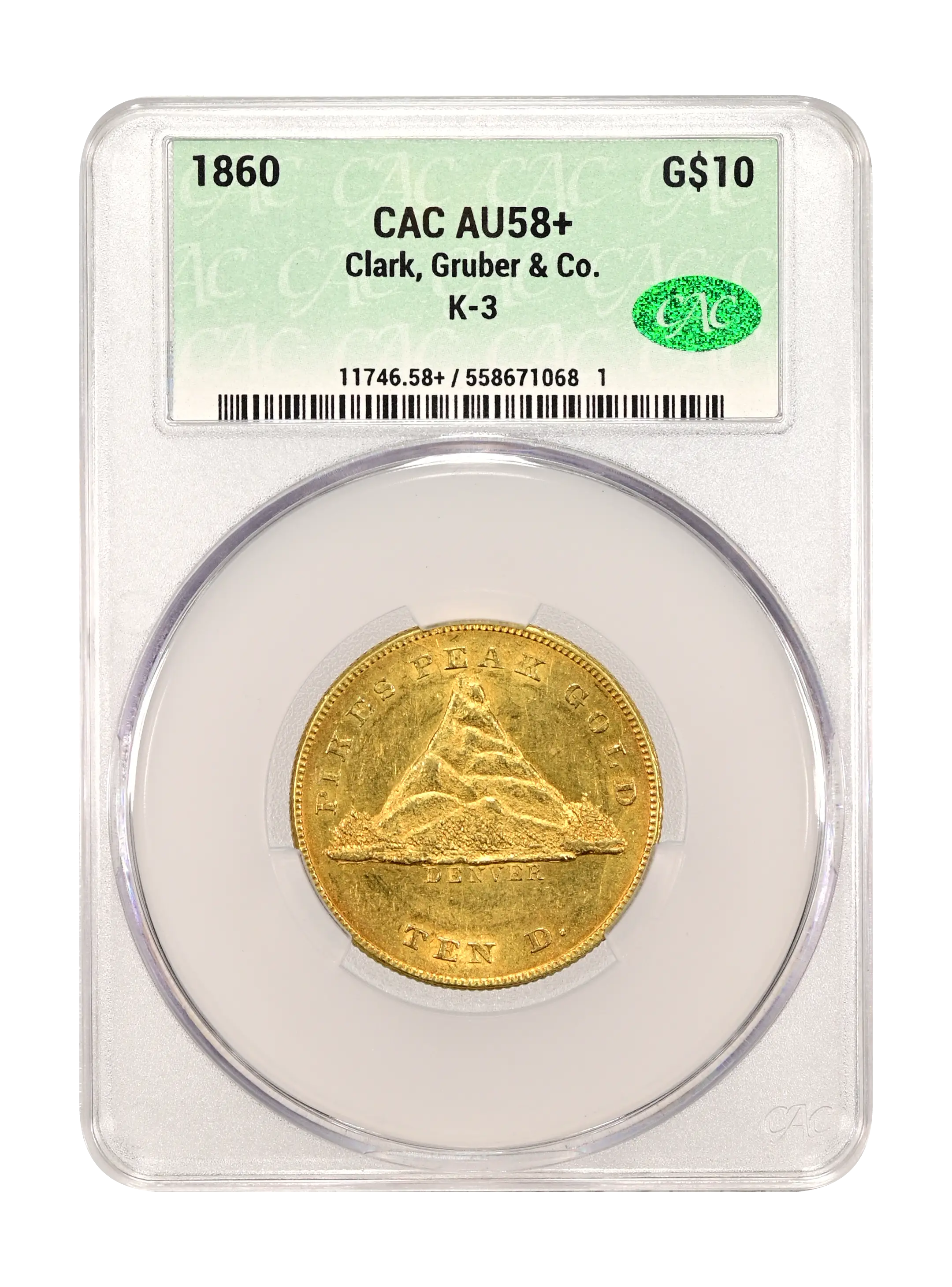 1860 Clark, Gruber & Co. G$10 K-3 CAC AU58+