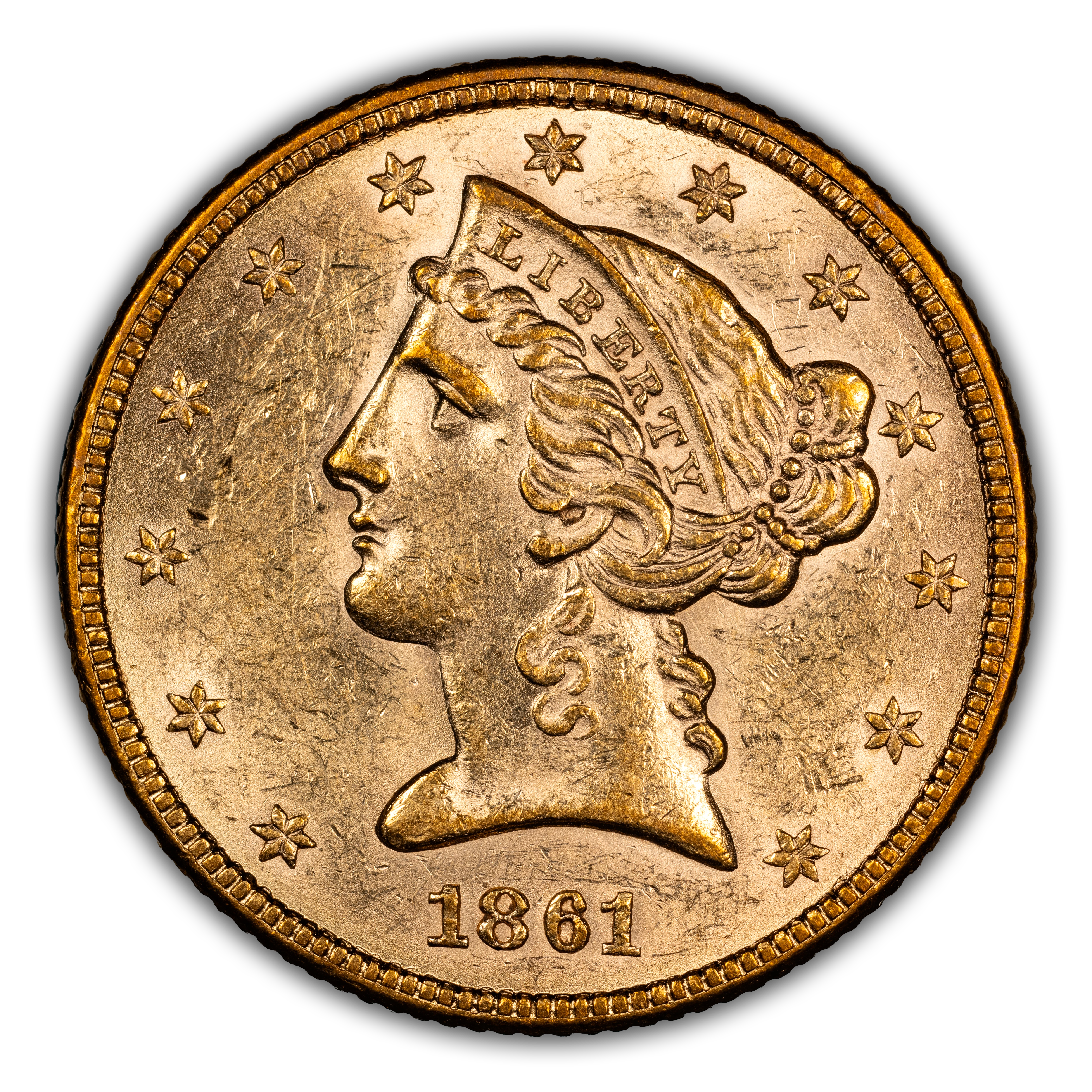 1861 $5 PCGS MS60
