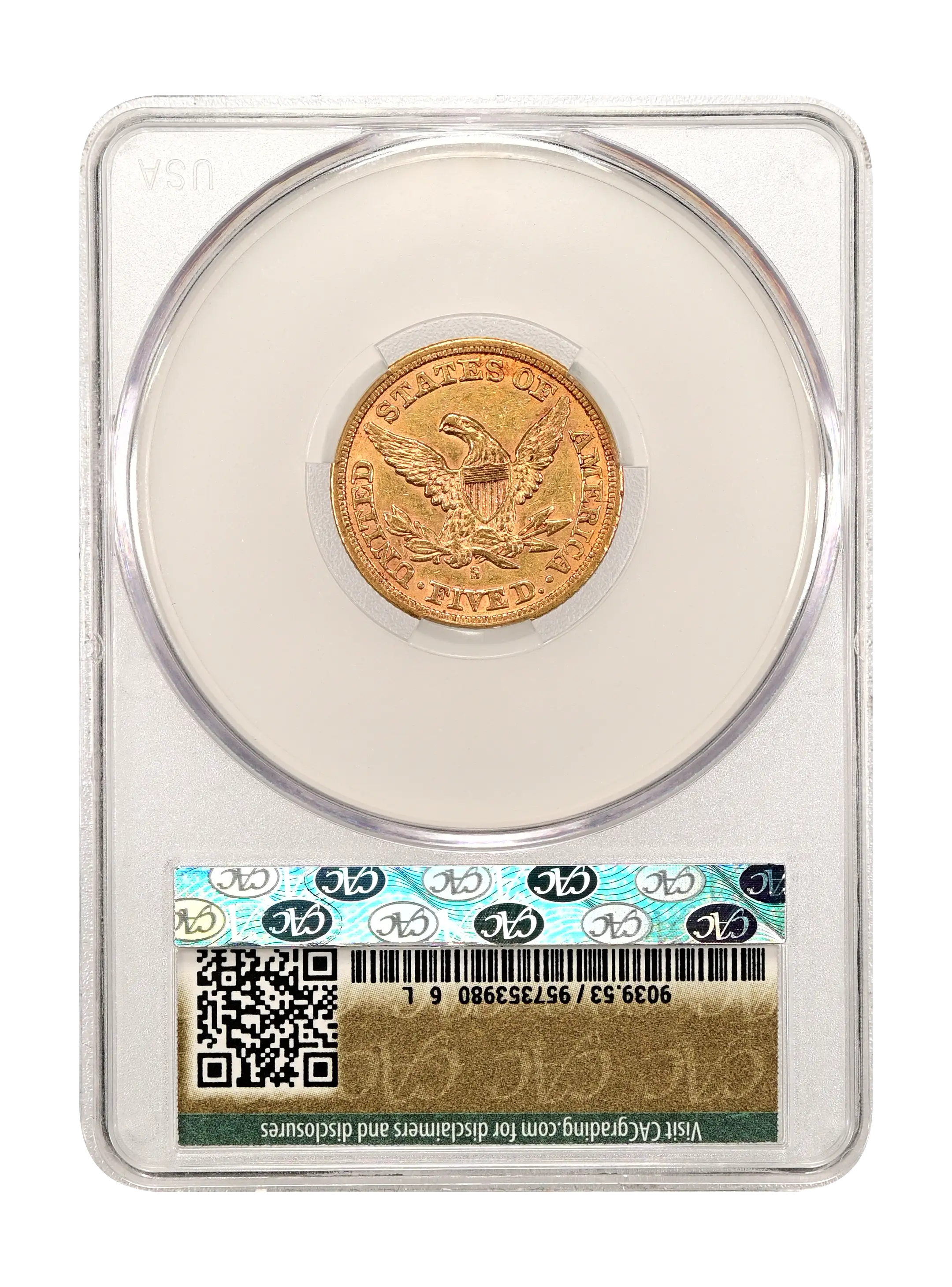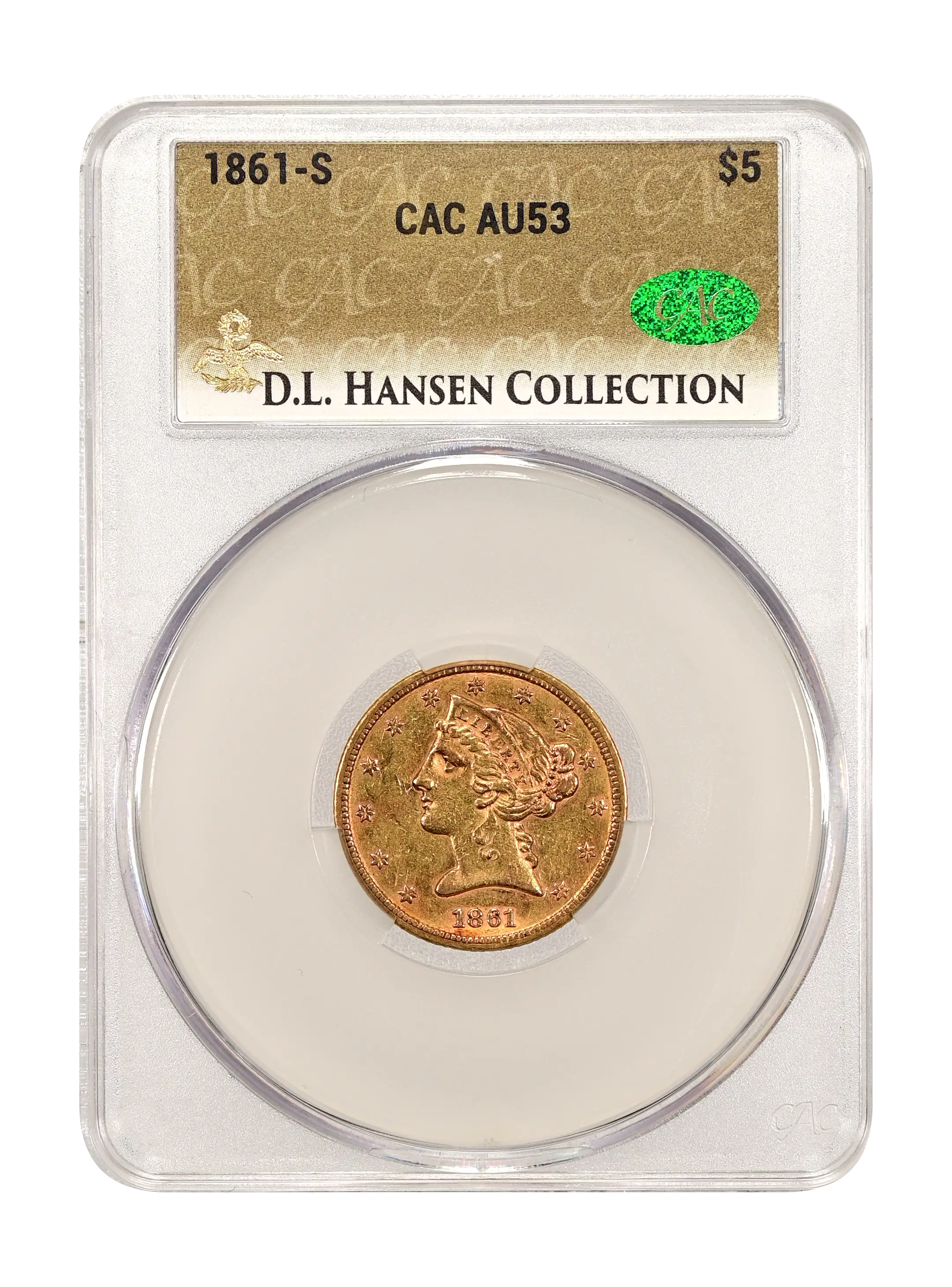 1861-S $5 CAC AU53