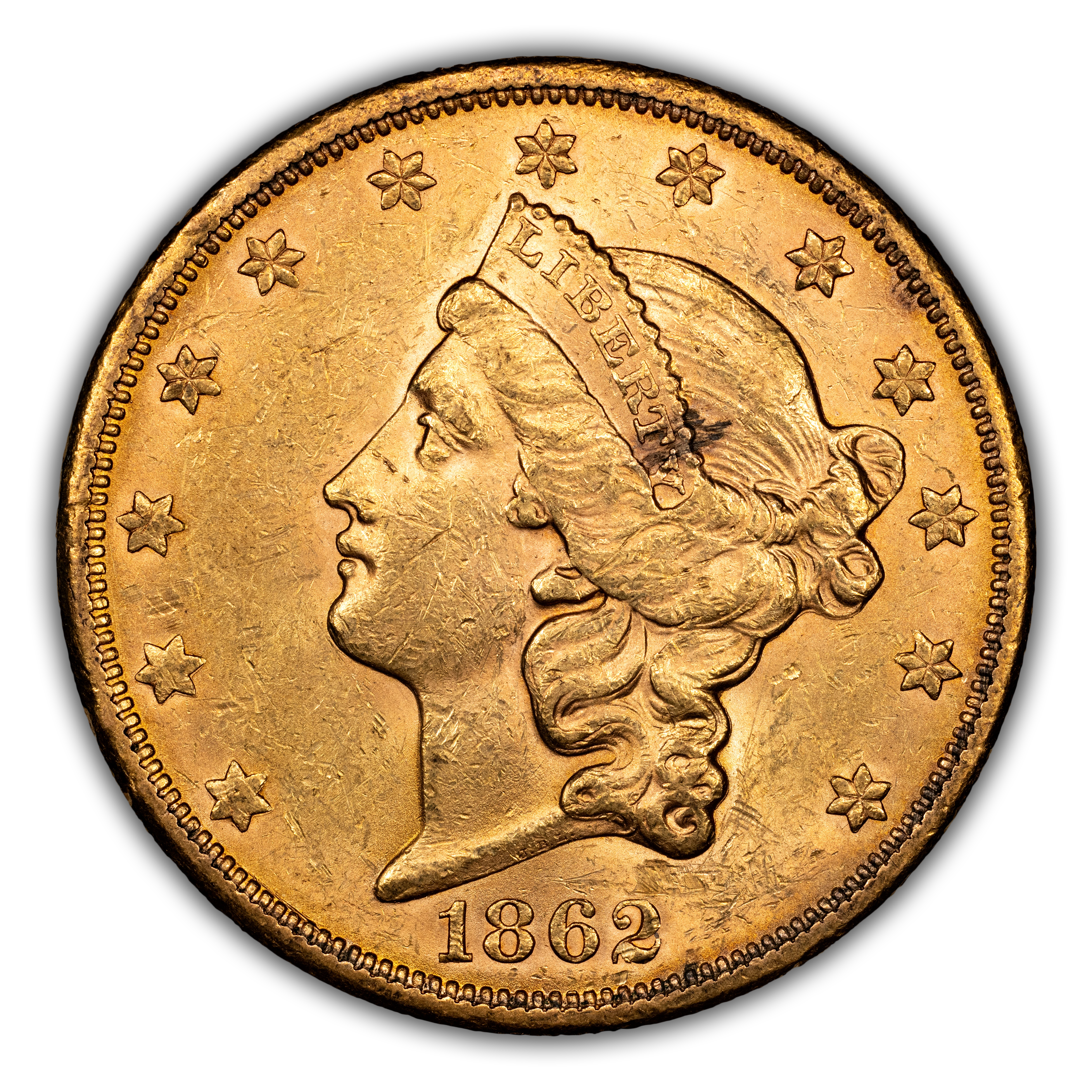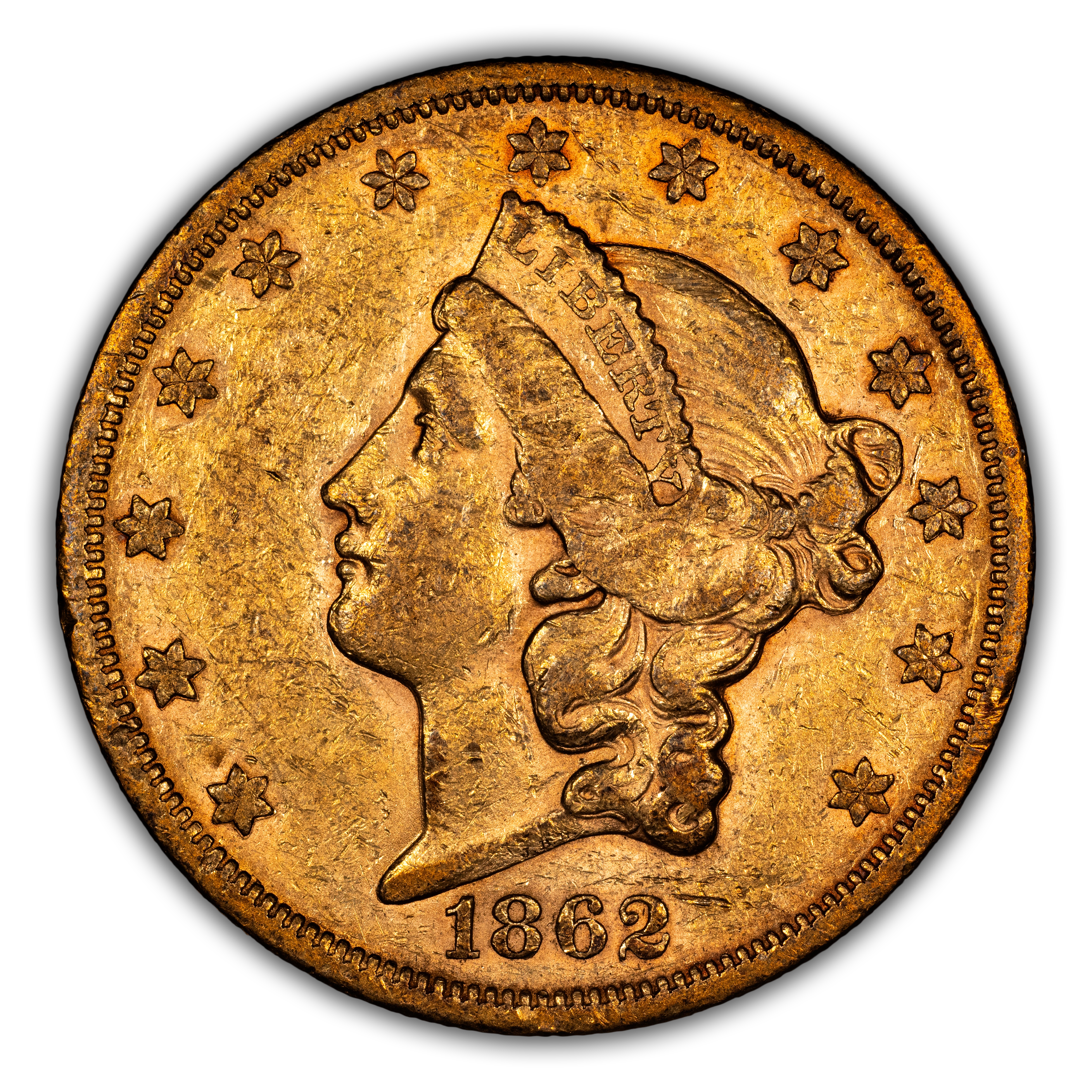 1862-S $20 NGC AU58 - Scarce Civil War S-Mint Gold Double Eagle