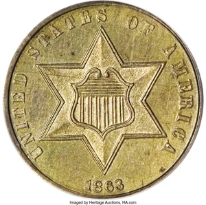 1863/2 3CS PR64 PCGS. The Guide Book lists this variety as a so-called overdate, although PCGS has long listed it as an...